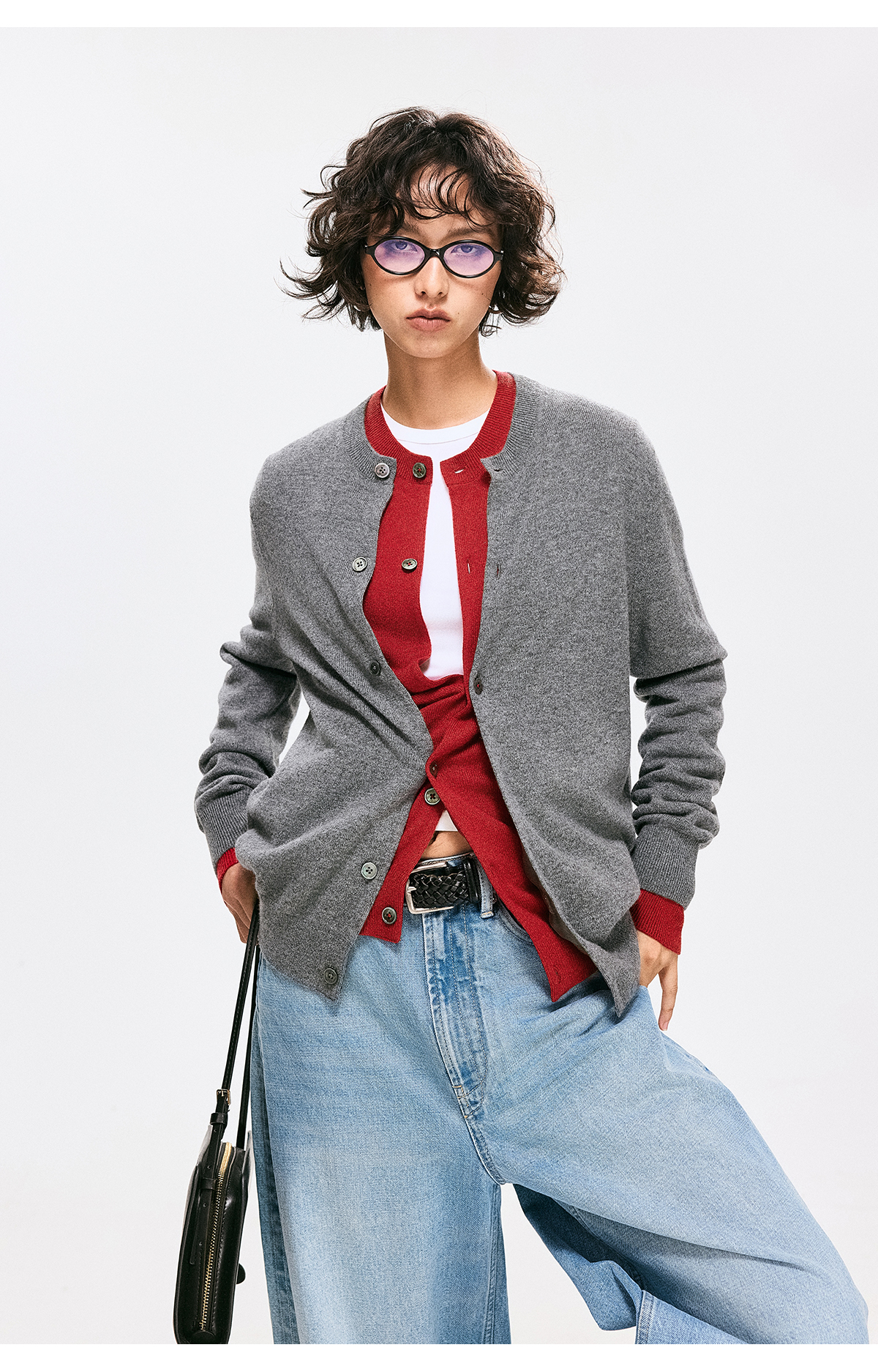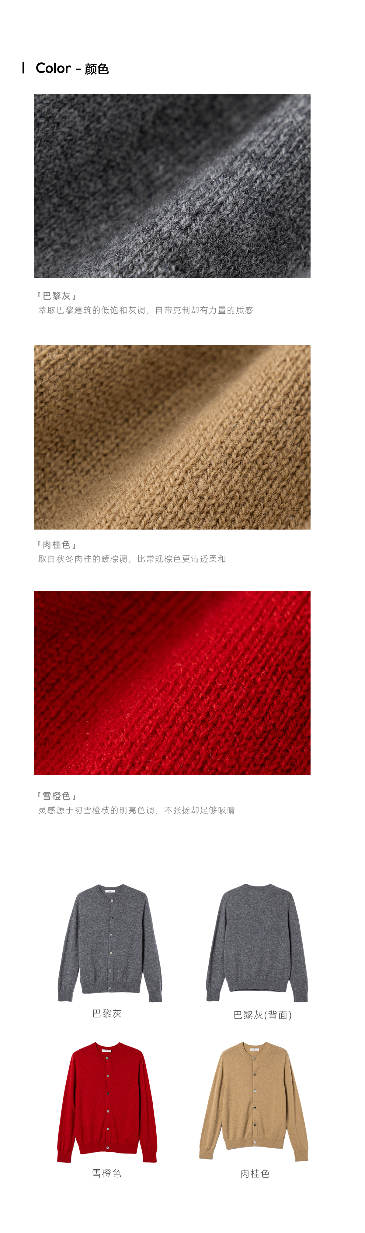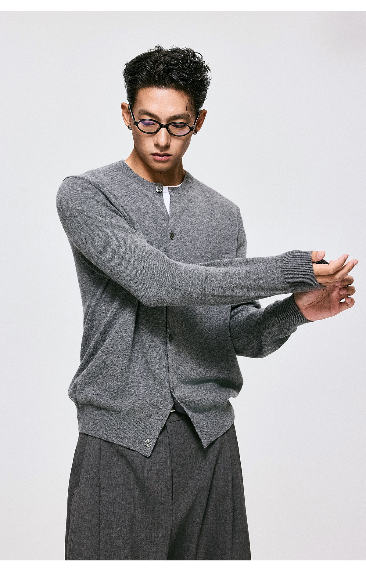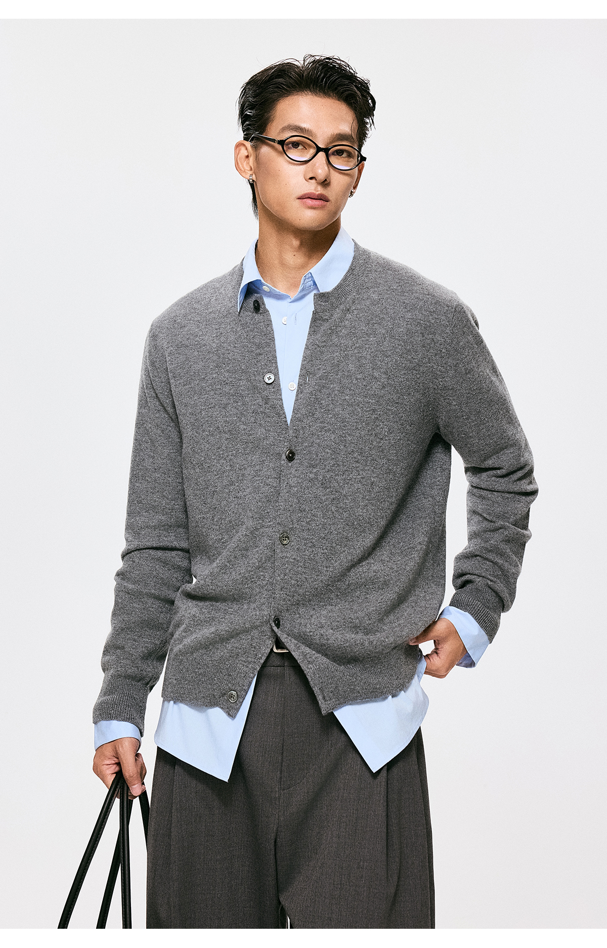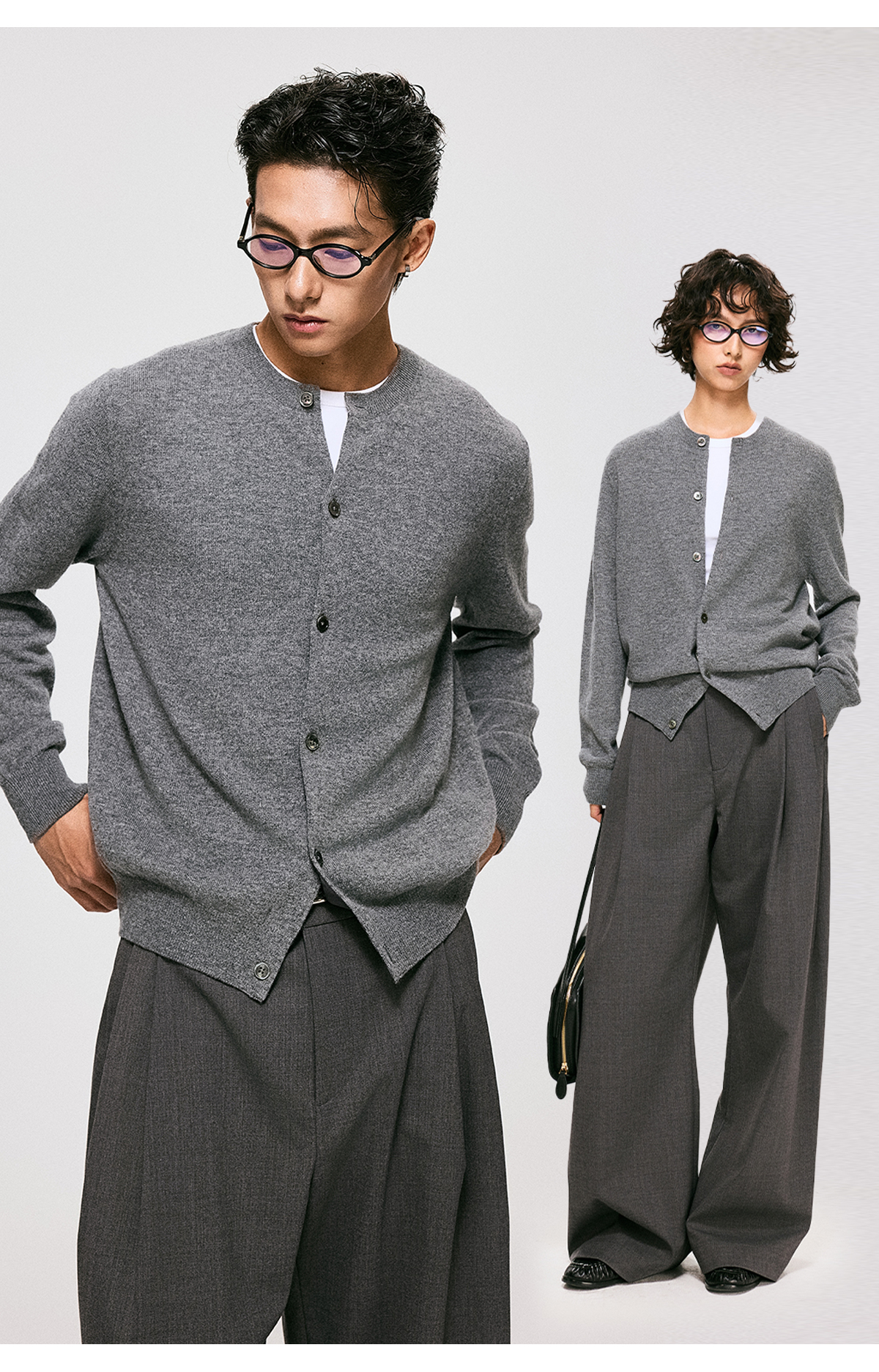 棉仓3671026002-【格雷象限】羊毛羊绒灰色圆领针织开衫