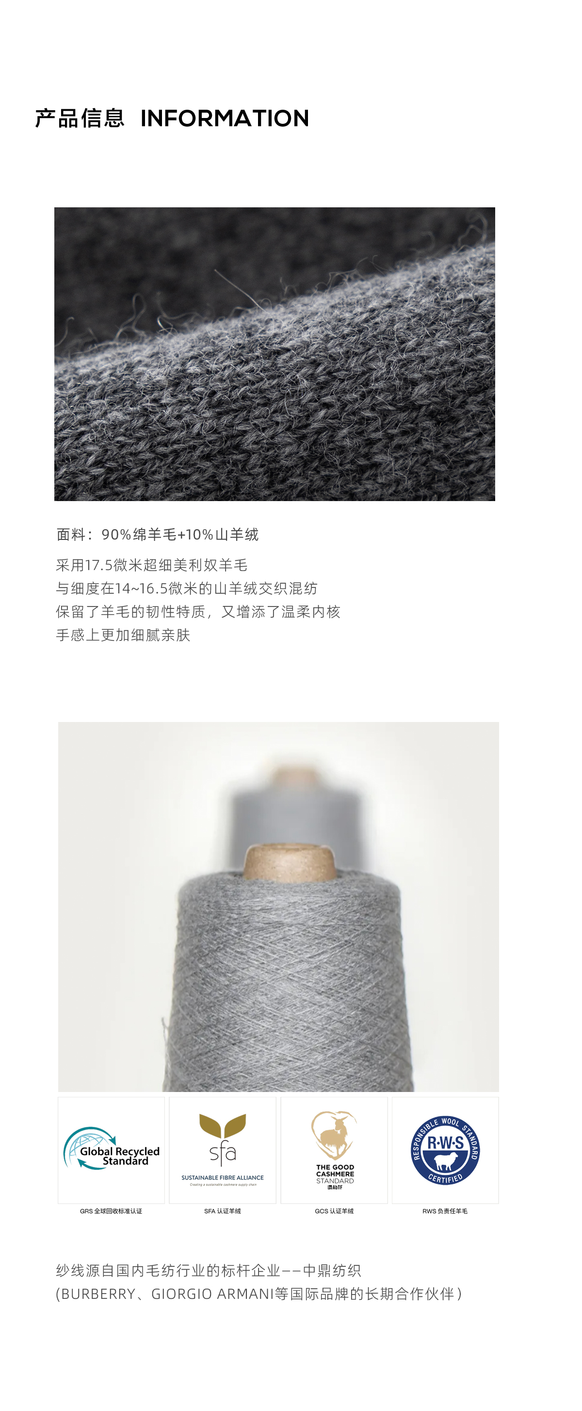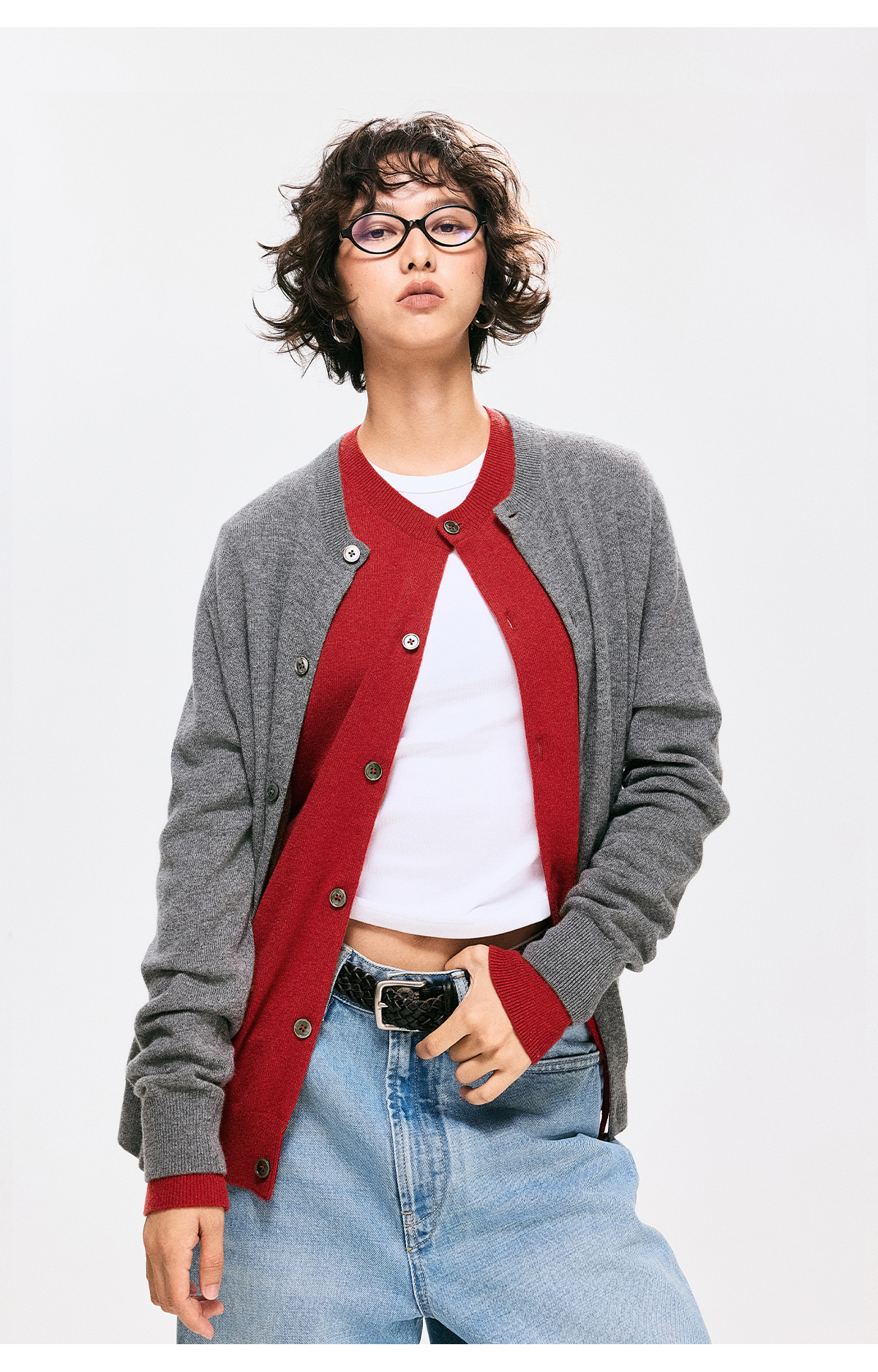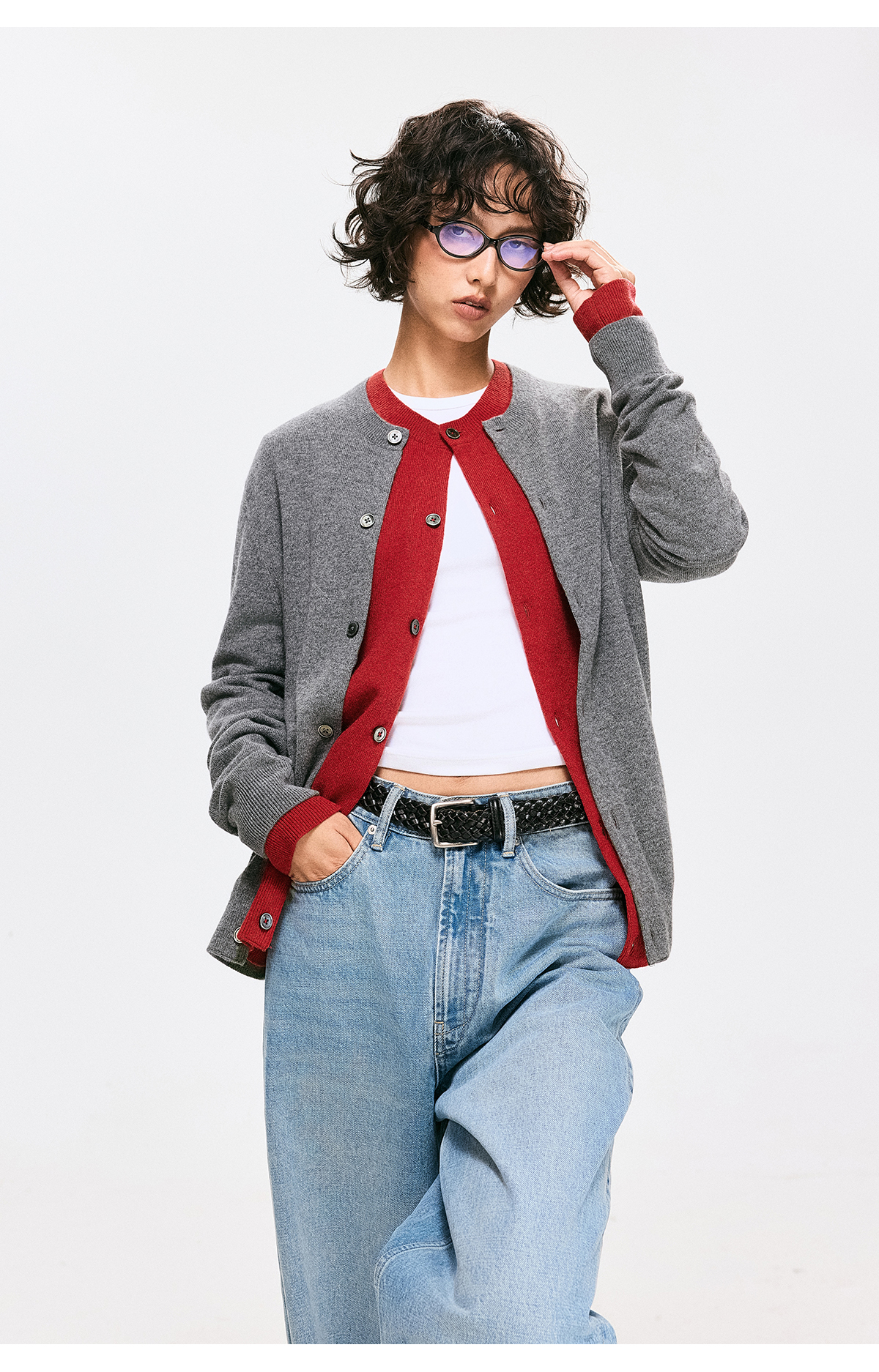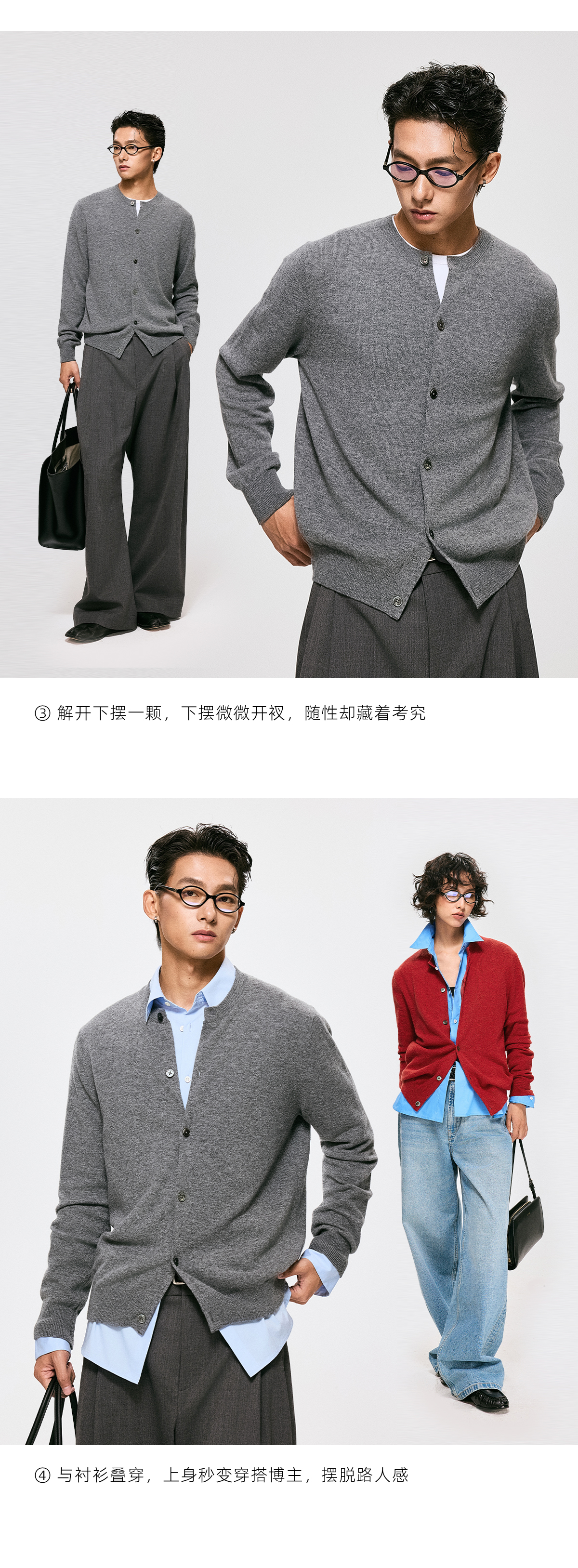 棉仓3671026002-【格雷象限】羊毛羊绒灰色圆领针织开衫