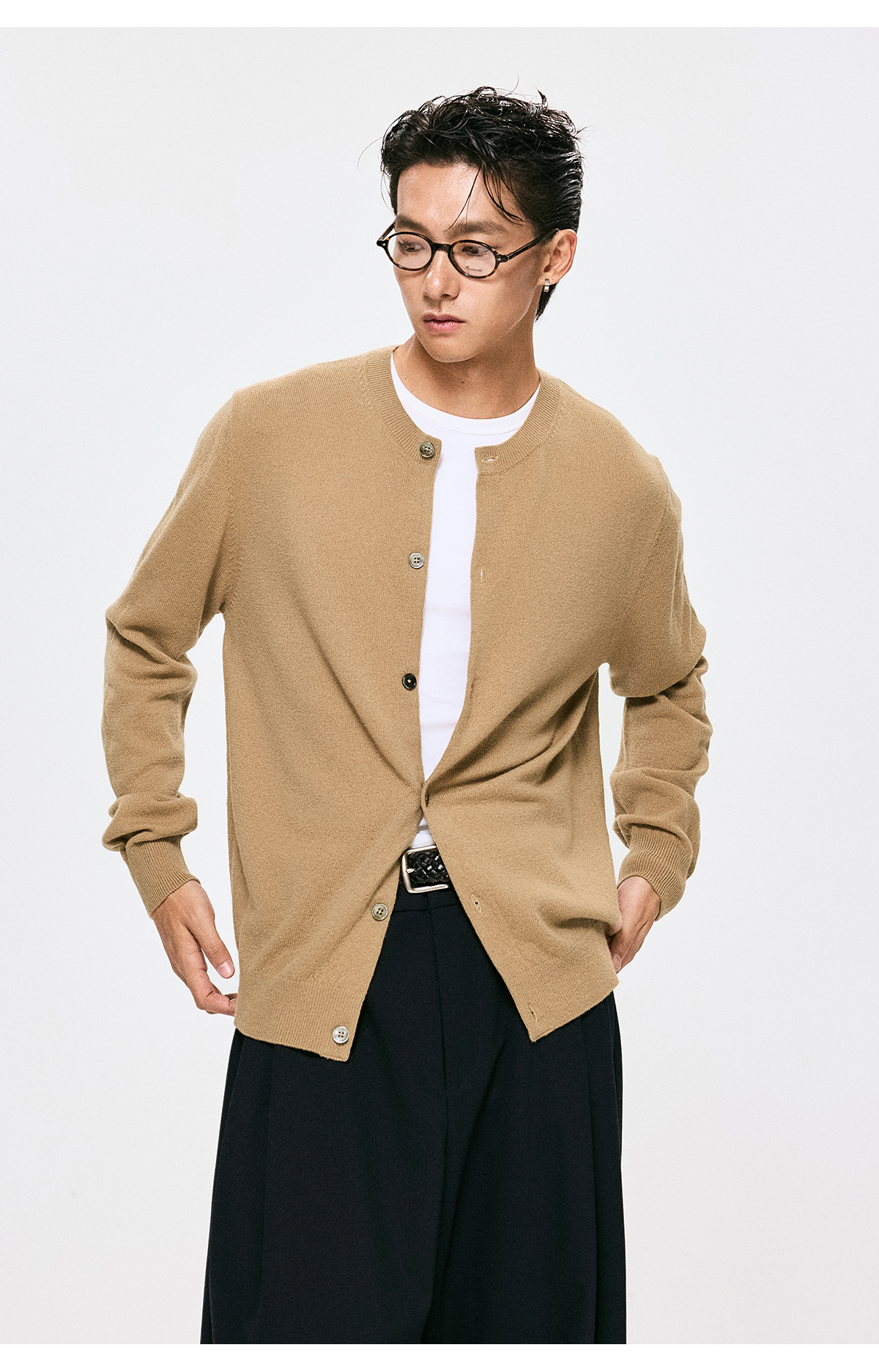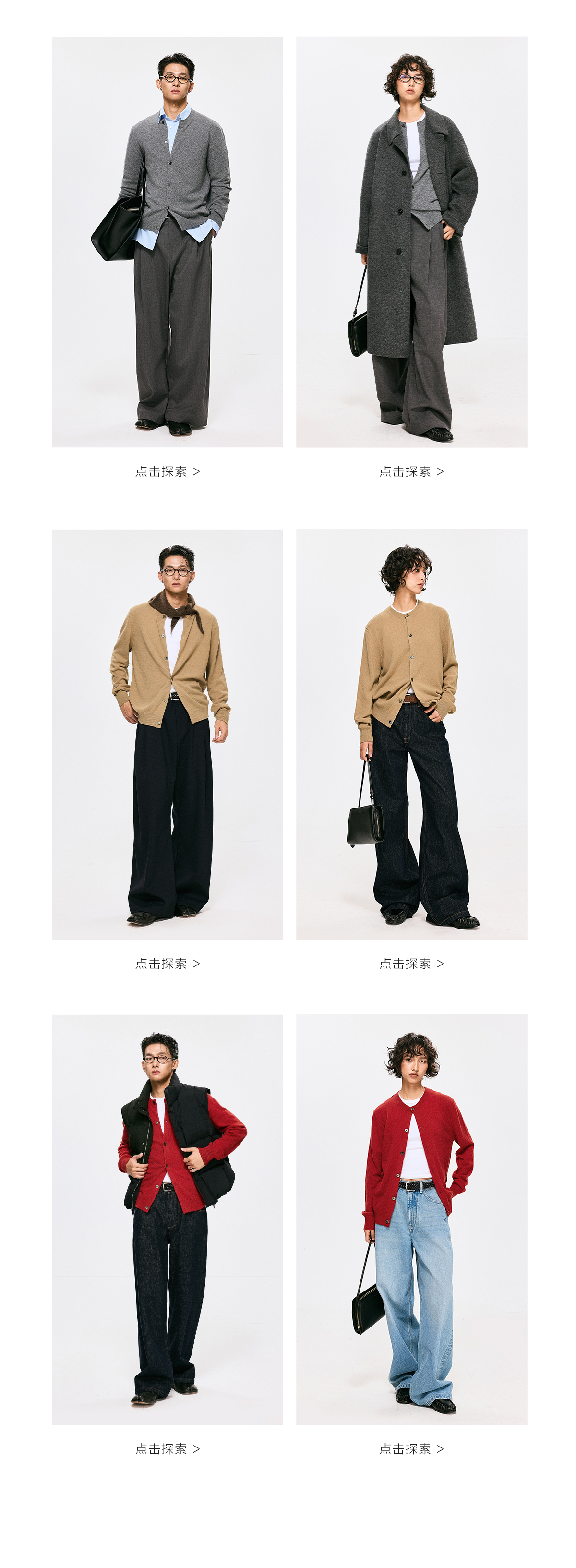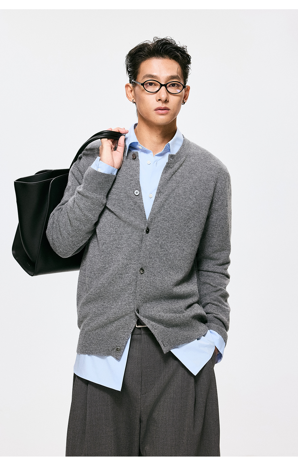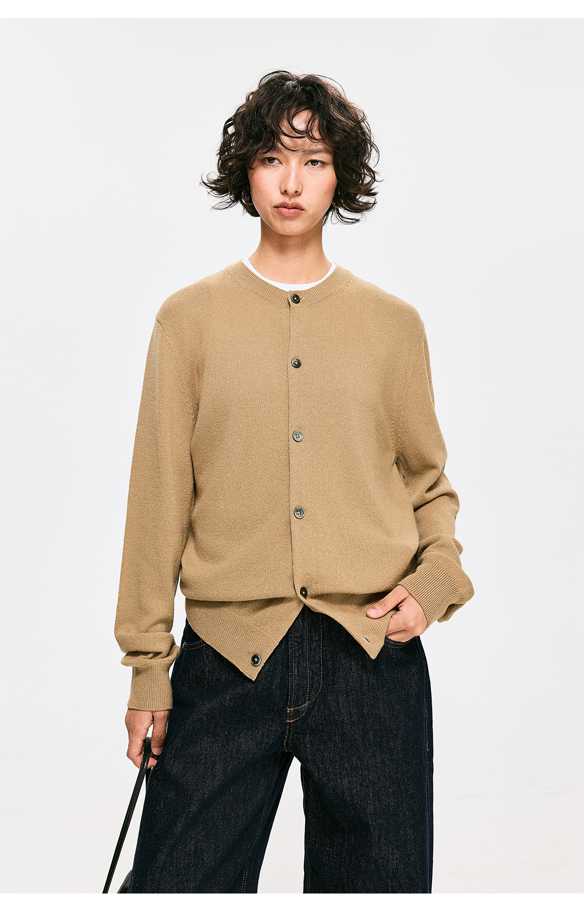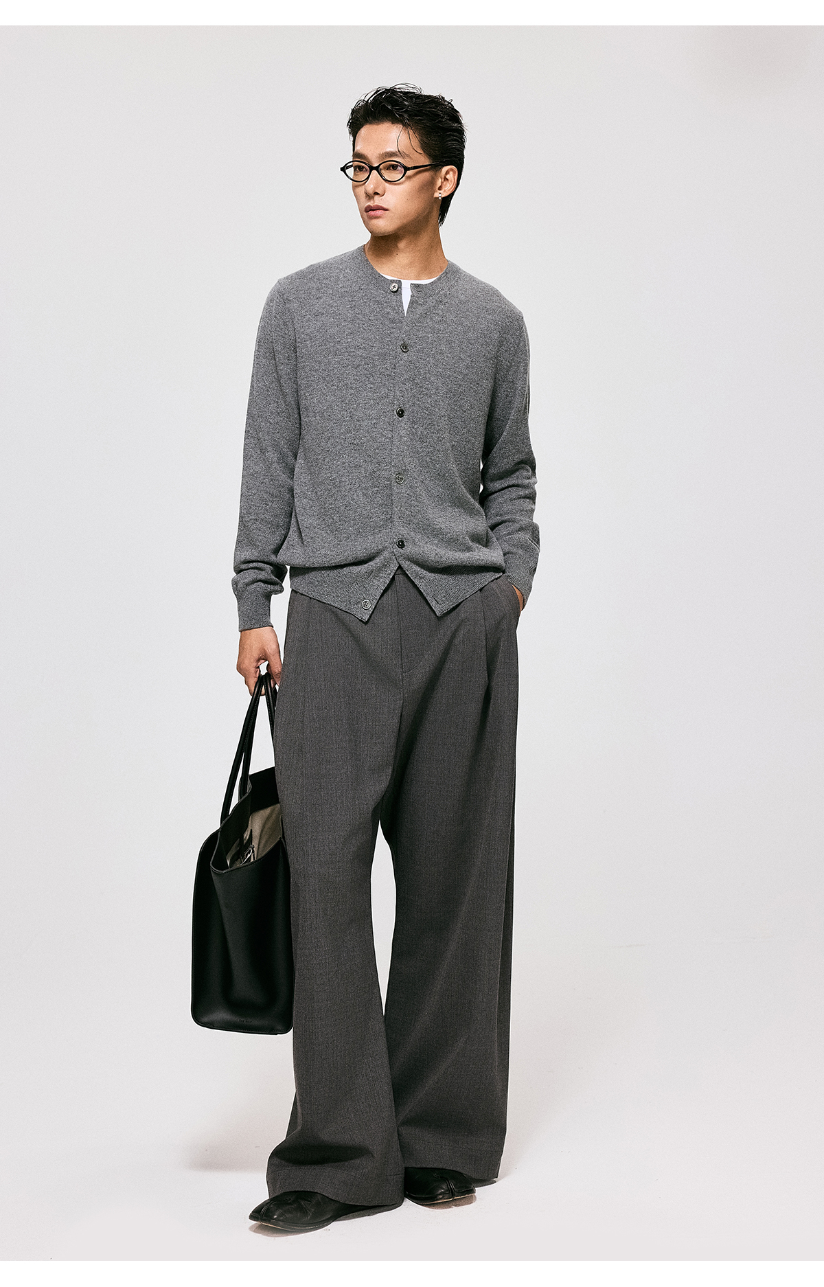 棉仓3671026002-【格雷象限】羊毛羊绒灰色圆领针织开衫