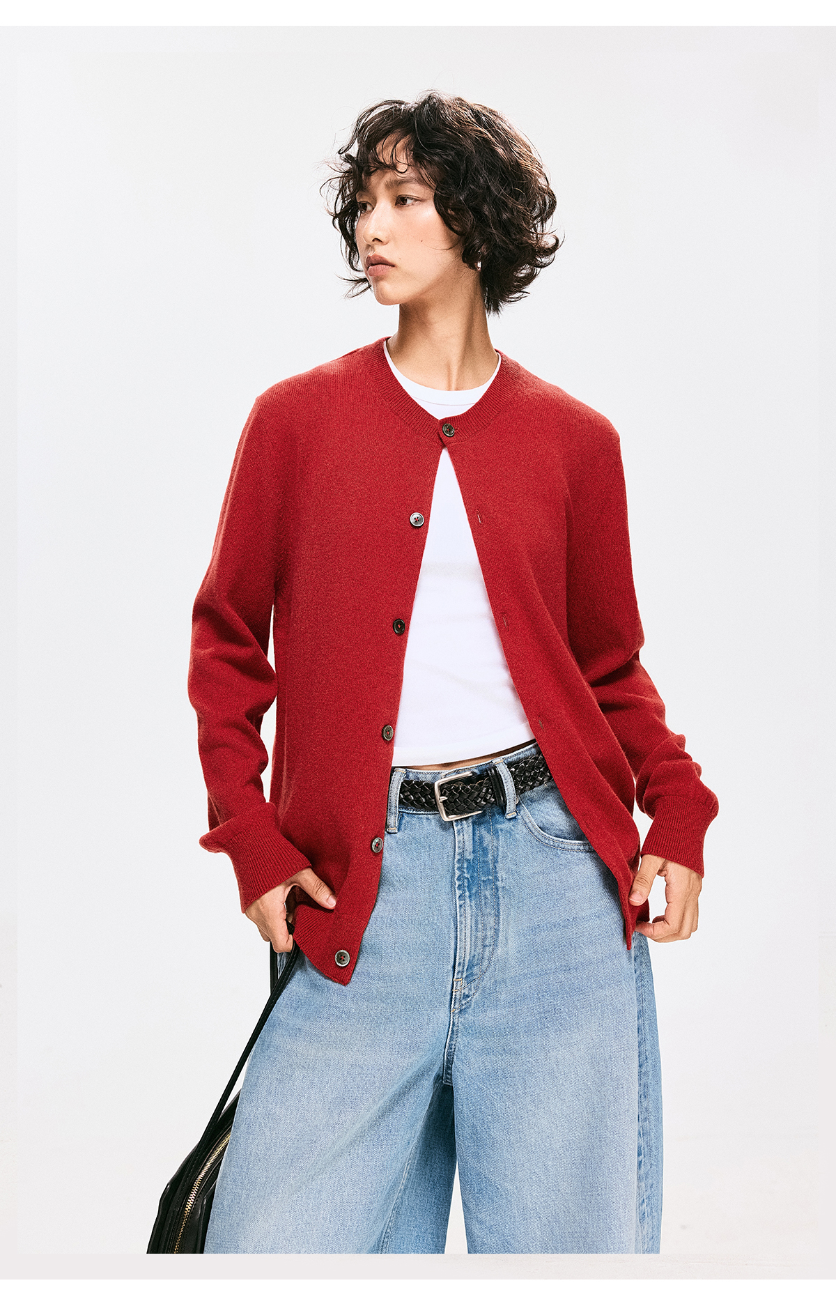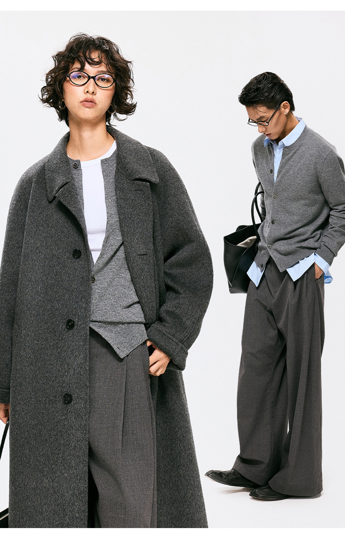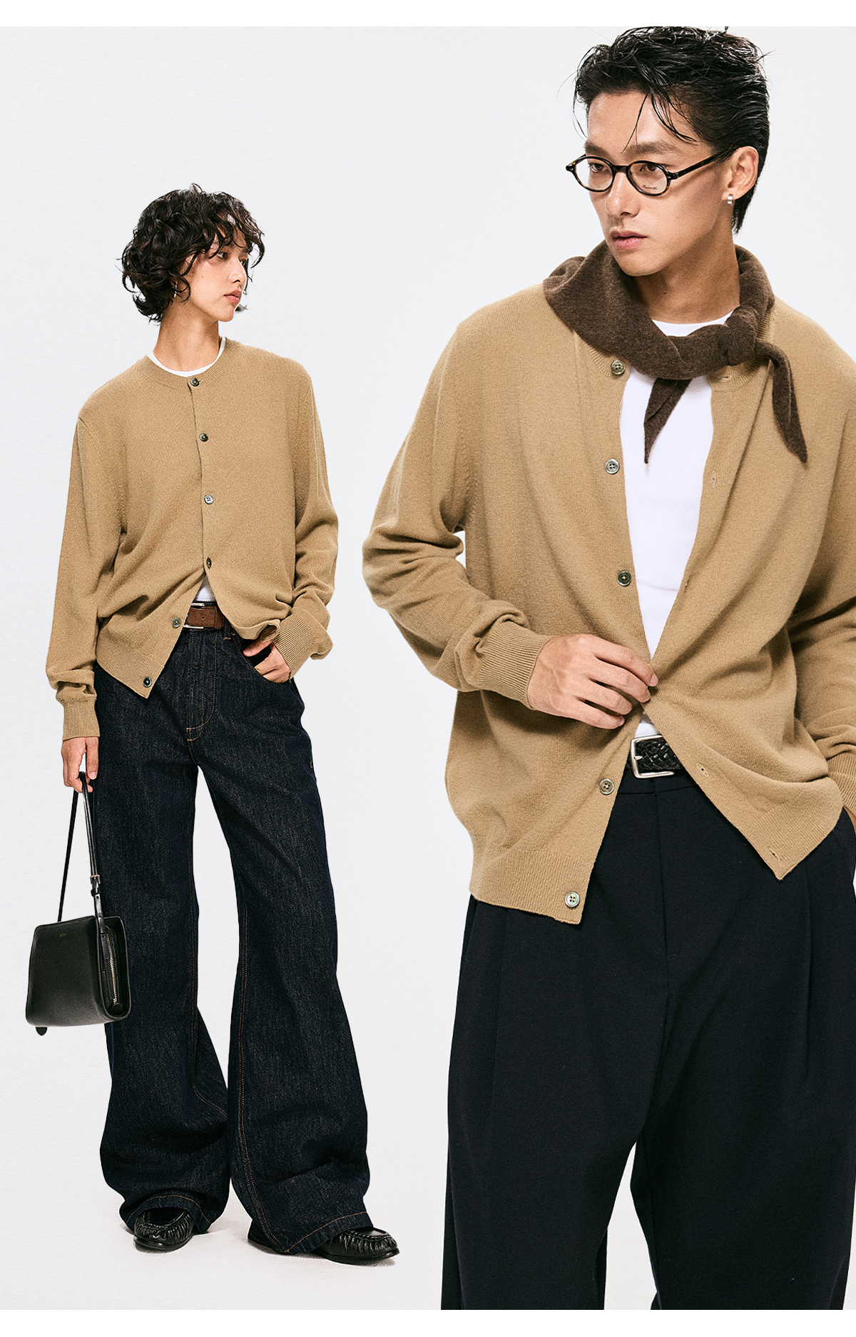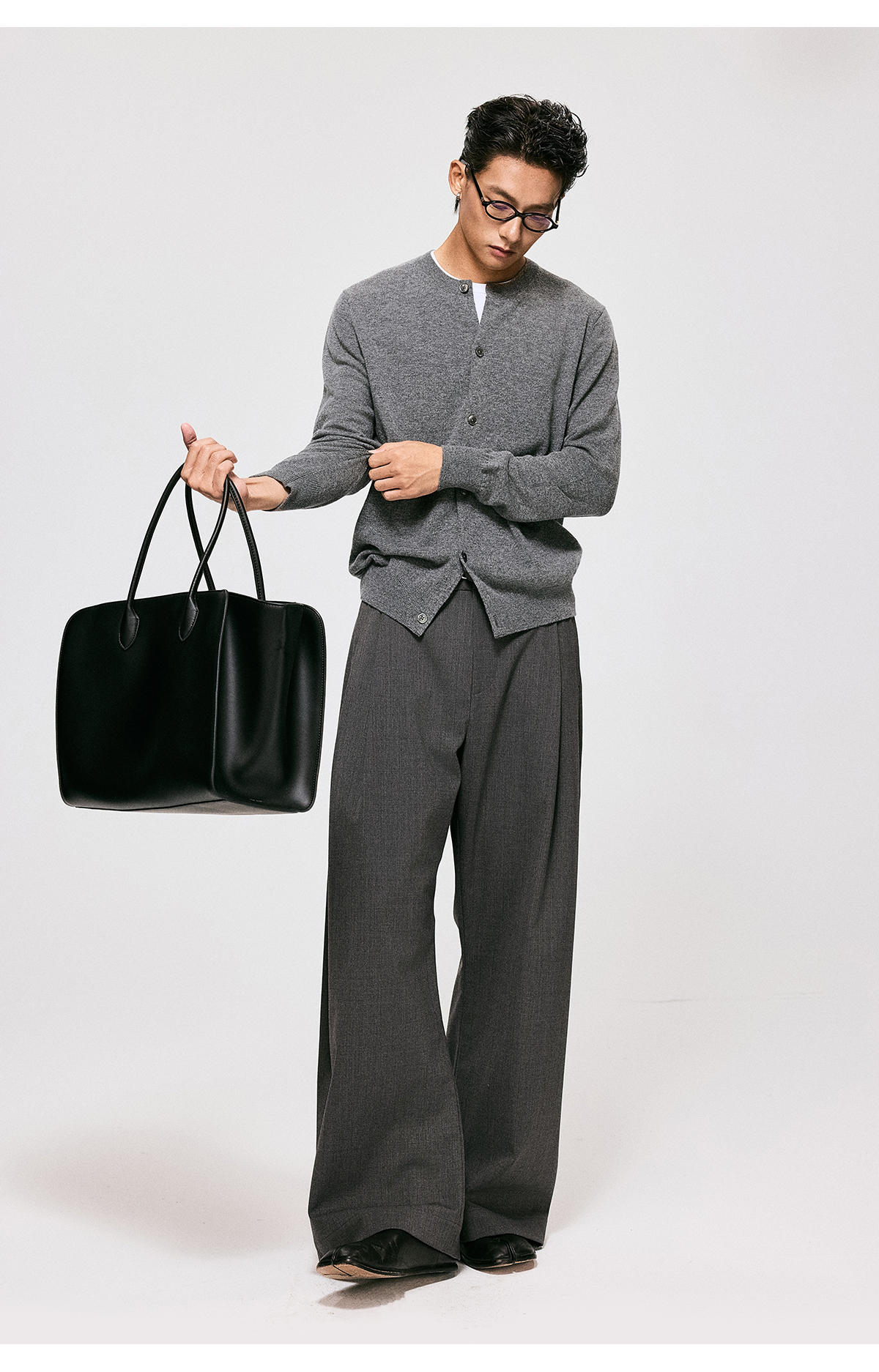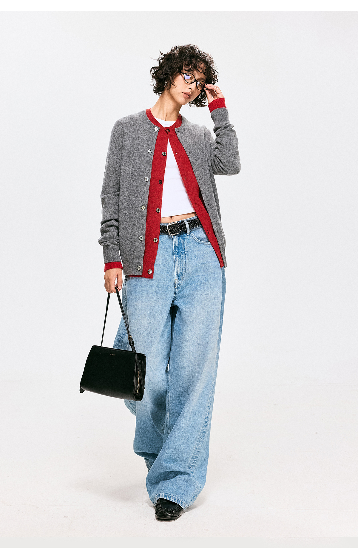棉仓3671026002-【格雷象限】羊毛羊绒灰色圆领针织开衫