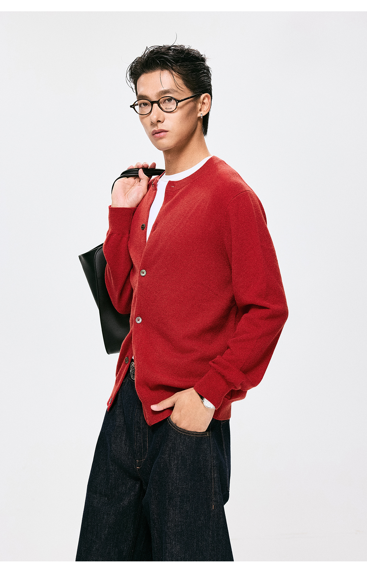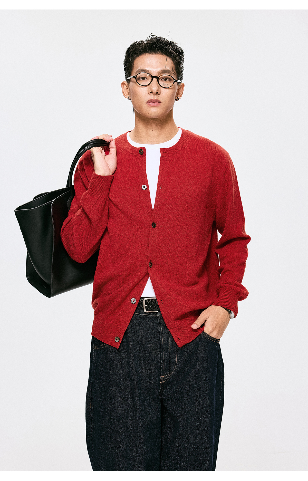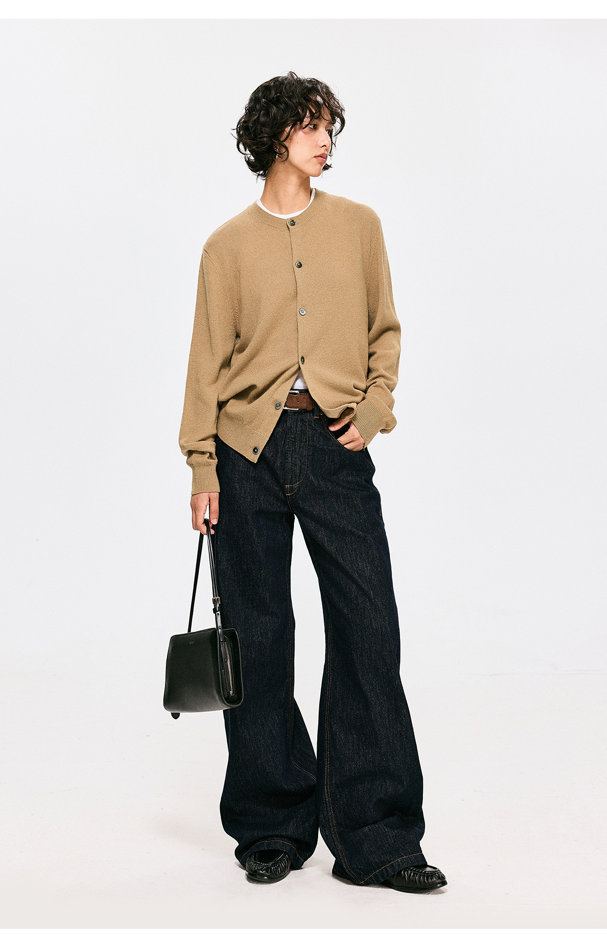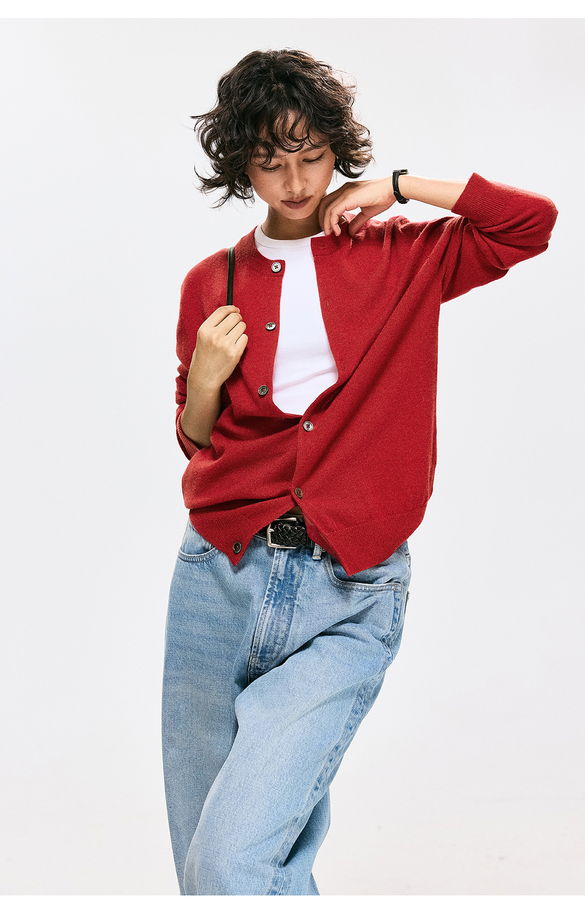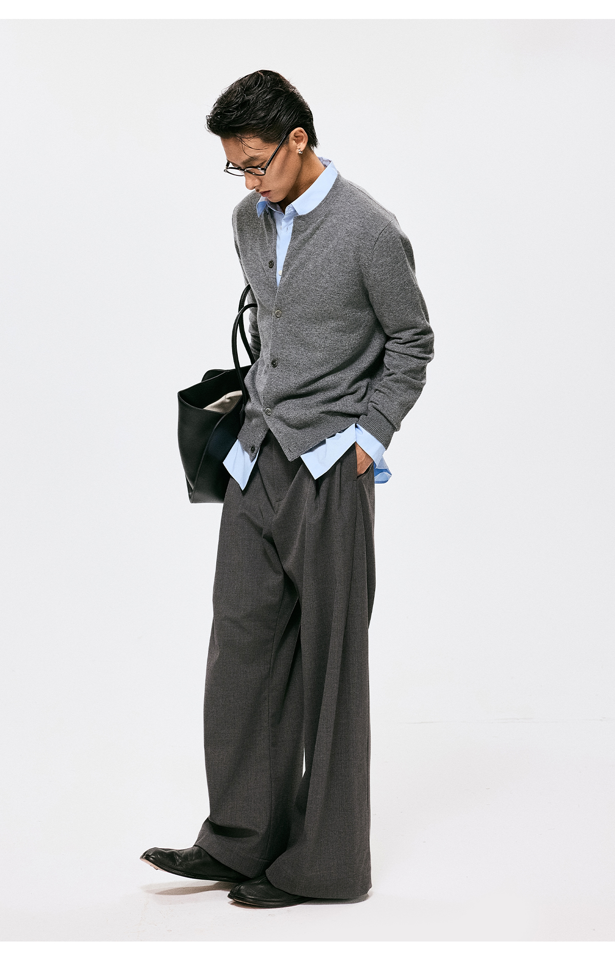 棉仓3671026002-【格雷象限】羊毛羊绒灰色圆领针织开衫