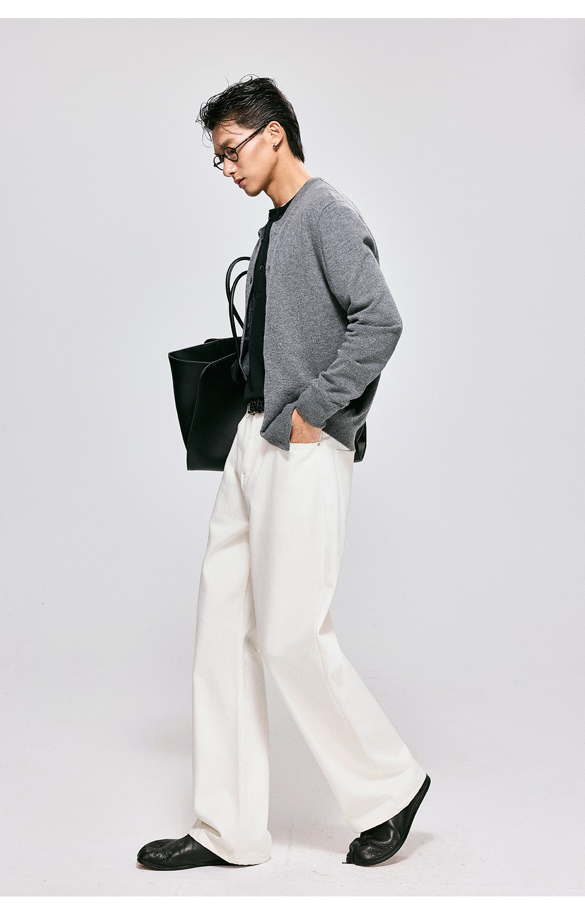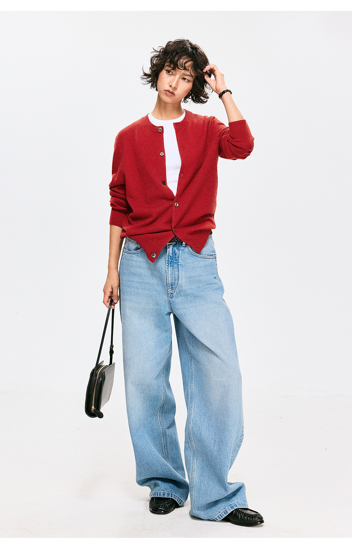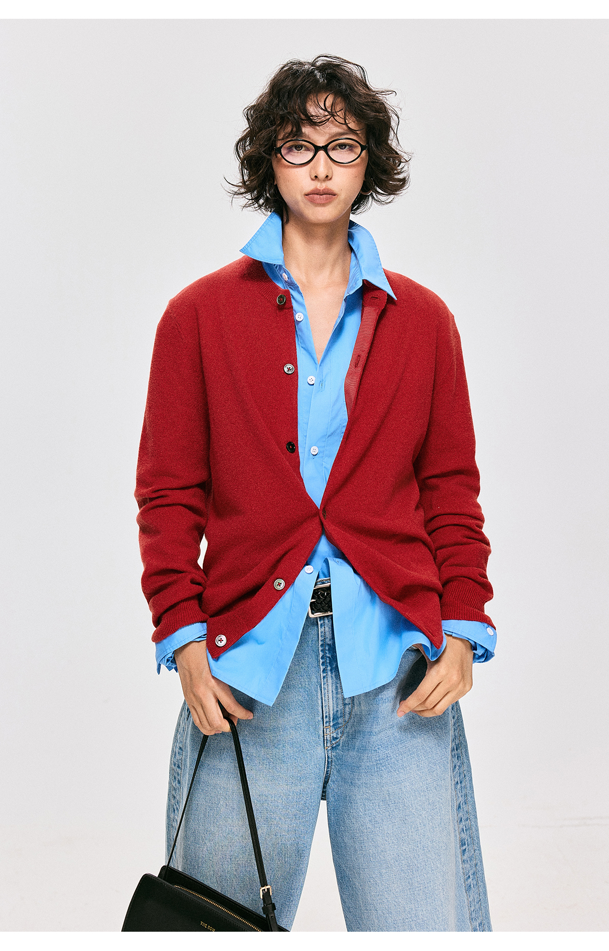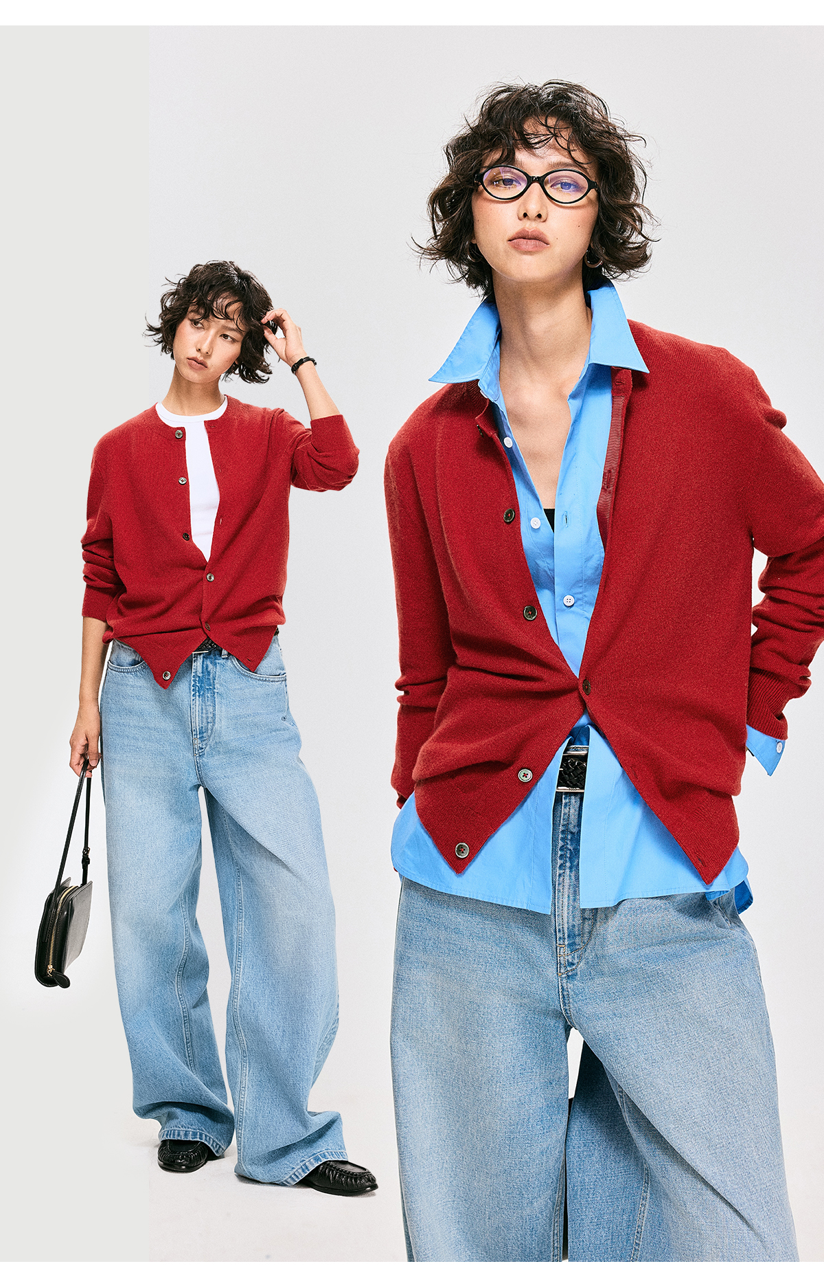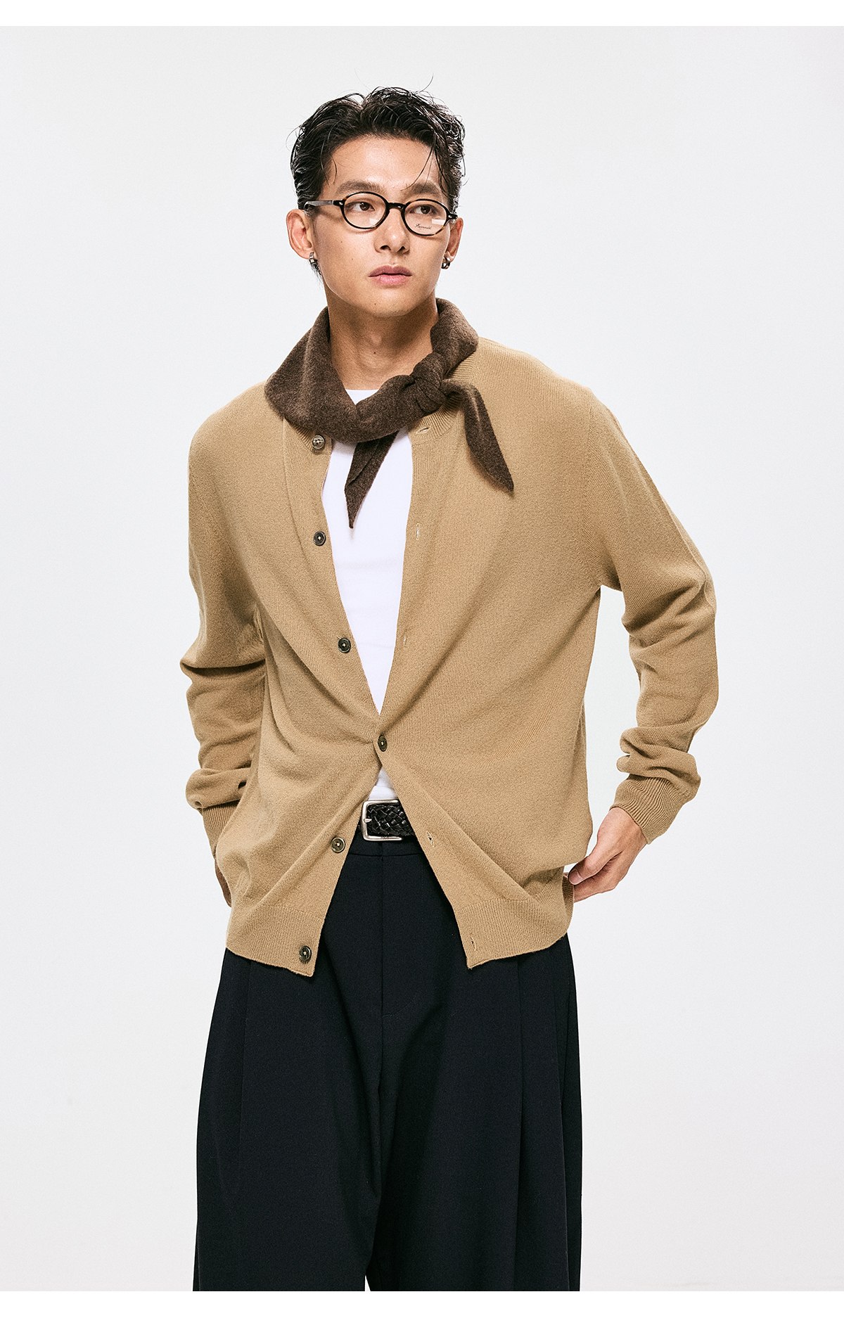棉仓3671026002-【格雷象限】羊毛羊绒灰色圆领针织开衫