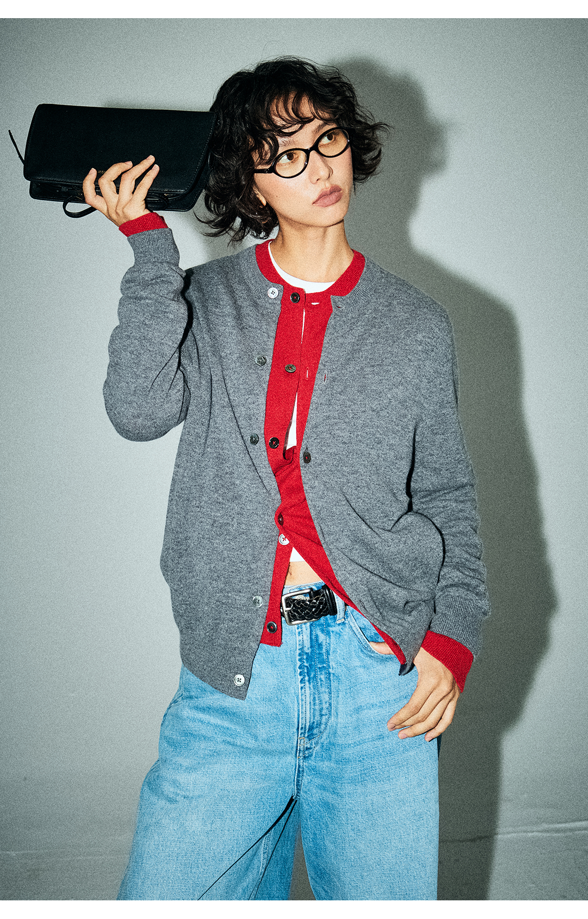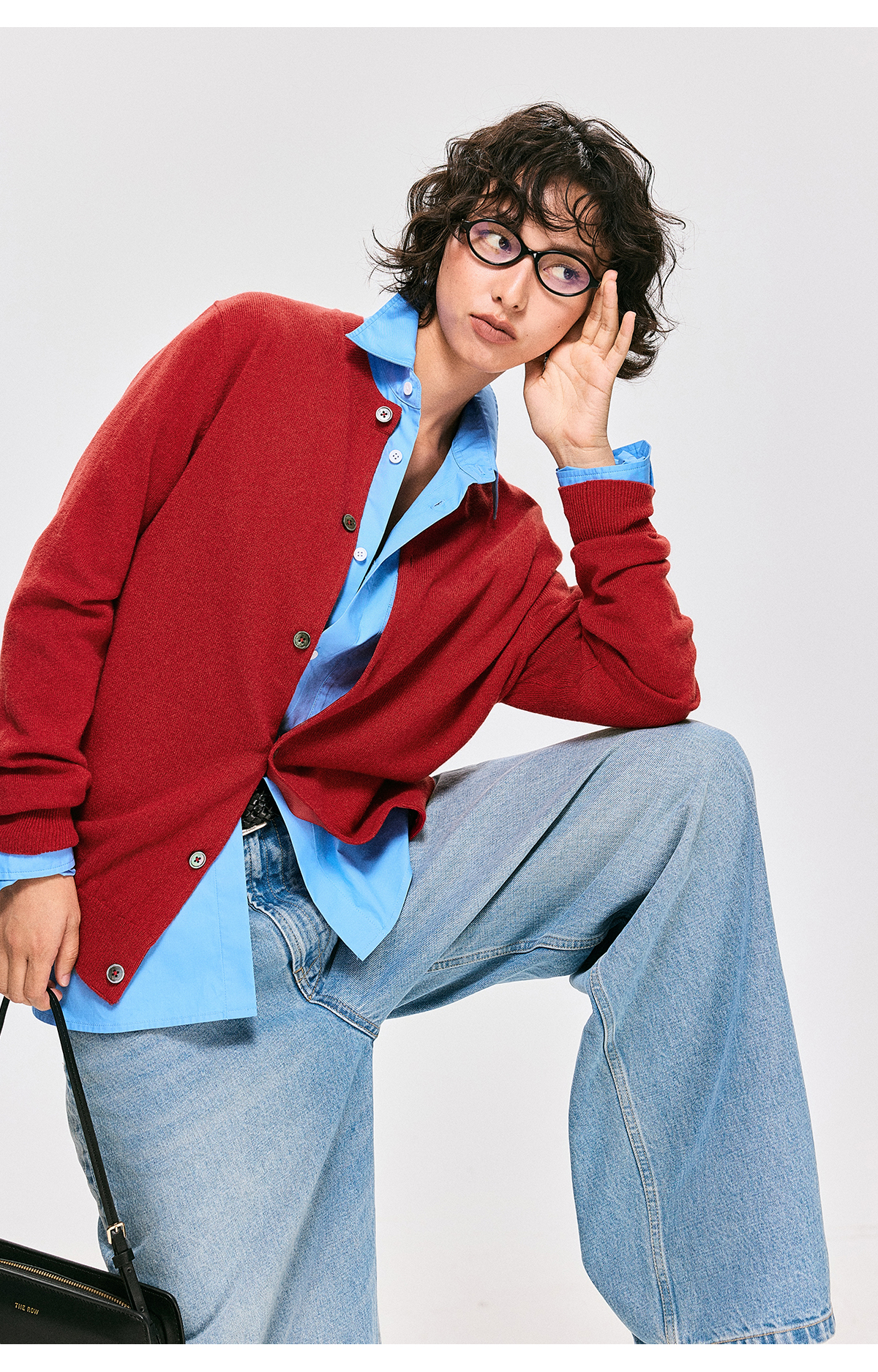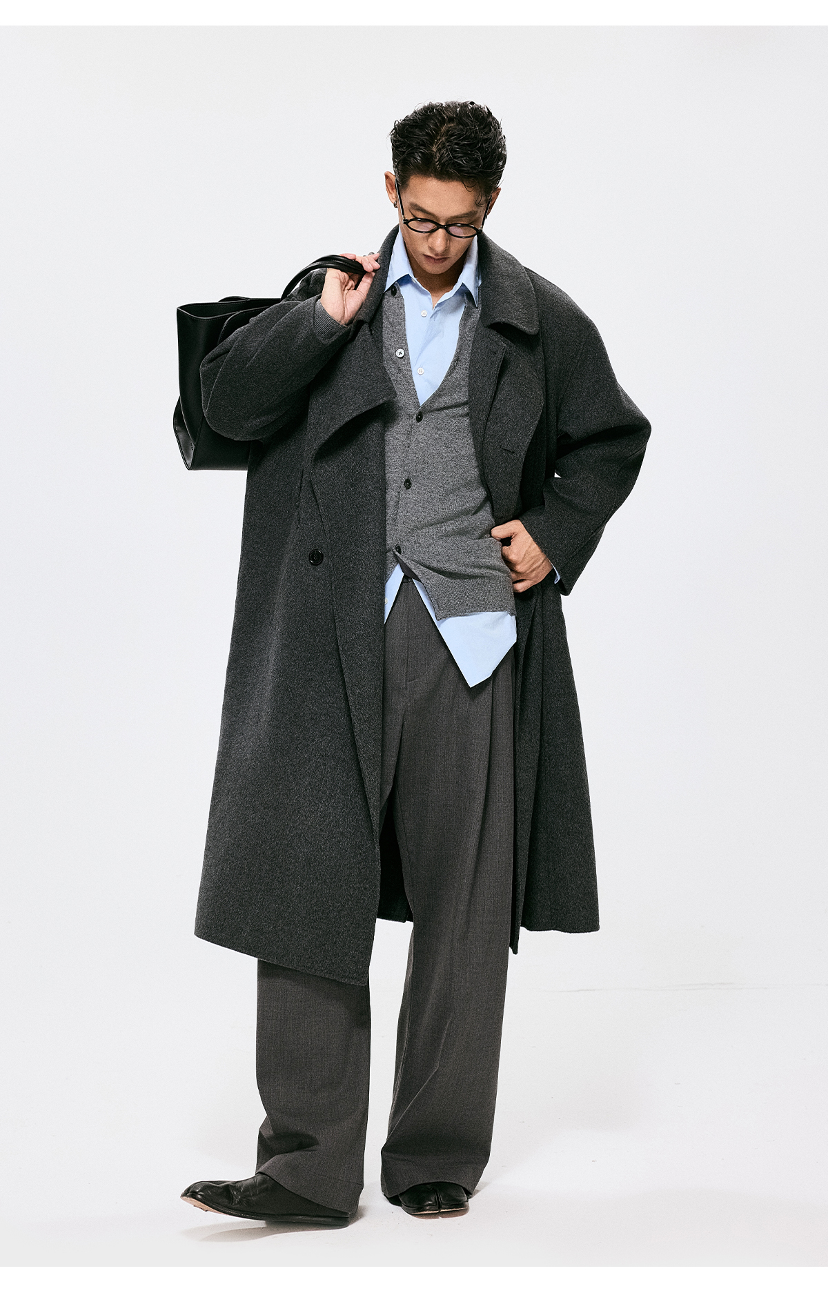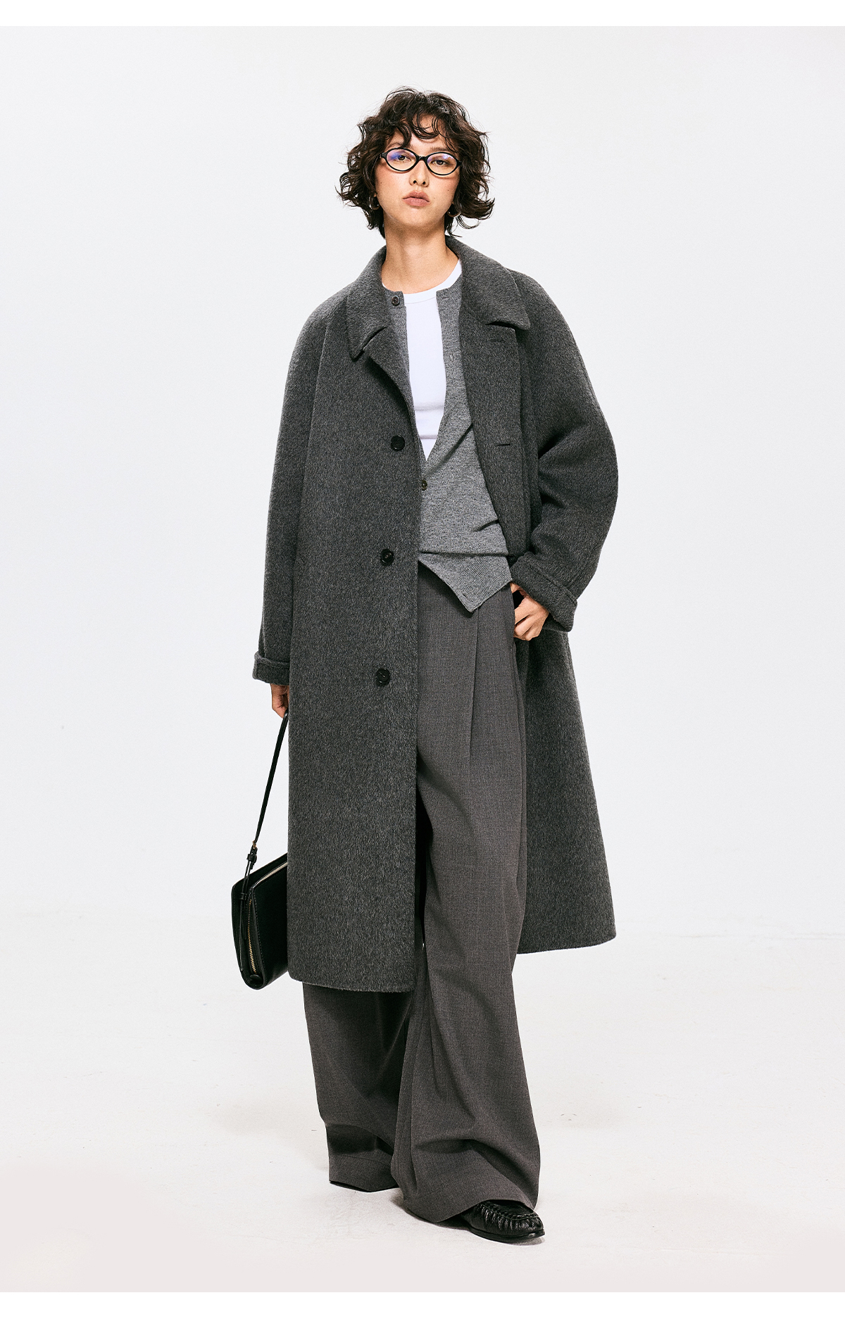 棉仓3671026002-【格雷象限】羊毛羊绒灰色圆领针织开衫