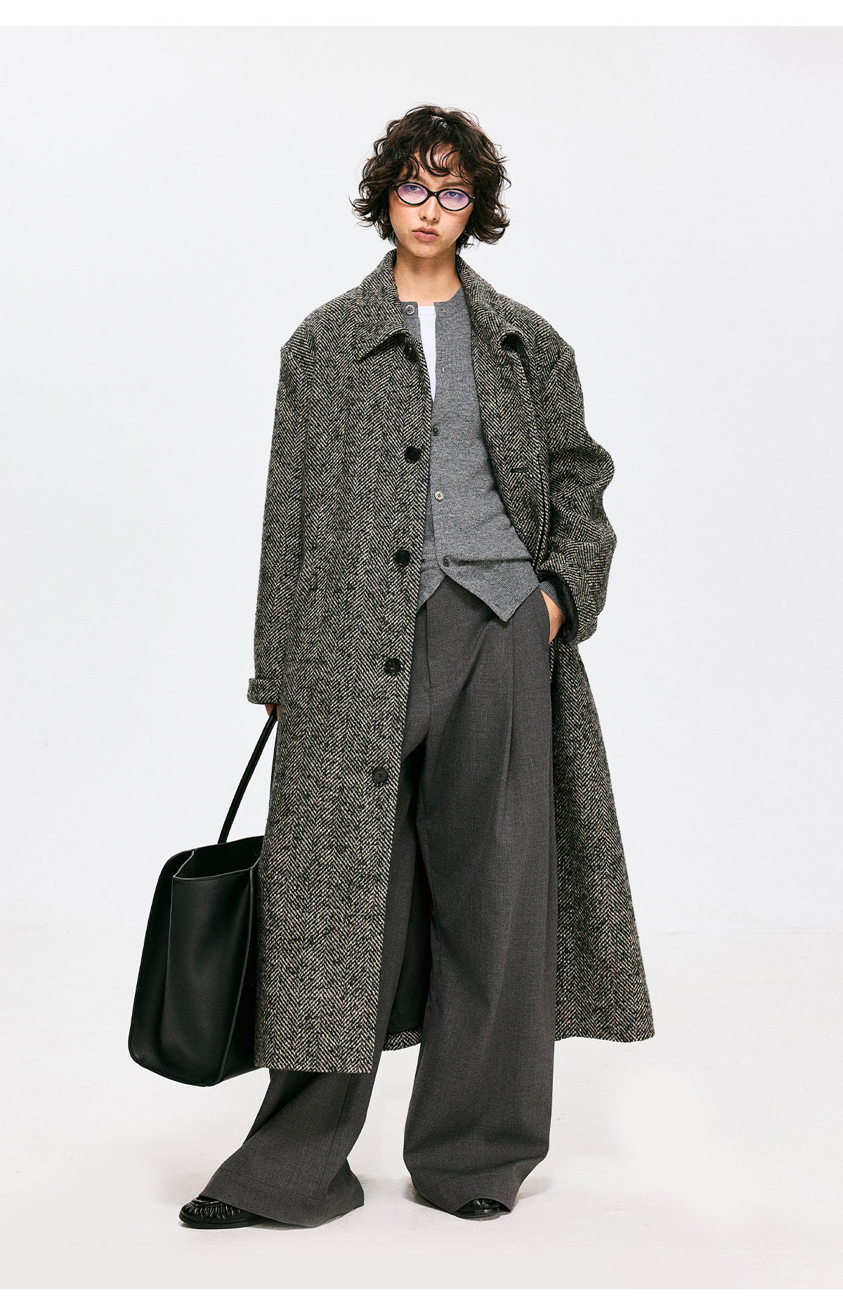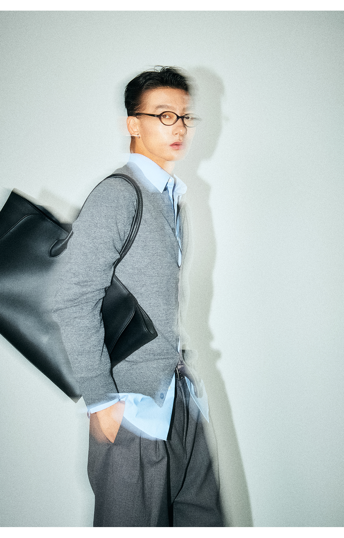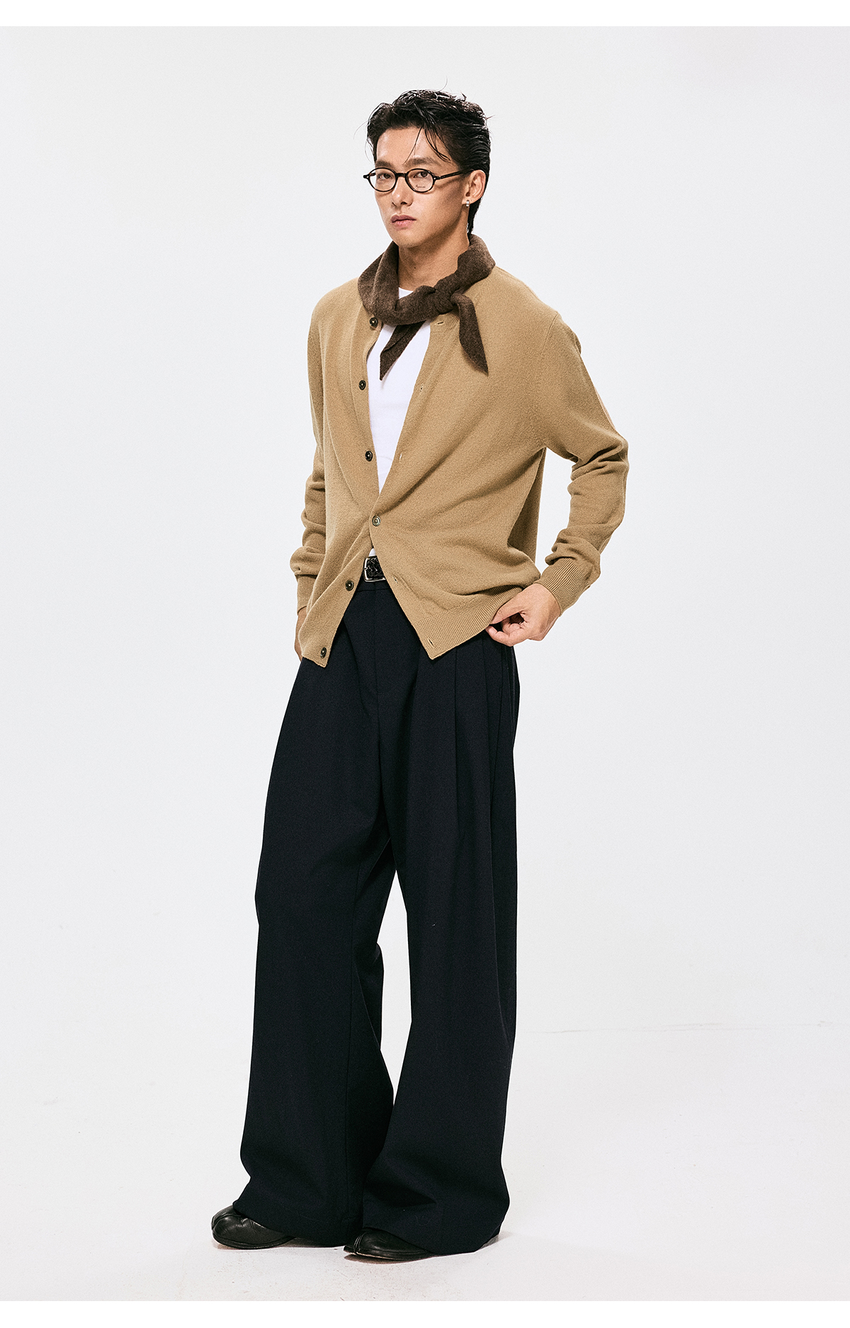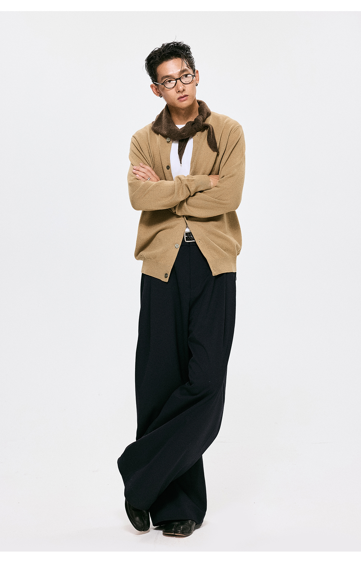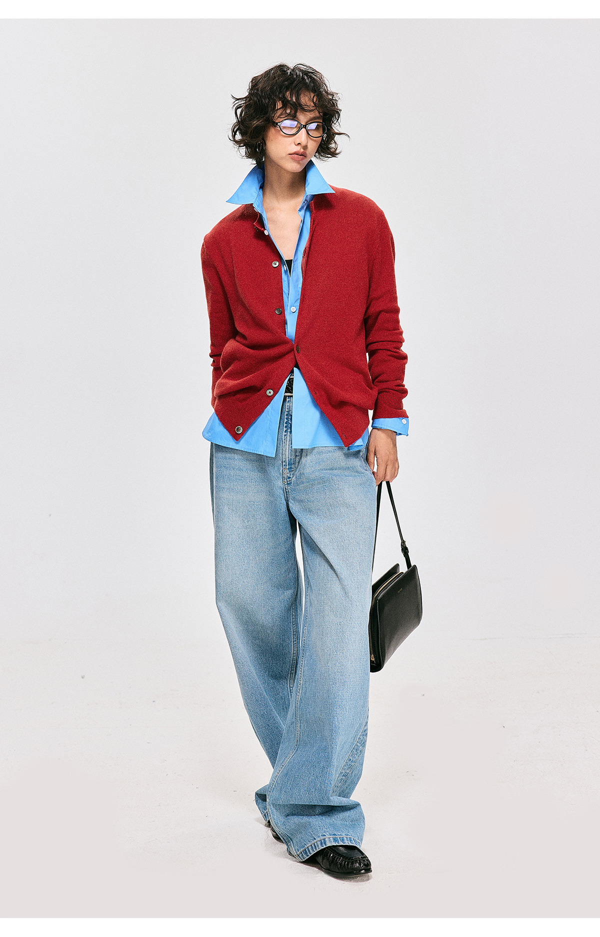 棉仓3671026002-【格雷象限】羊毛羊绒灰色圆领针织开衫