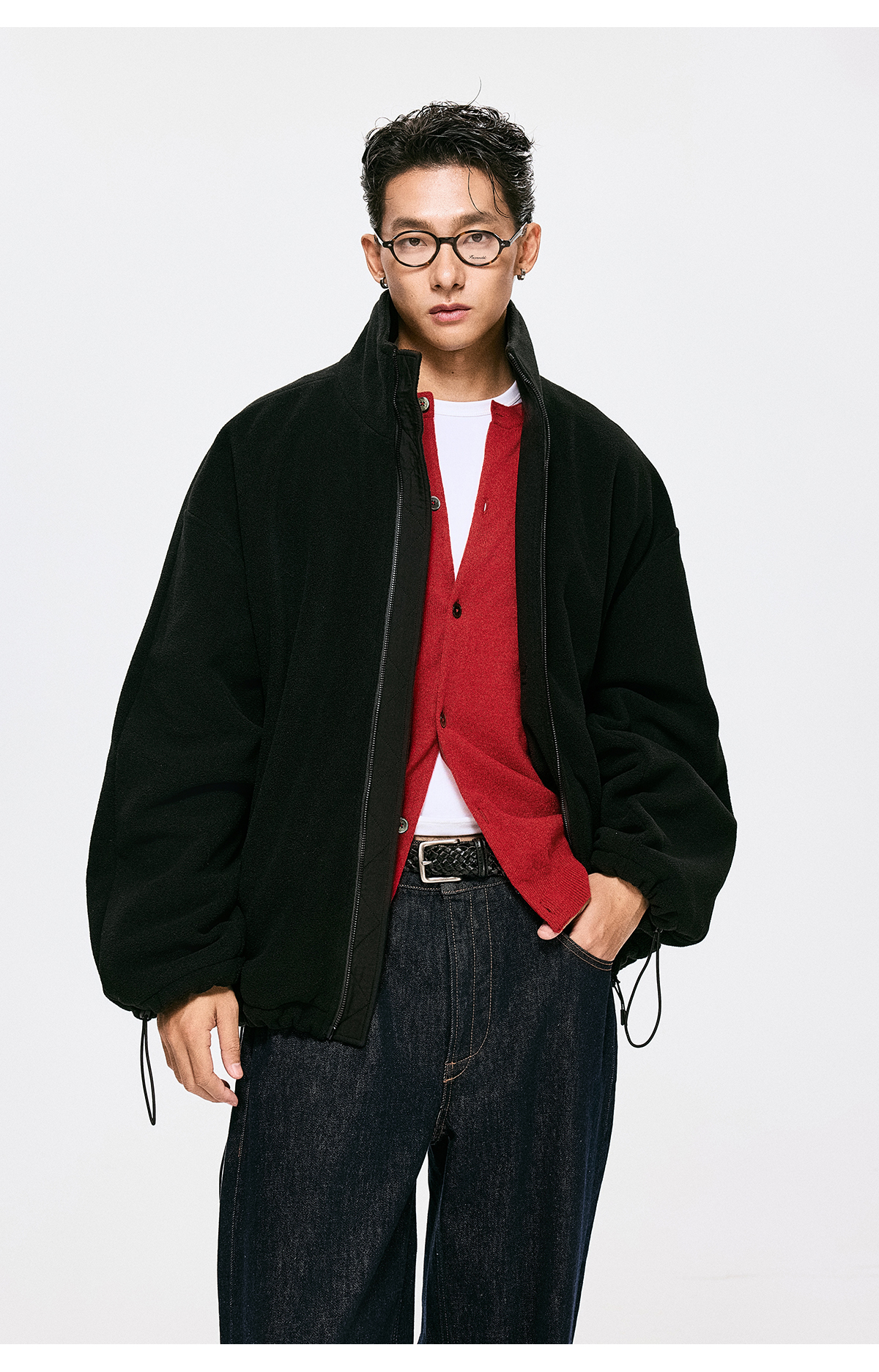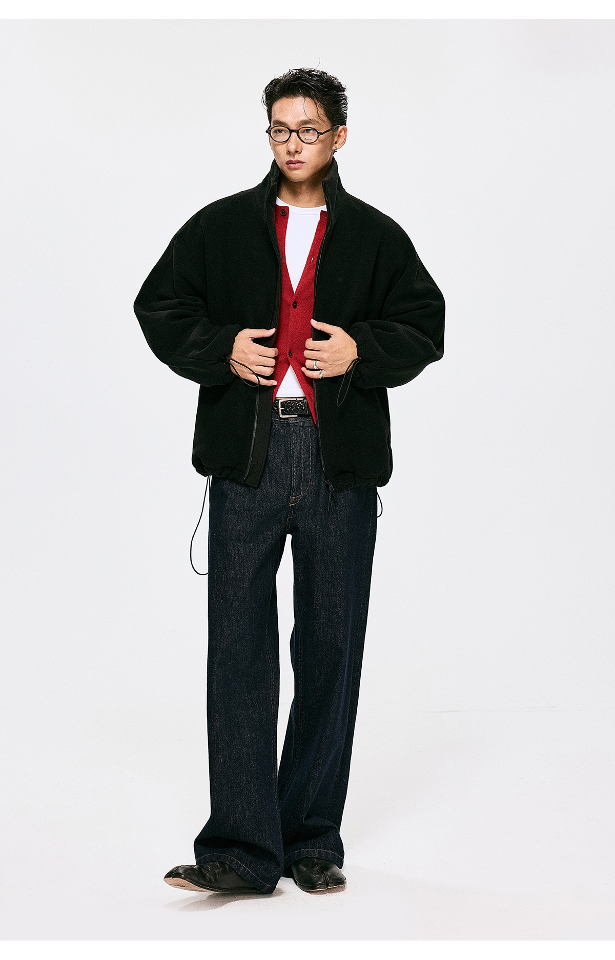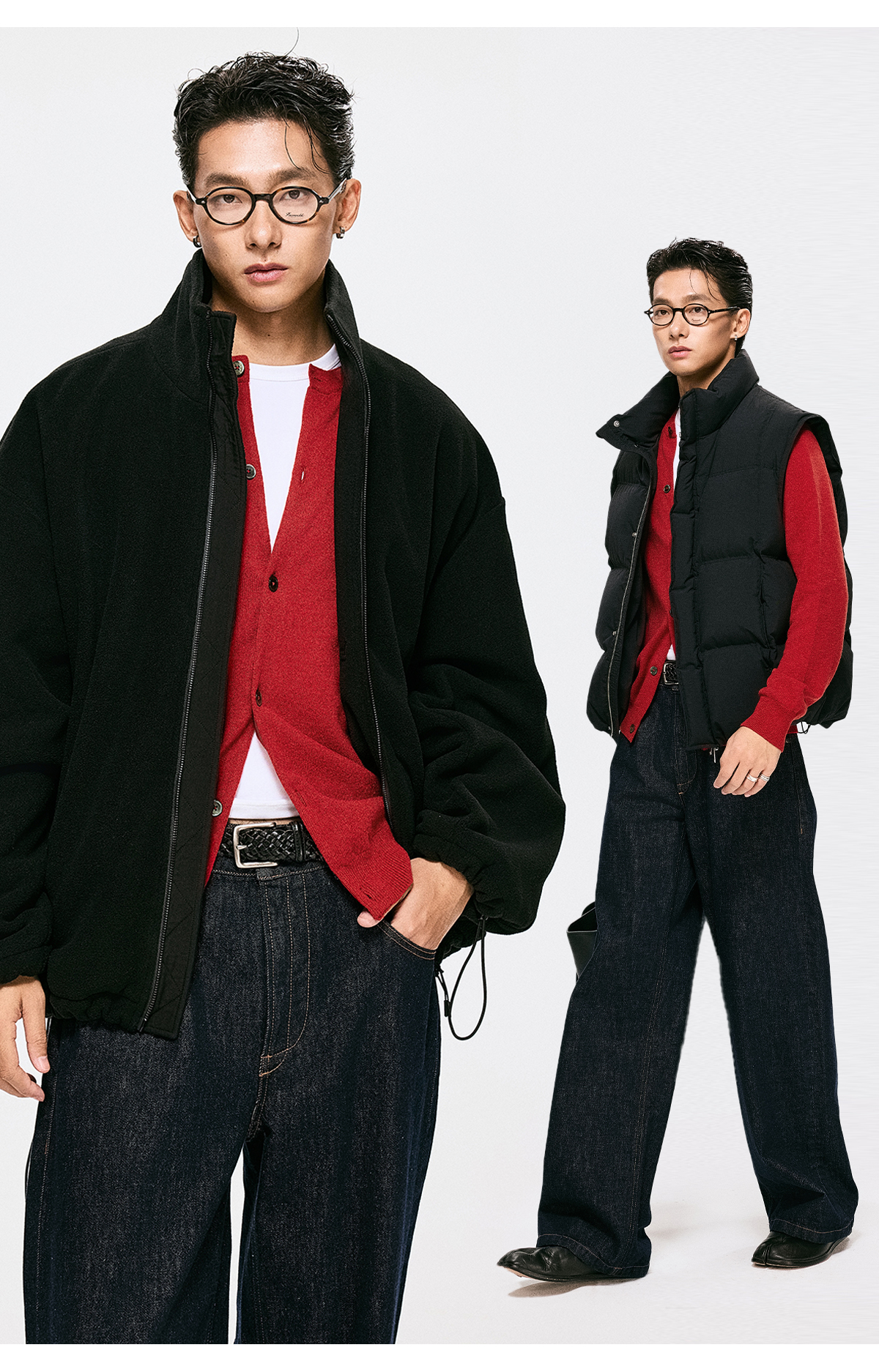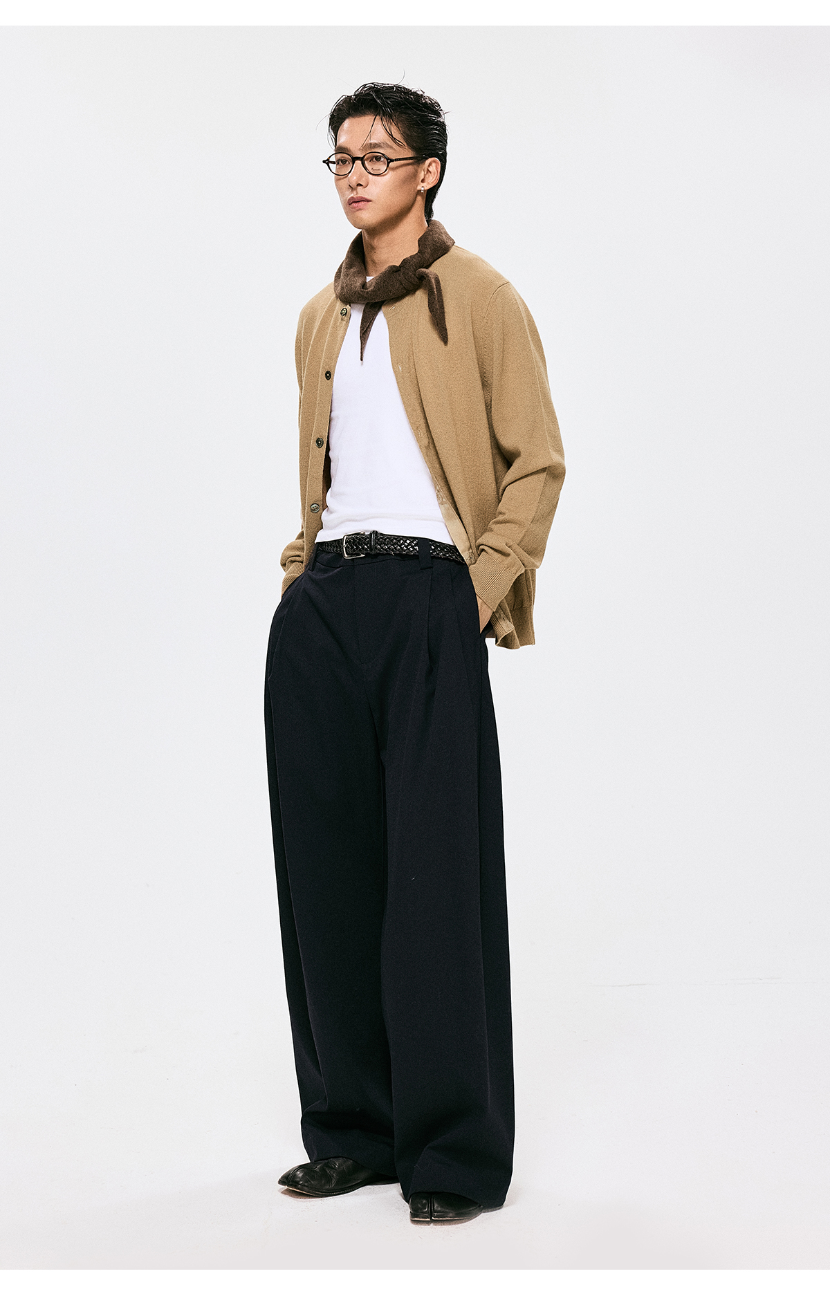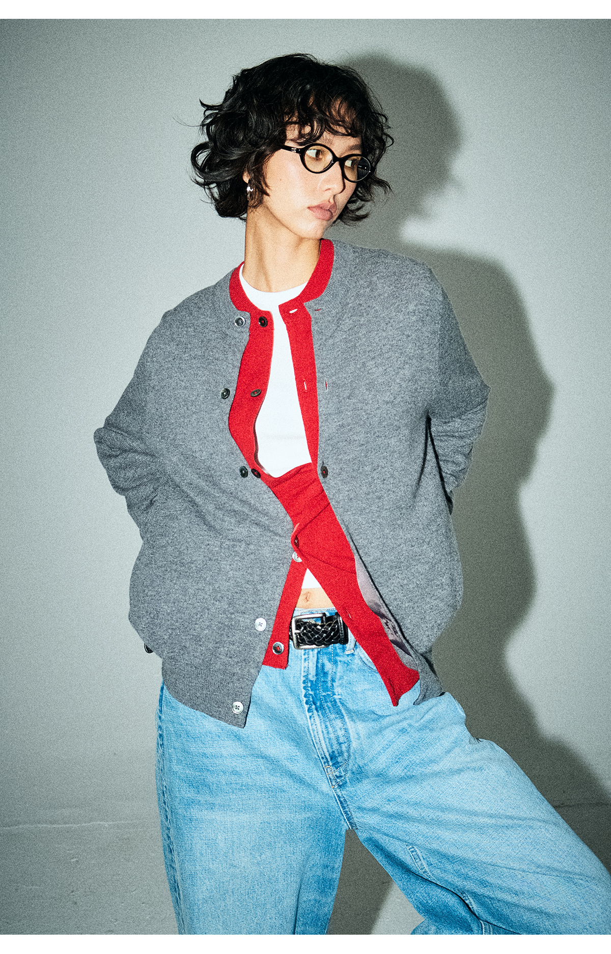 棉仓3671026002-【格雷象限】羊毛羊绒灰色圆领针织开衫