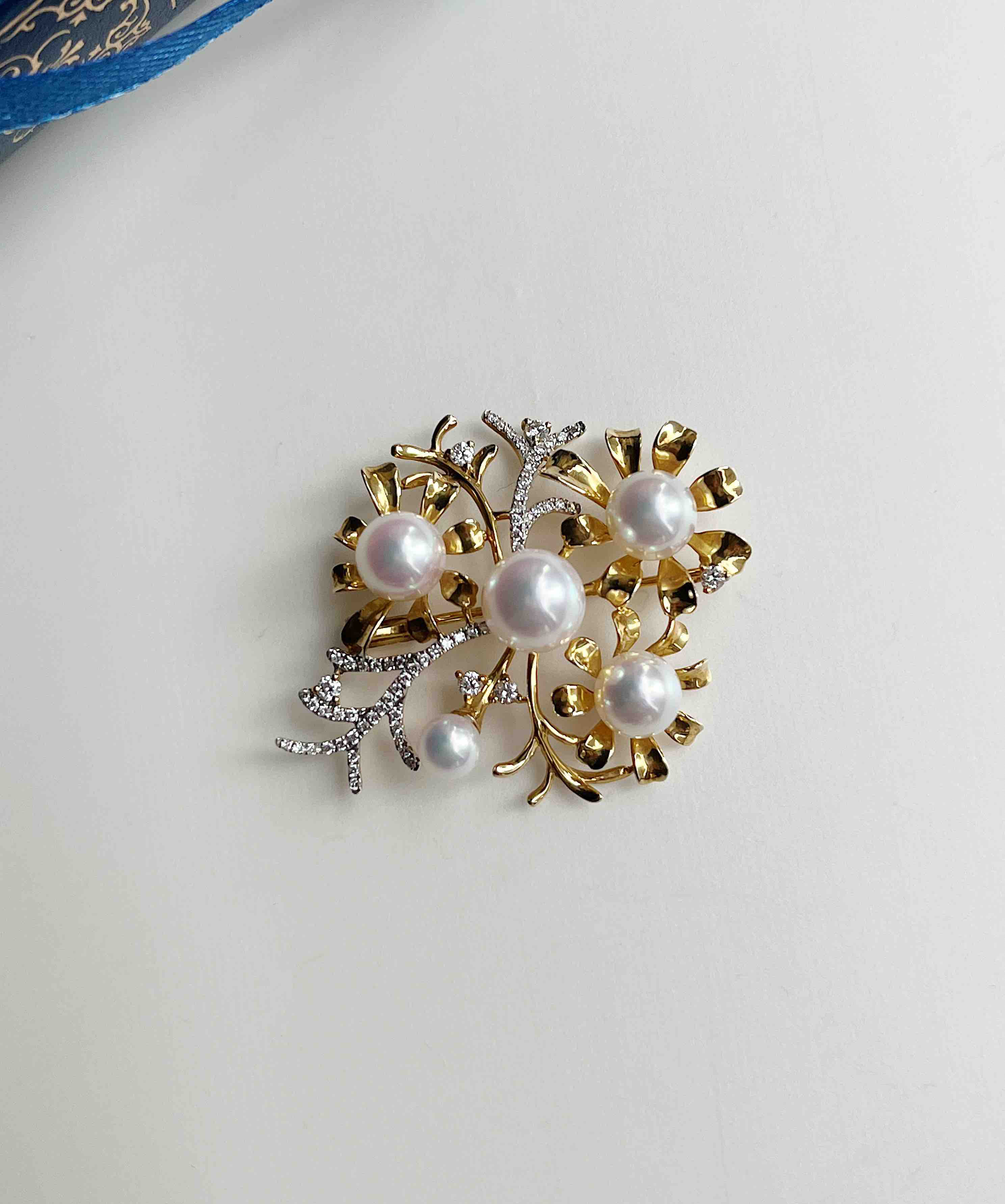 作品名称:18K镶Akoya珍珠和钻石胸针