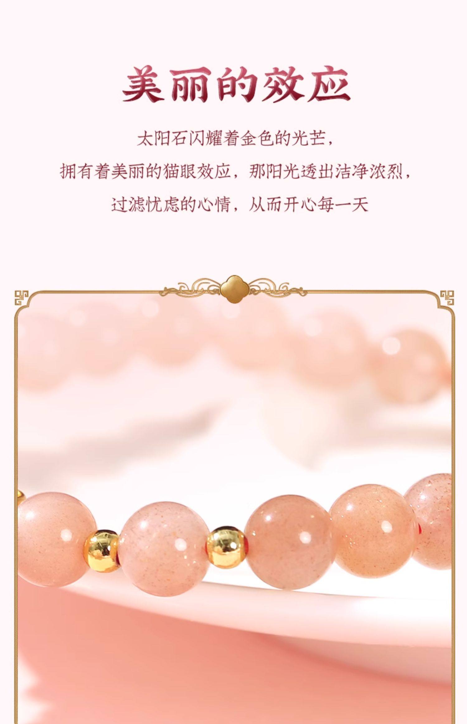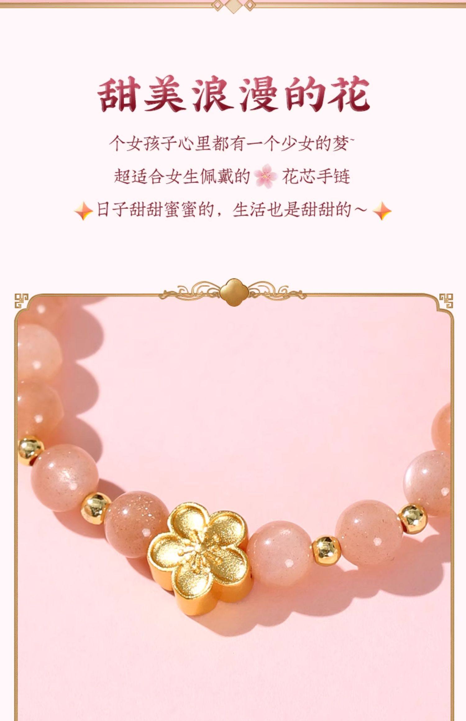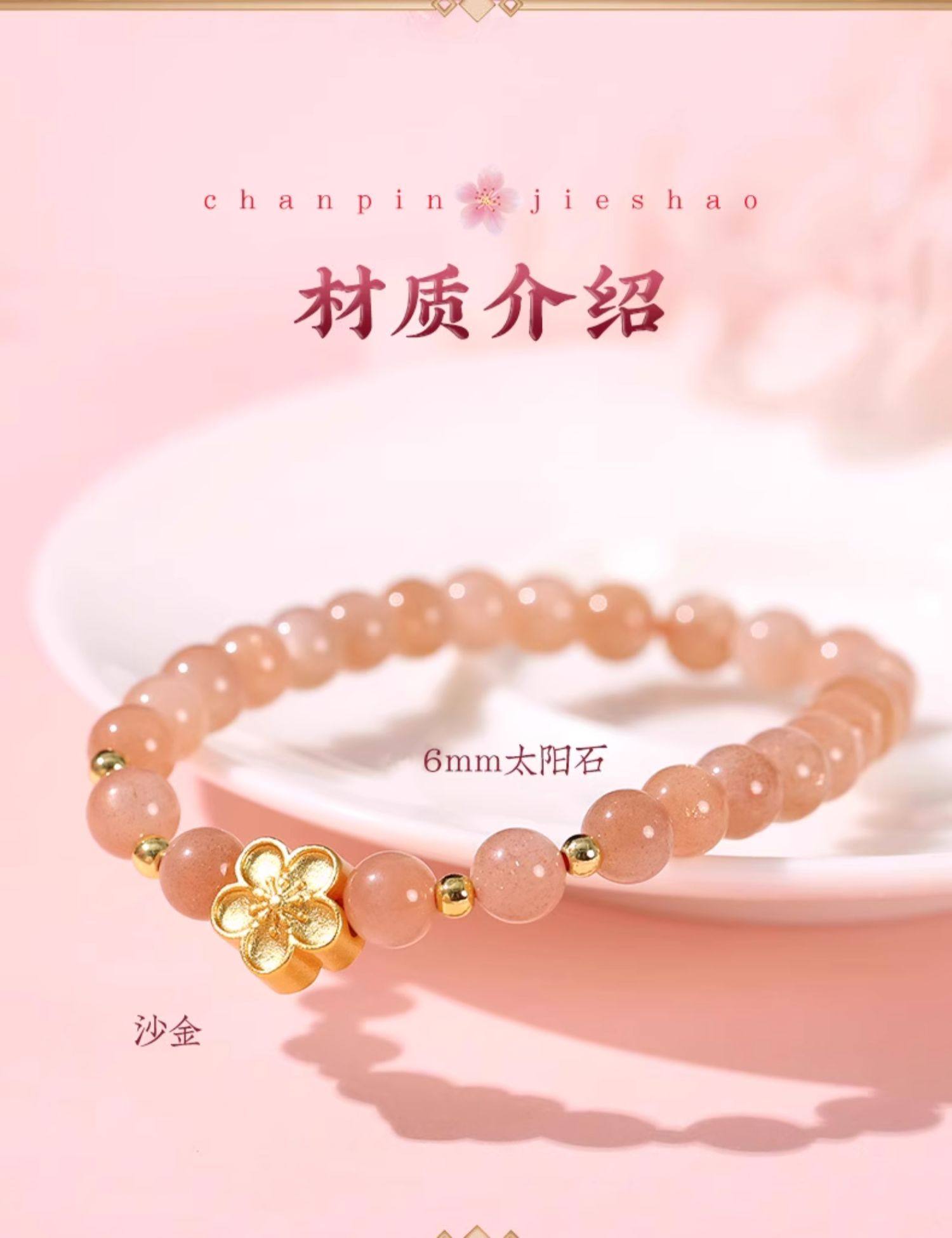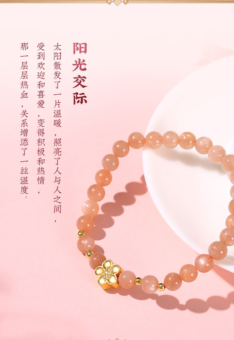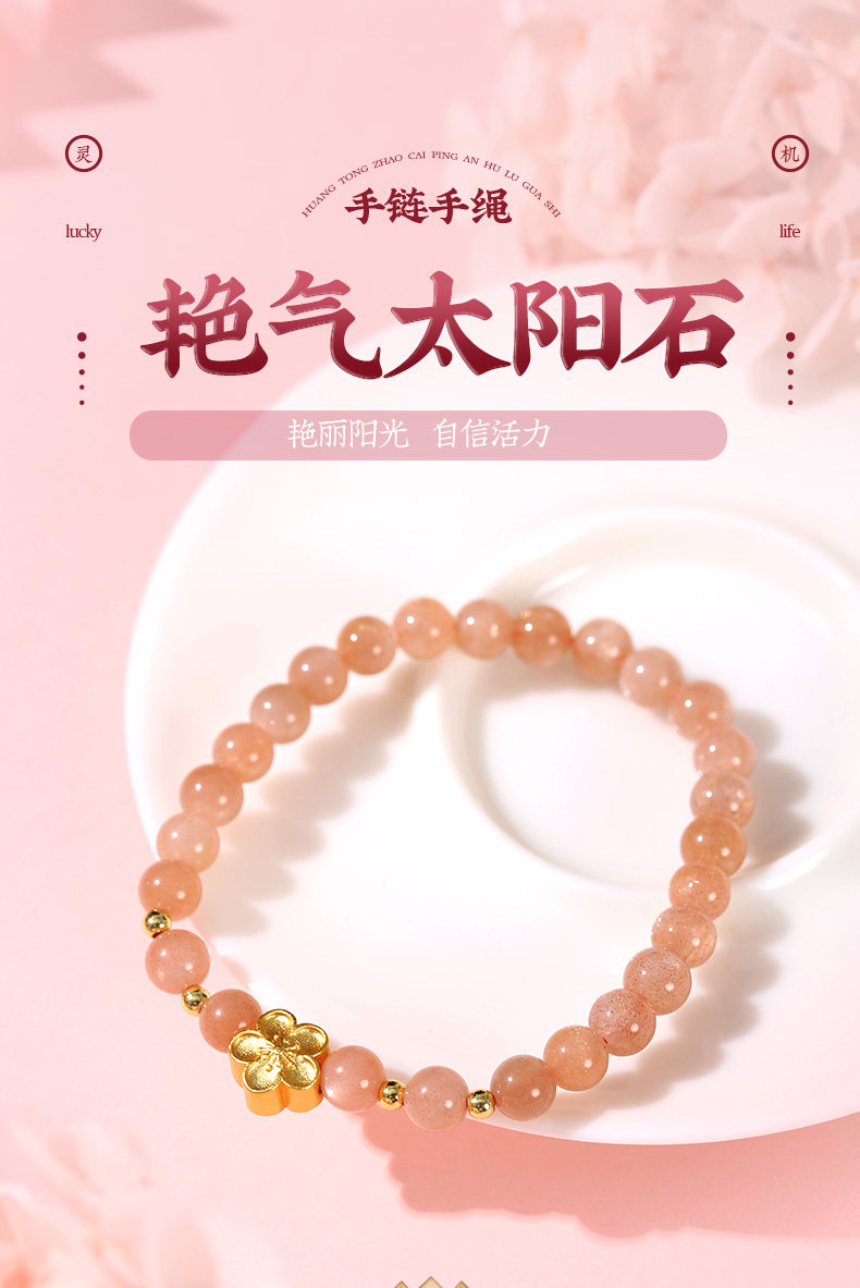 【祈愿吉品】艳气太阳石手链女水晶桃花瓣手串