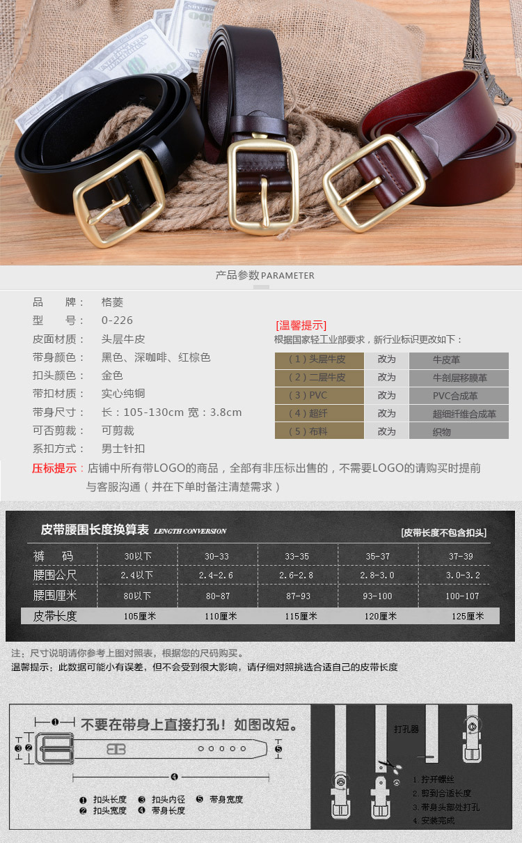 【服饰鞋包】精品铜扣 羔皮牛皮头层皮带