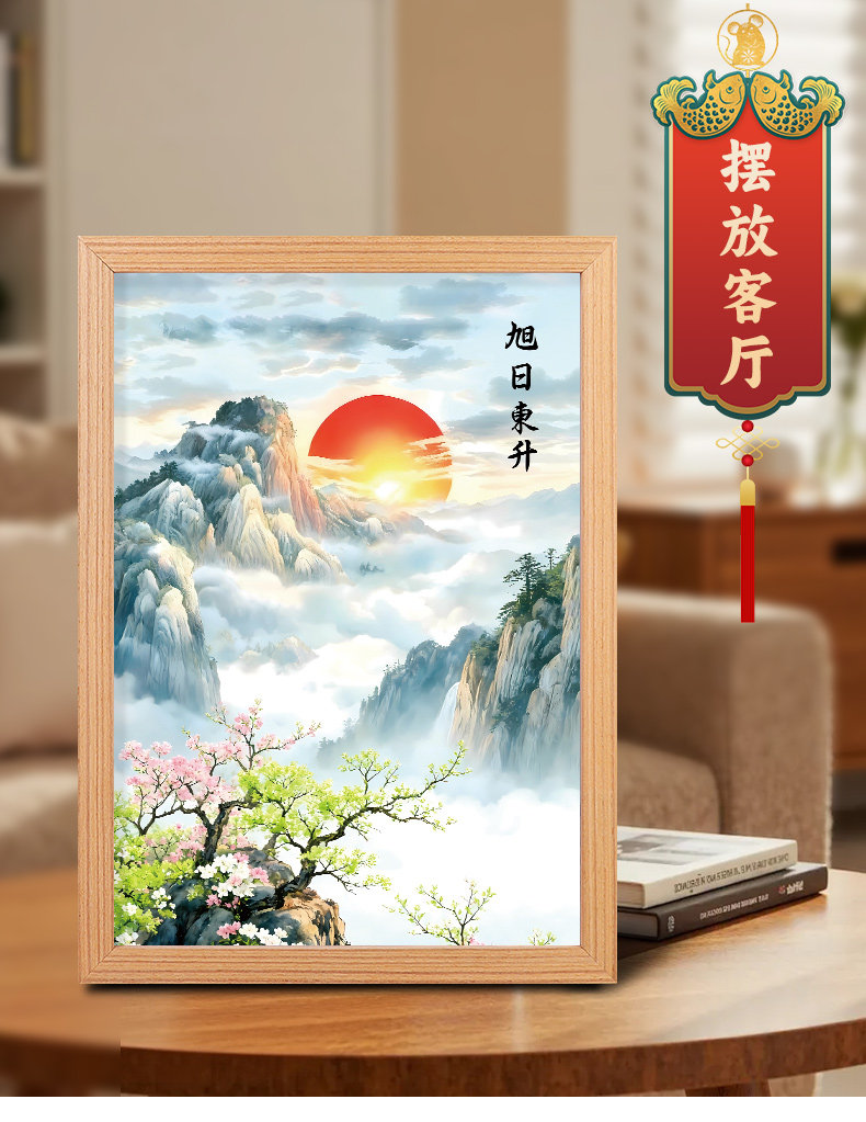 旭日东升实木摆台