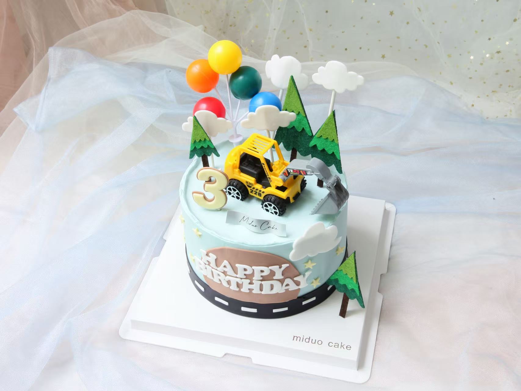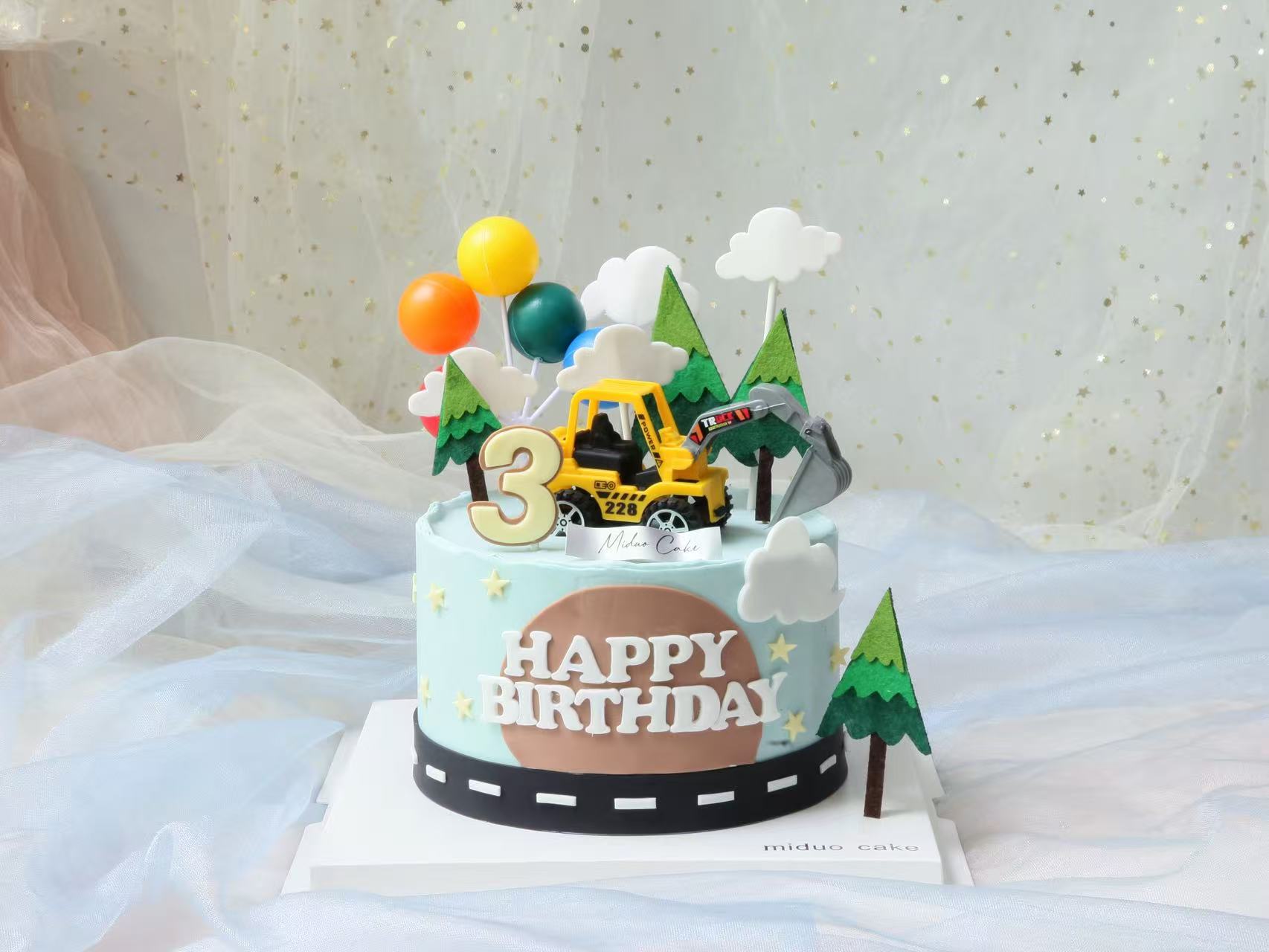 男孩款 挖土机工程车 公路 蓝色系