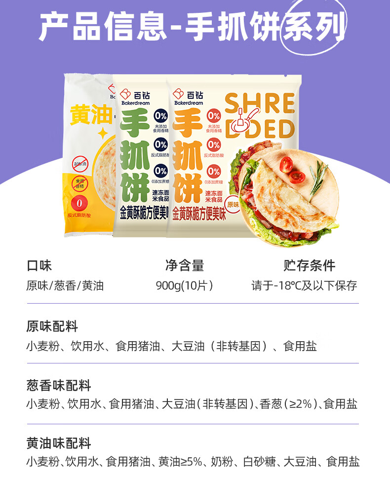 【宜昌助农馆】安琪百钻 黄油手抓饼 速食早餐方便美味900g(10片)