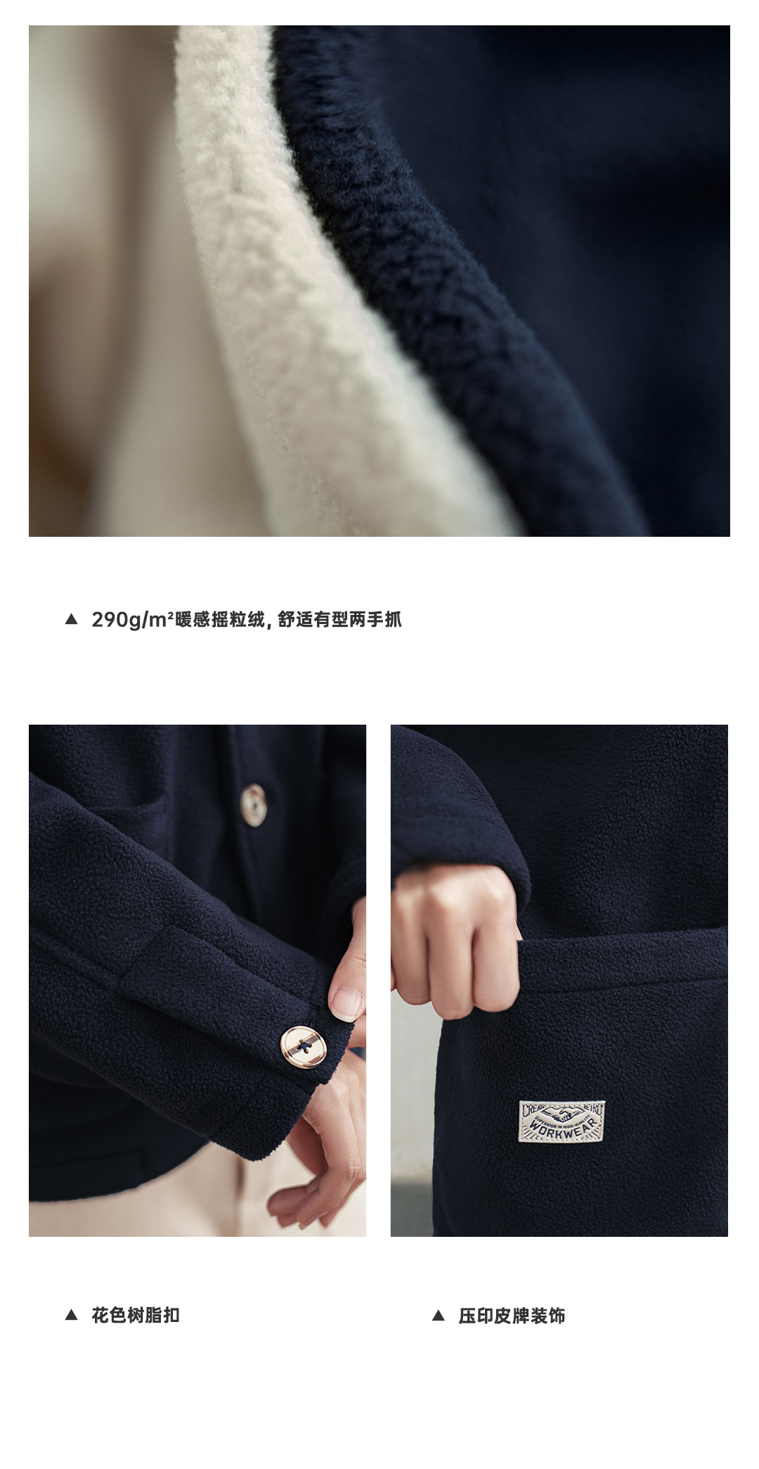 马登美式摇粒绒翻领外套暖呼呼保暖夹克休闲开衫抓绒上衣冬季女