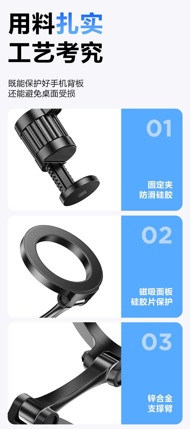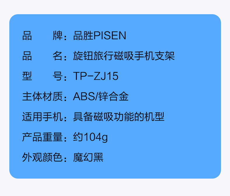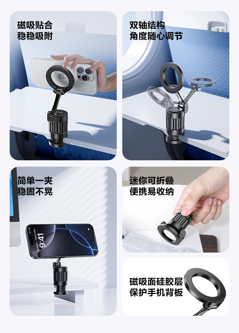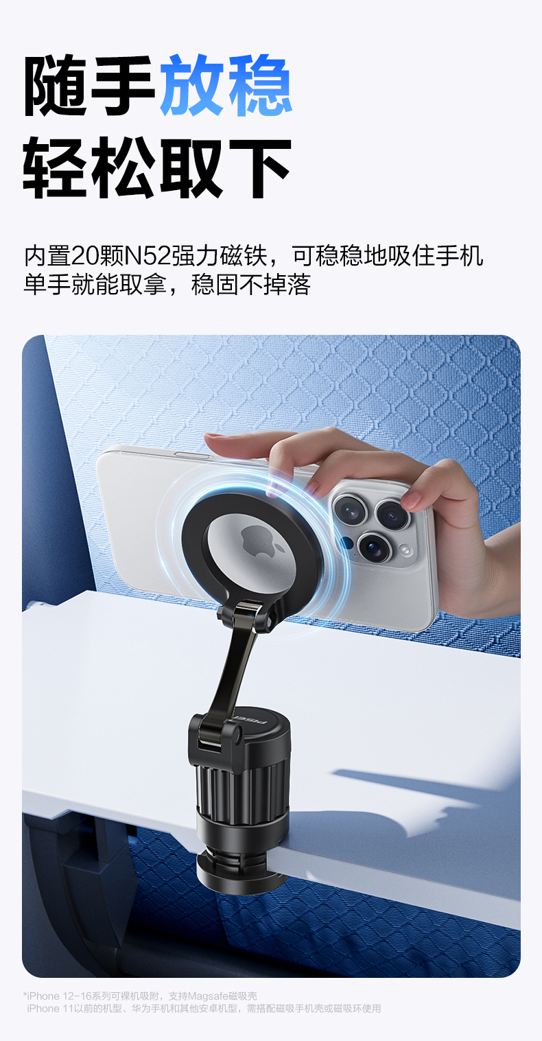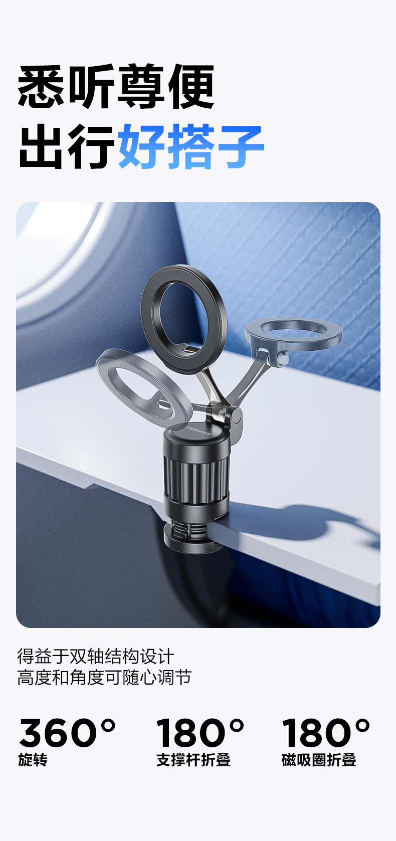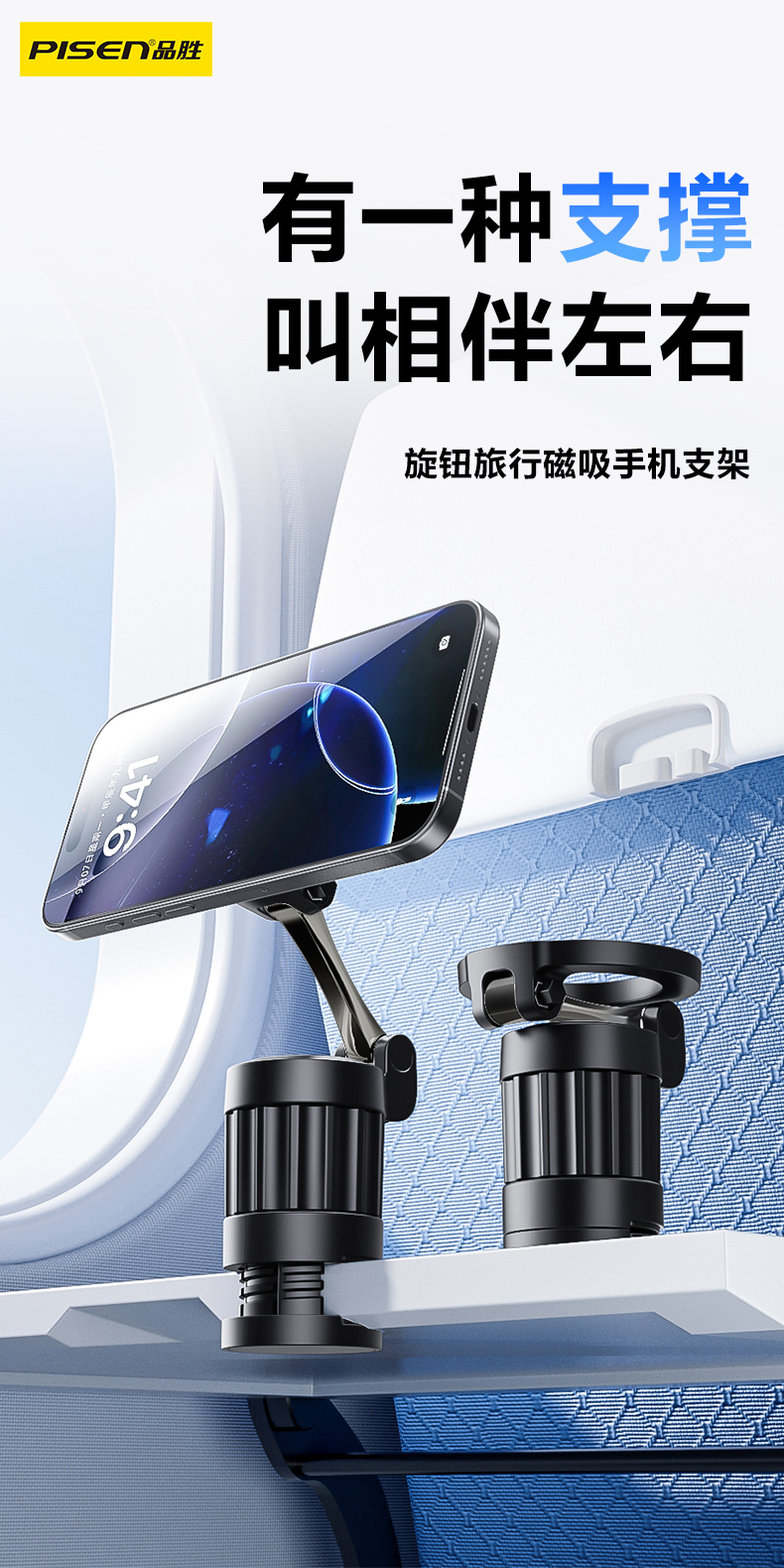 品胜 旋钮旅行磁吸手机支架 双轴结构 自由调节高度直播/追剧/视频便携