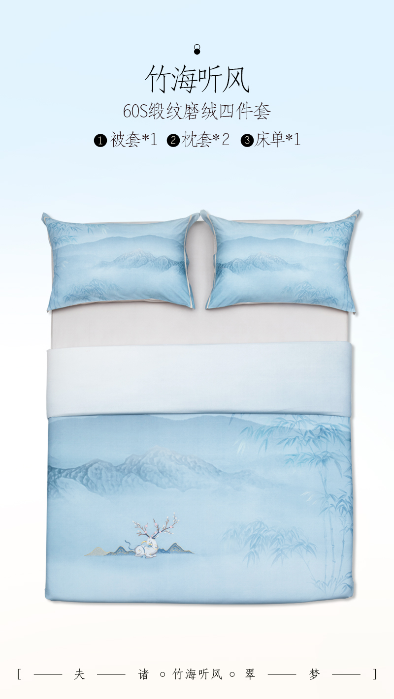 多喜爱山海经 60S贡缎磨绒四件套 竹海听风