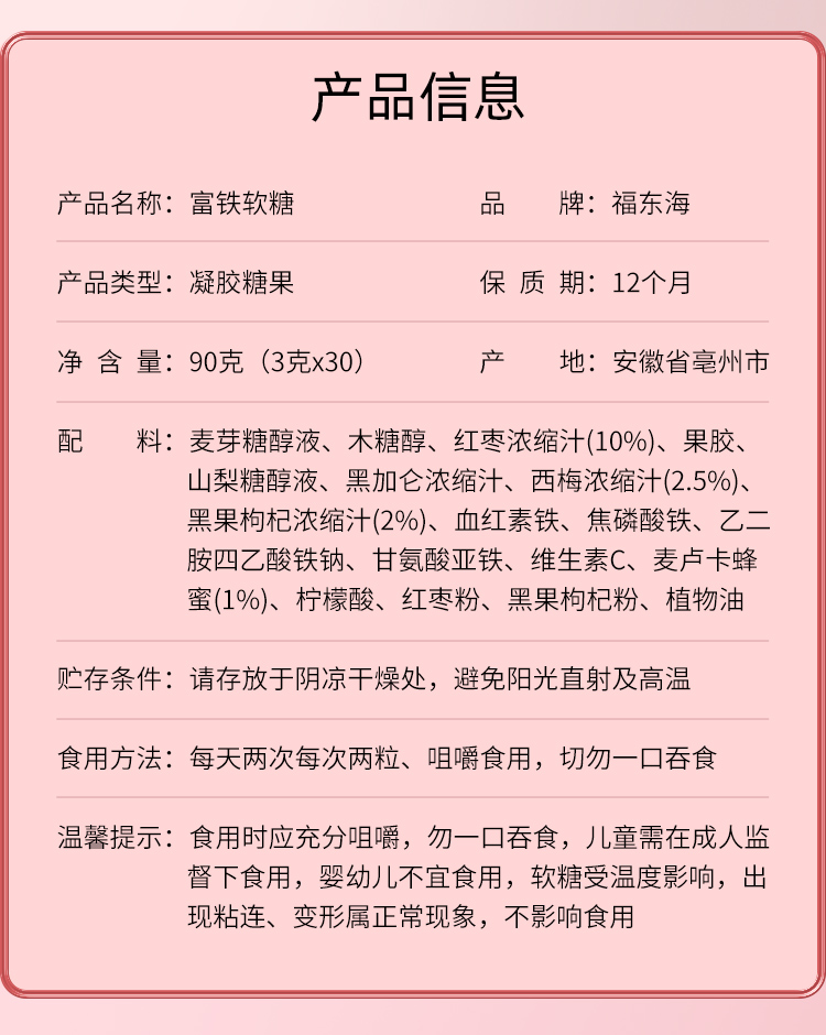 福东海 富铁软糖90克(3克*30粒) 成人儿童孕妇养生润气中老年人送礼家中常备即食糖果