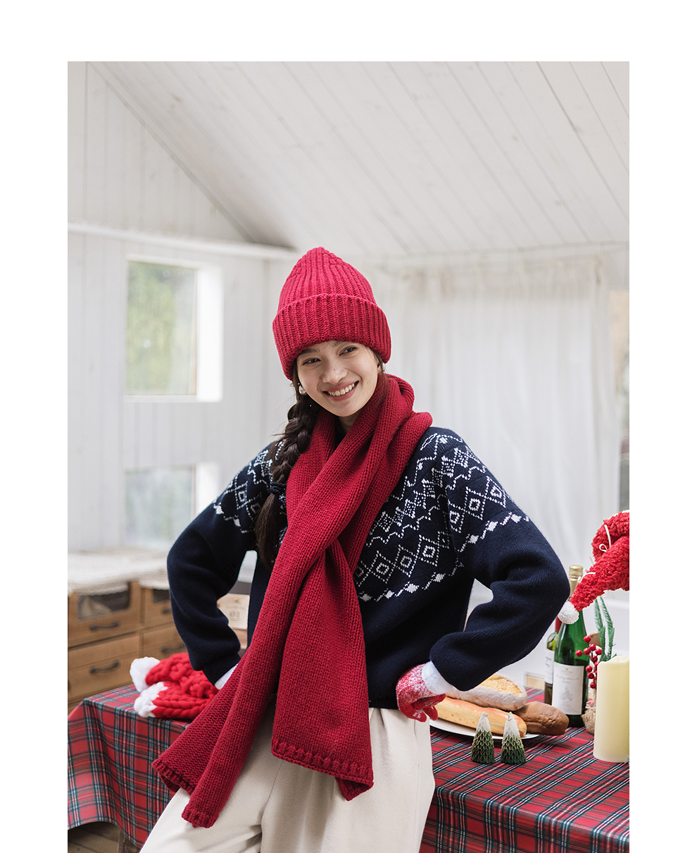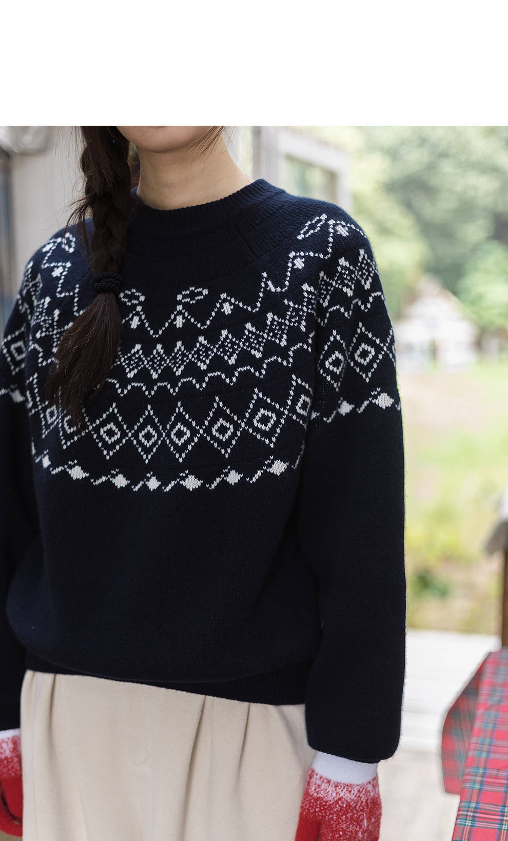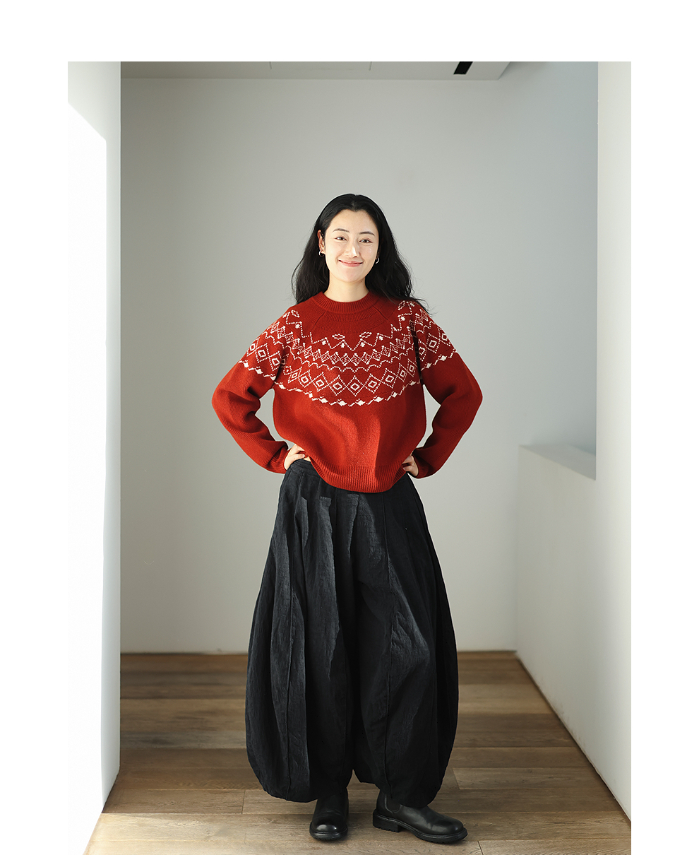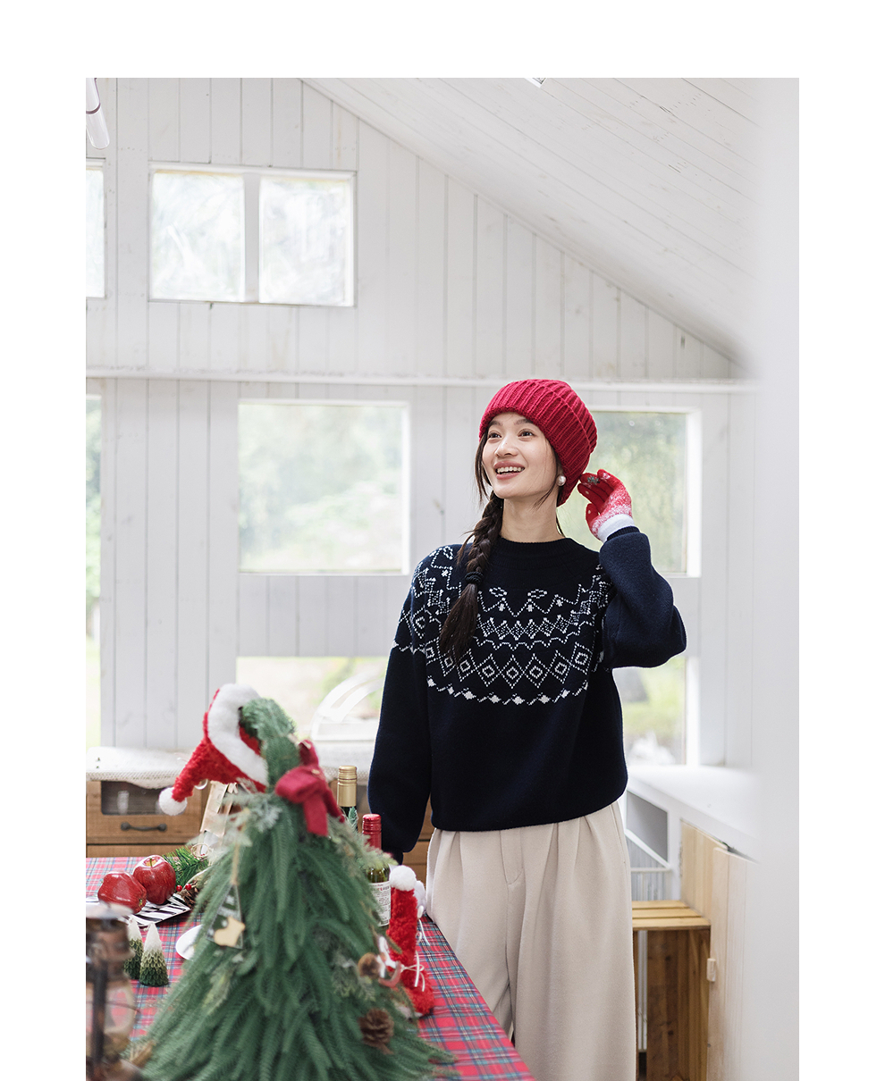 特绽放828朵/费尔岛毛衫复古文艺撞色套头毛针织衫设计感内搭毛衣