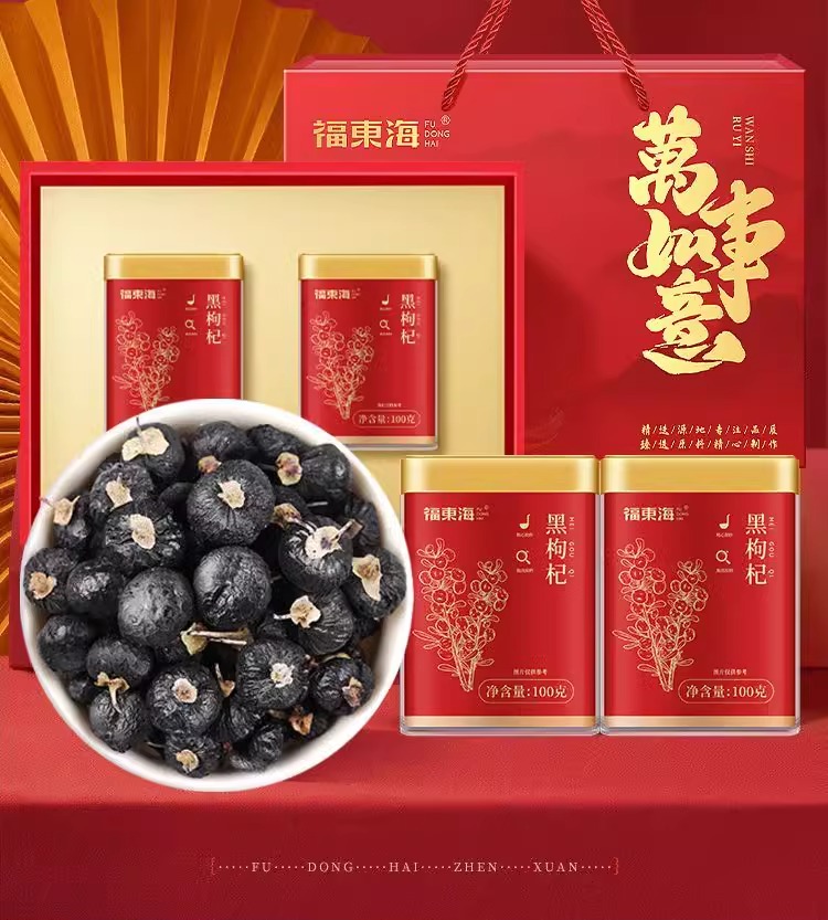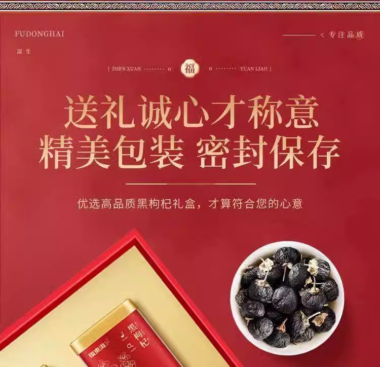 福东海 黑枸杞礼盒200克 青海柴达木源产牛头大果礼品送父母长辈营养团购养生茶