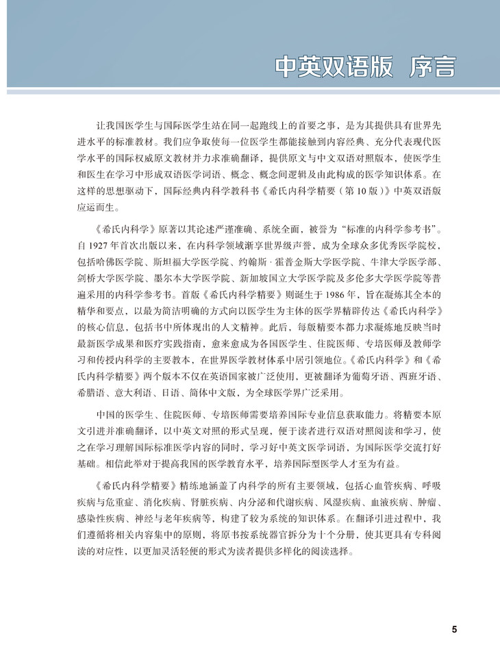 书名:希氏内科学精要(第10版) 第1分册 内科学概论· 呼吸与危重症医学· 术前和术后照护(中英双语版)