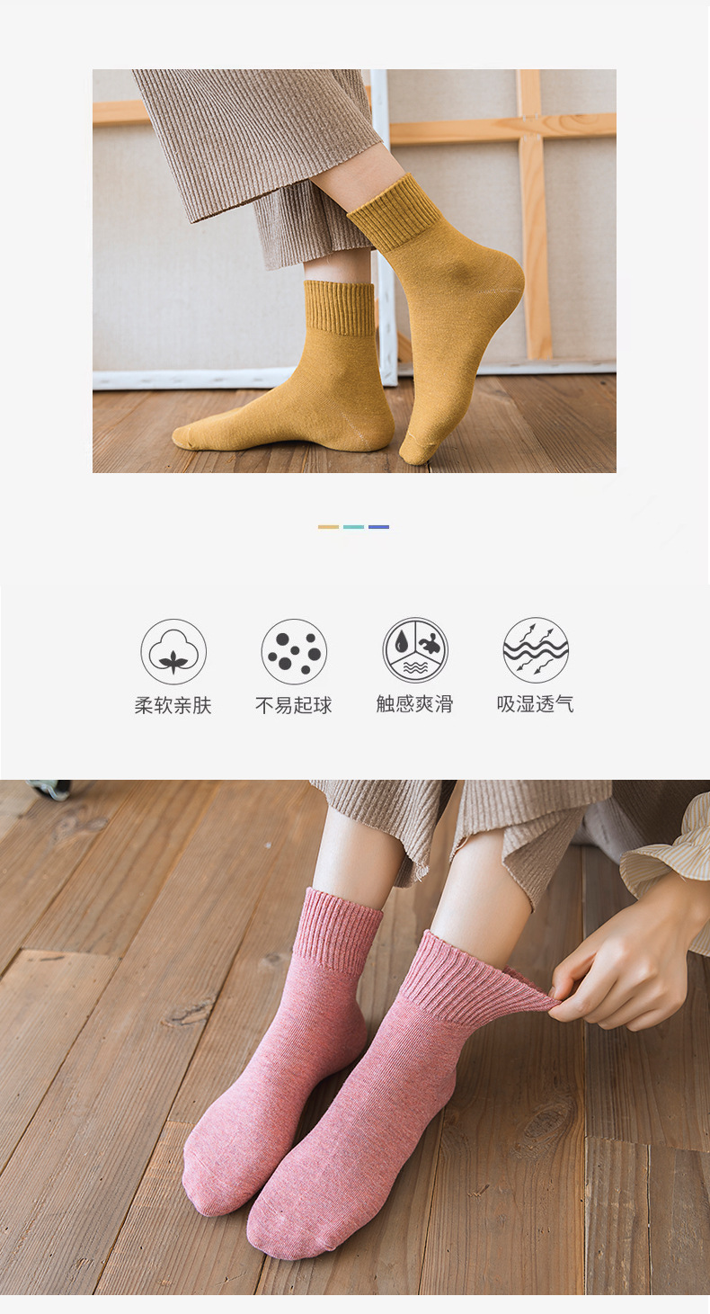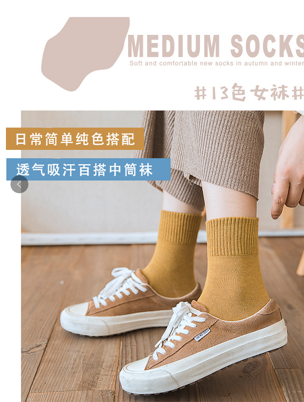 【糖果系列5双装】秋冬季新款袜子女士纯色棉袜高罗口女袜中筒袜ins潮流日系短筒袜