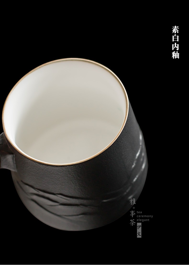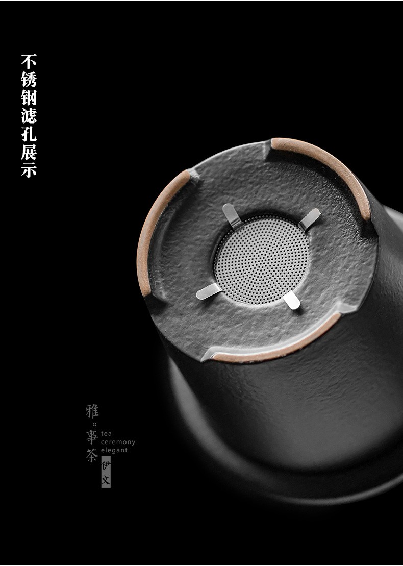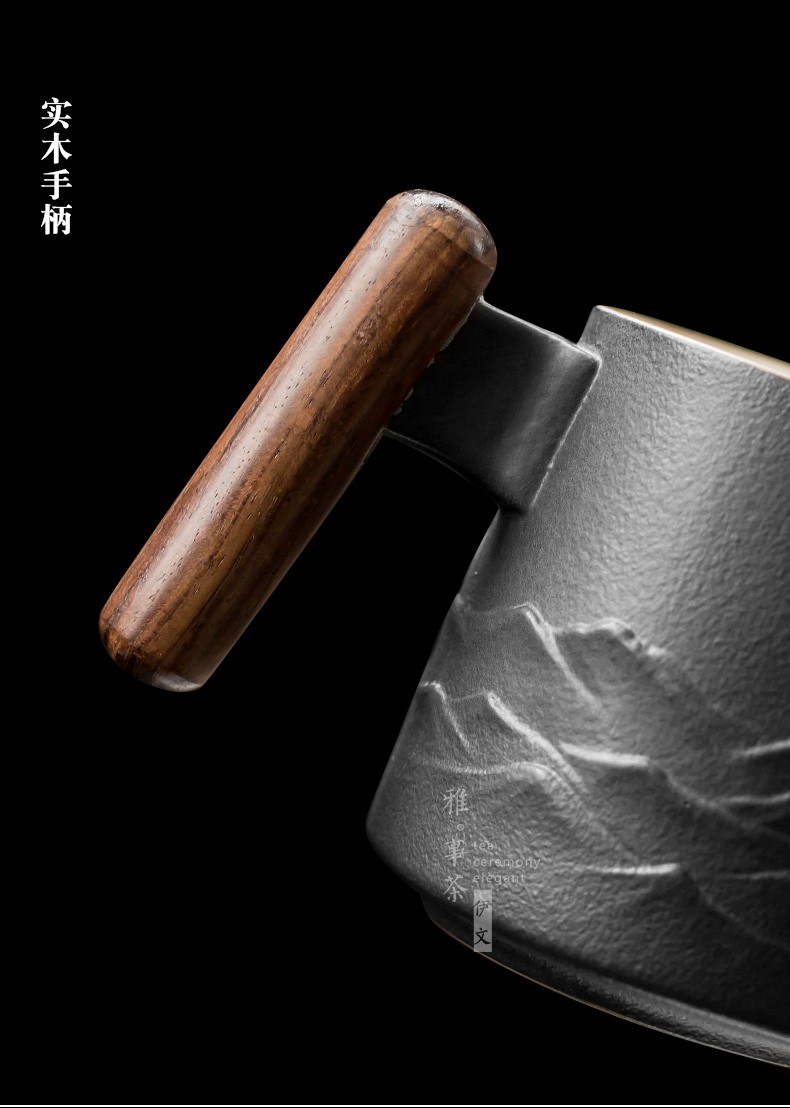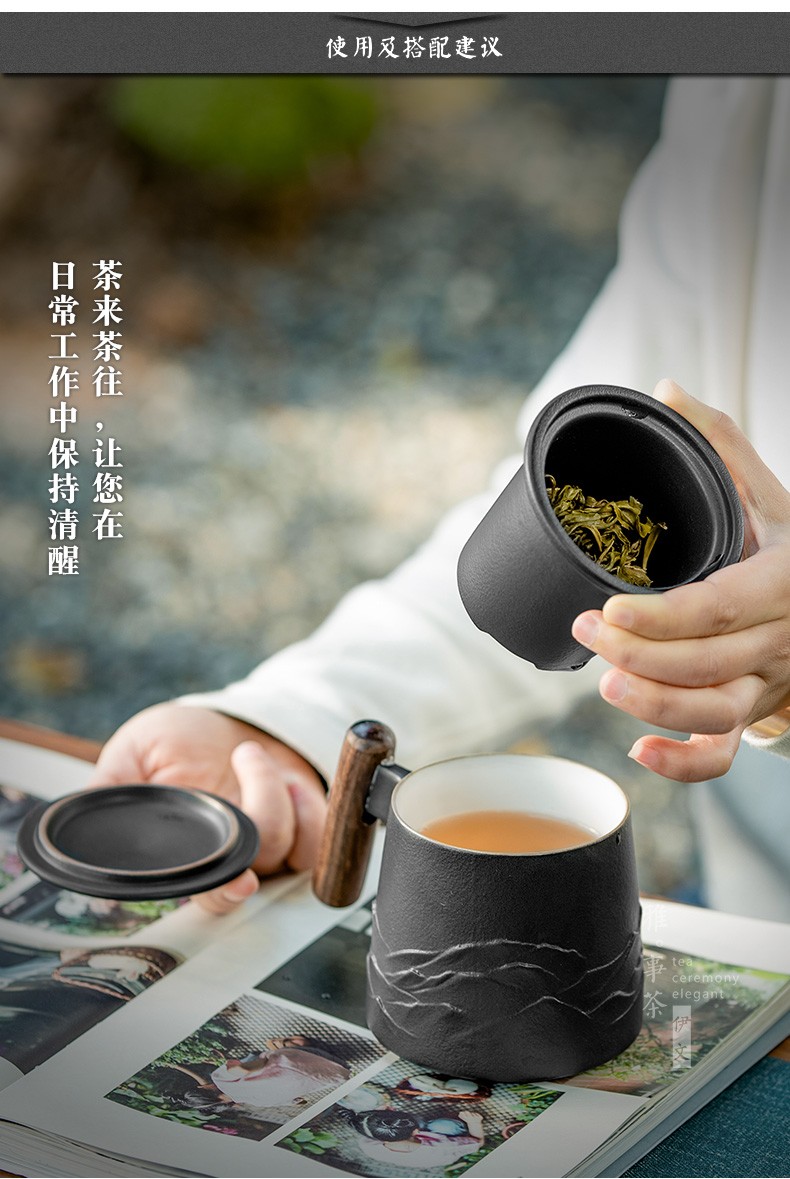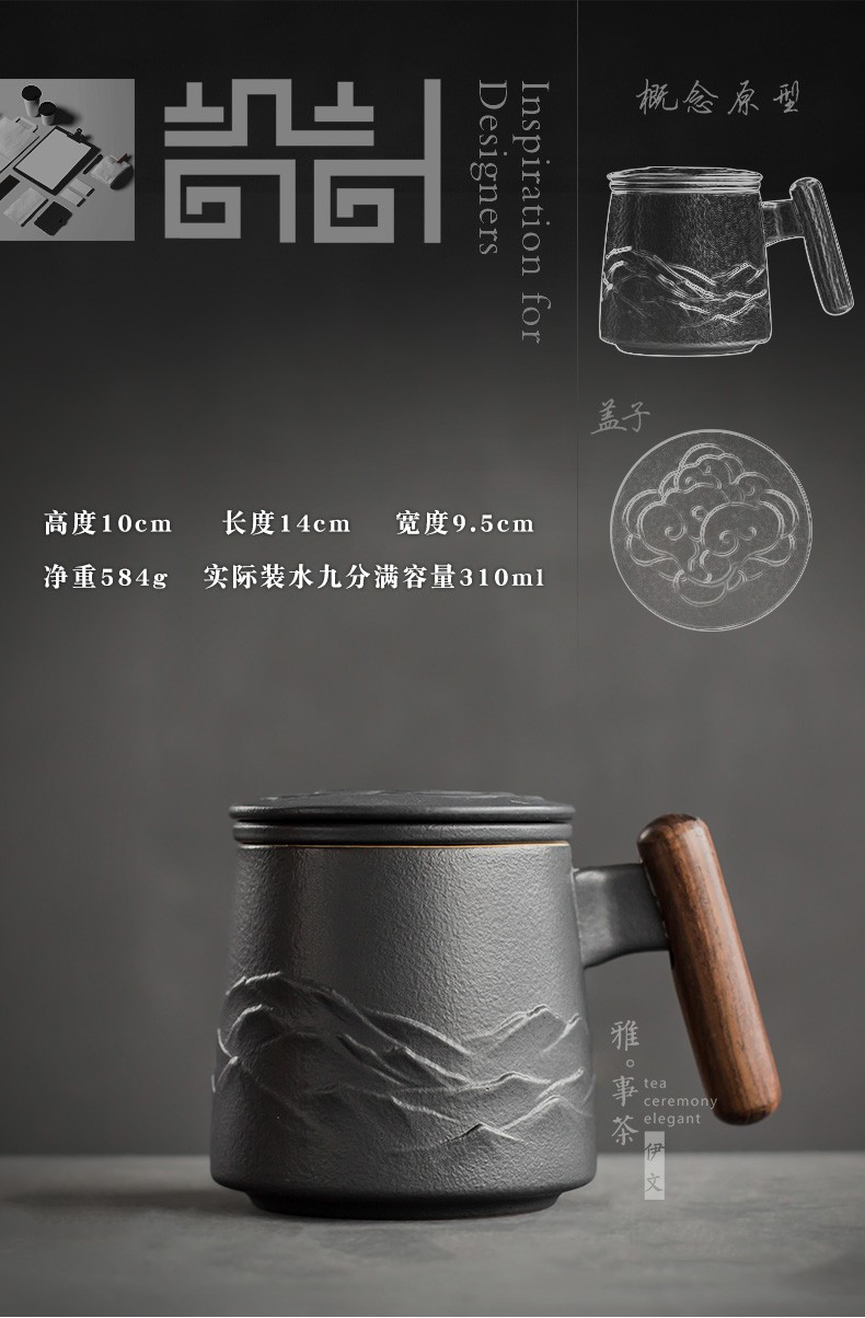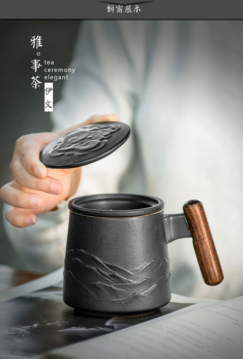 陶瓷过滤茶杯个人办公泡茶杯子家用带盖喝茶水杯茶水分离 山川矮款过滤杯(木柄)S1d