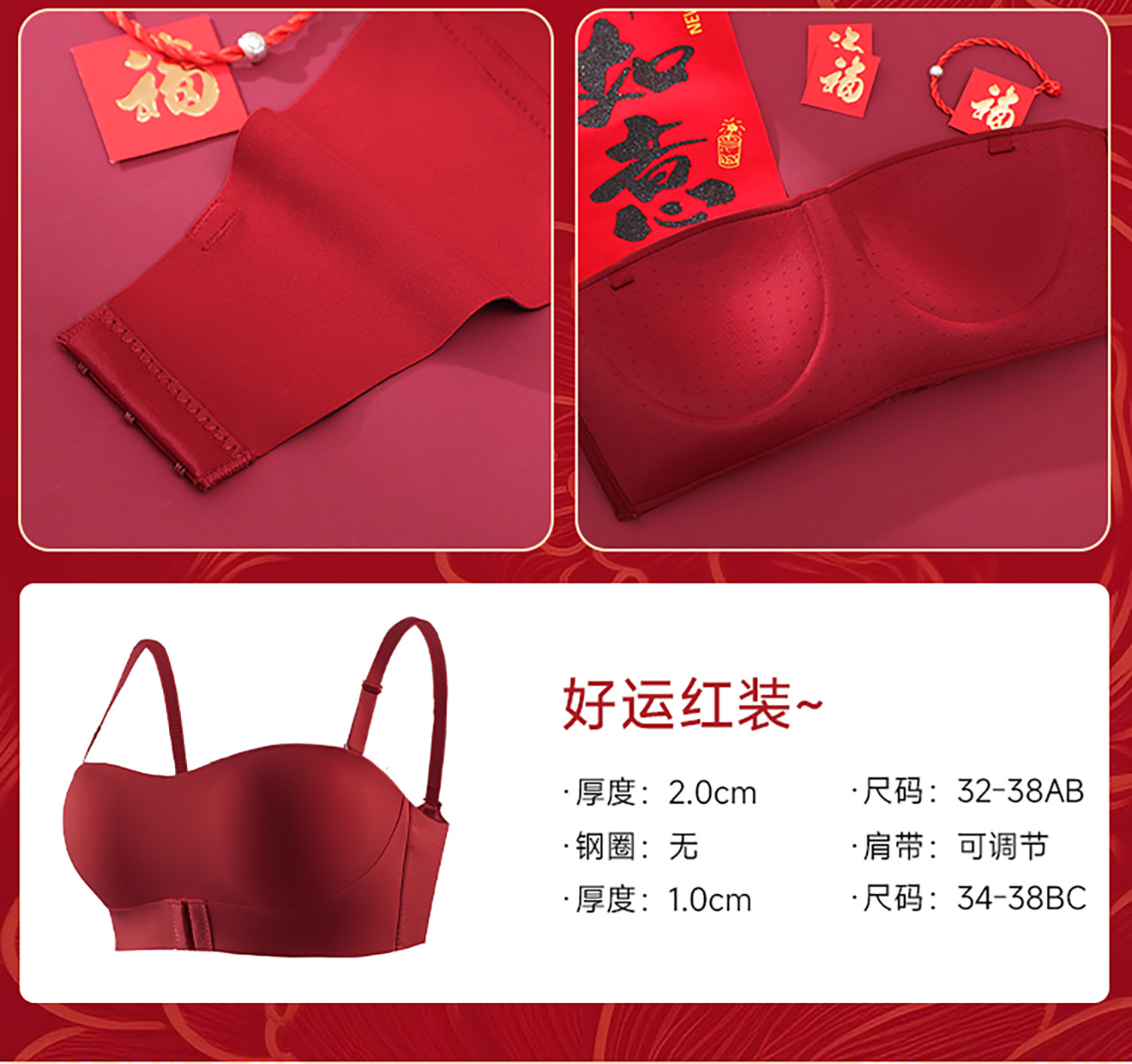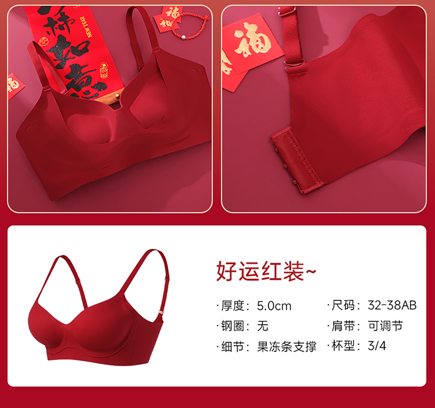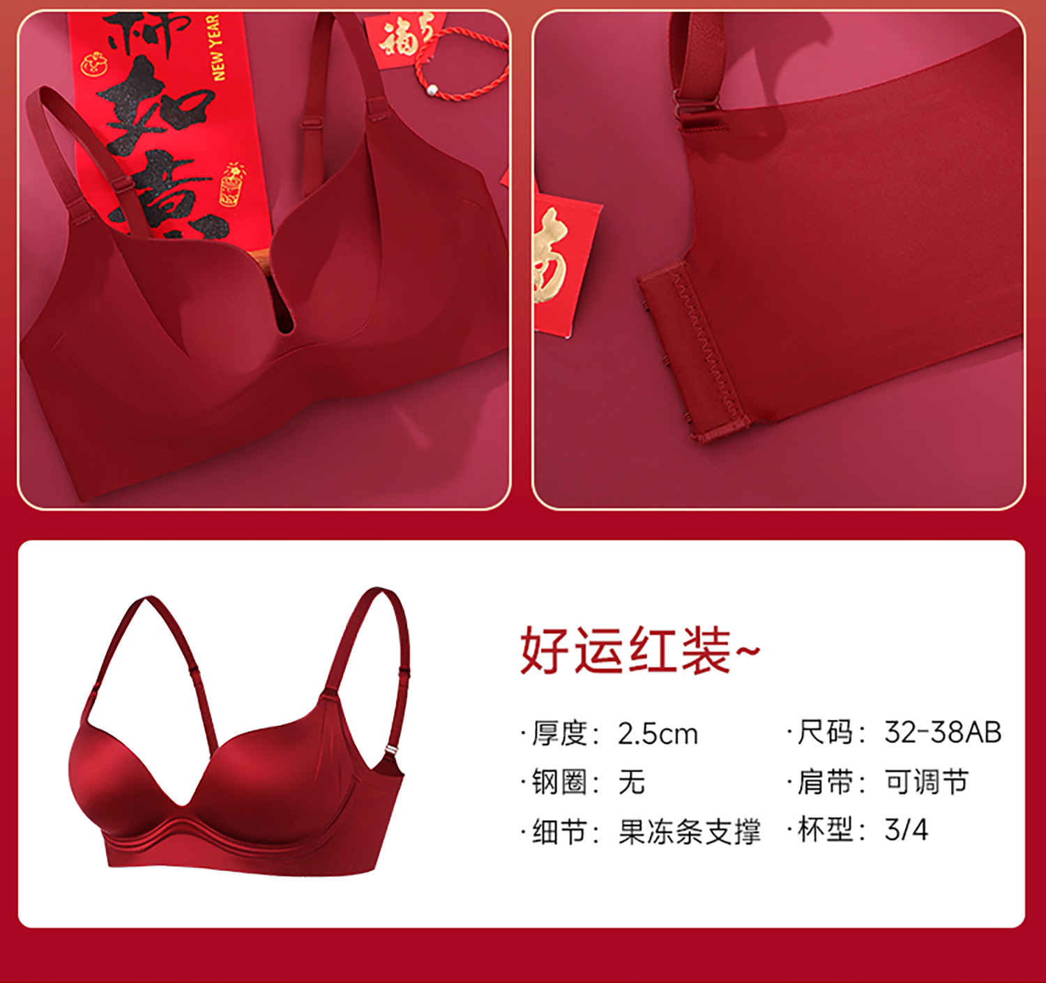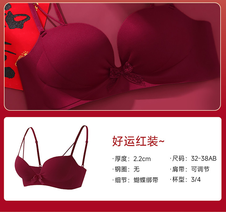 【好运相伴❗️新年穿红色内衣套装】红红火火,福气满满往里聚,越穿越顺!2026马年本命年女小胸聚拢无钢圈结婚性感无痕文胸罩