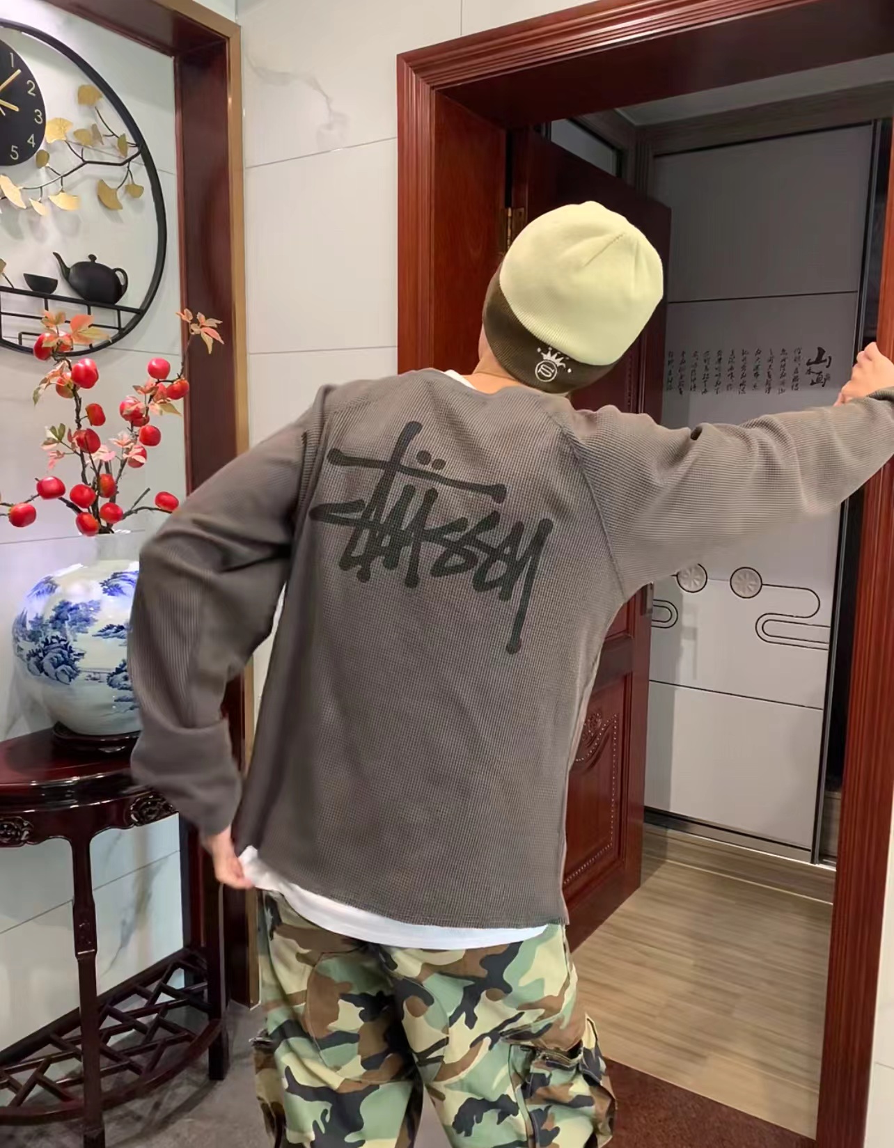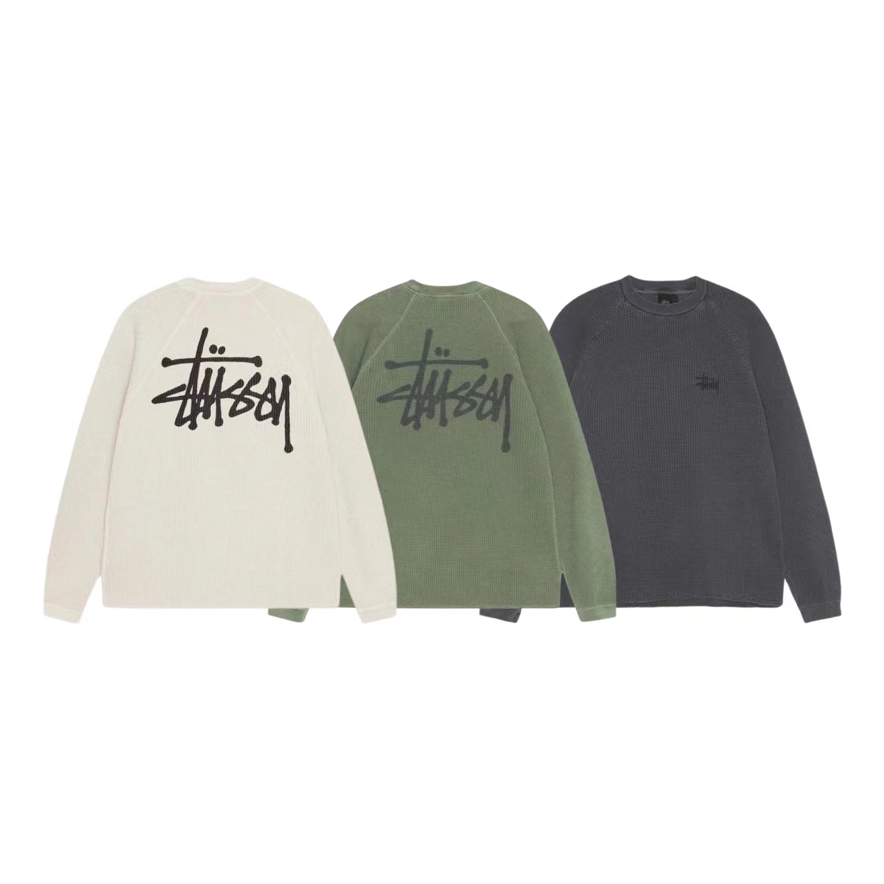 字母logo情侣圆领华夫格长袖 定制纯棉华夫格面料 单件克重高达 240g 手感舒适不扎人