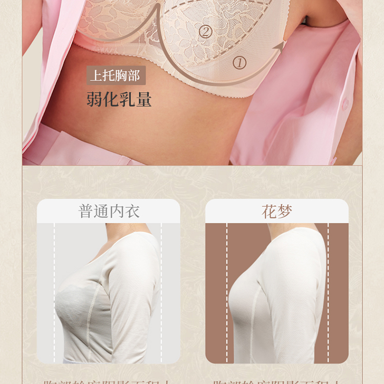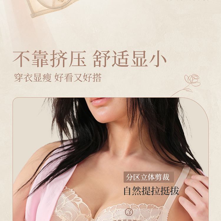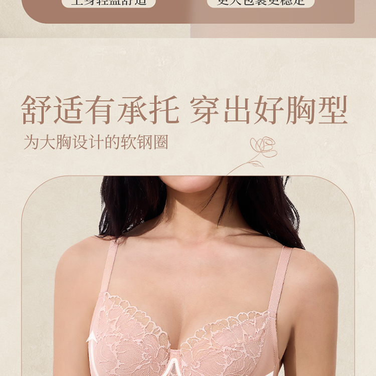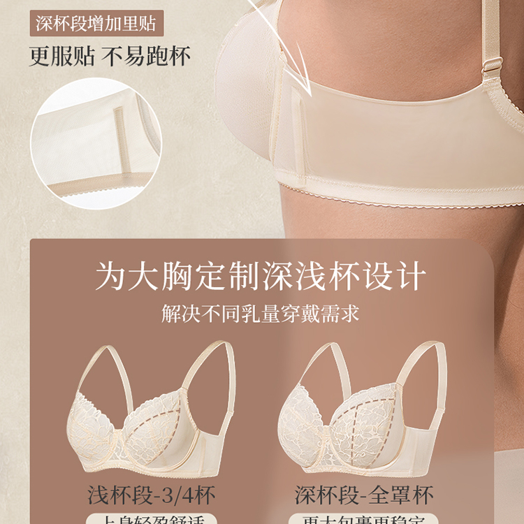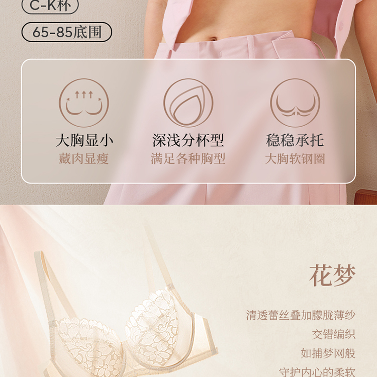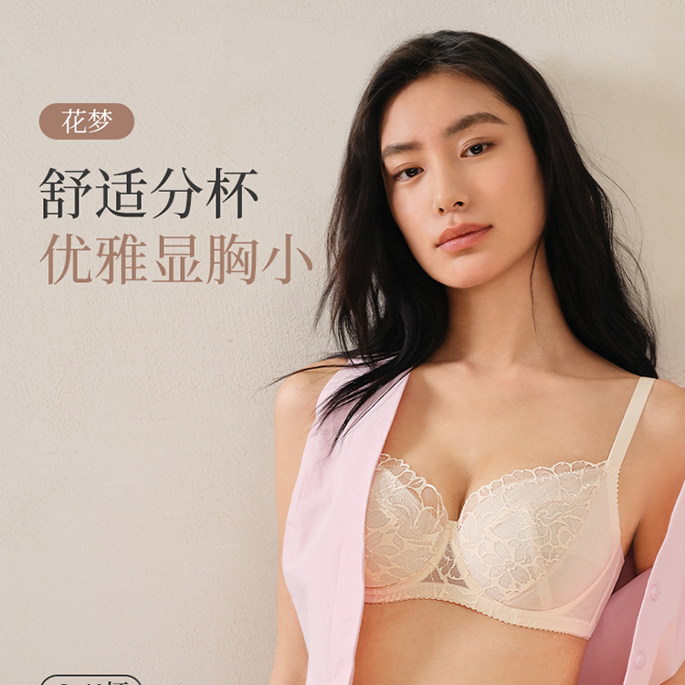 [花梦]大胸显小内衣女夏季超薄法式蕾丝性感文胸胸罩2025新款
