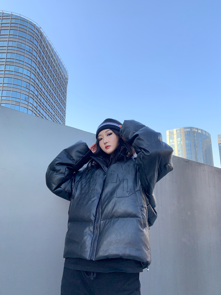双层针织保暖面料,横向的横基螺纹张力织法,上身佩戴自然贴合包裹性