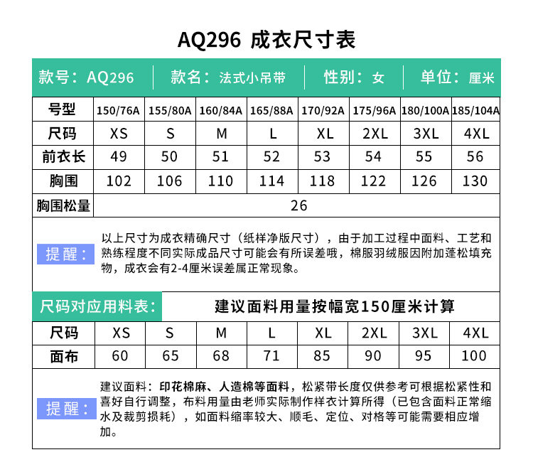裁缝学苑AQ296法式小吊带背心纸样女款夏季短款无袖上衣样板