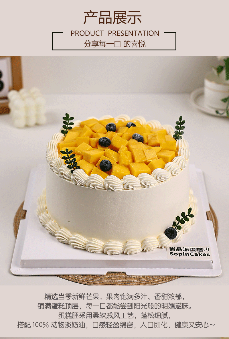 我们坚持当日接单、新鲜现做,拒绝罐头果肉与植物奶油,让每一口都保留食材本真的鲜活清甜。生活需要一点甜,我们的蛋糕不只是一份甜品,更是传递快乐的仪式感,为你带来视觉与味蕾的双重满足~