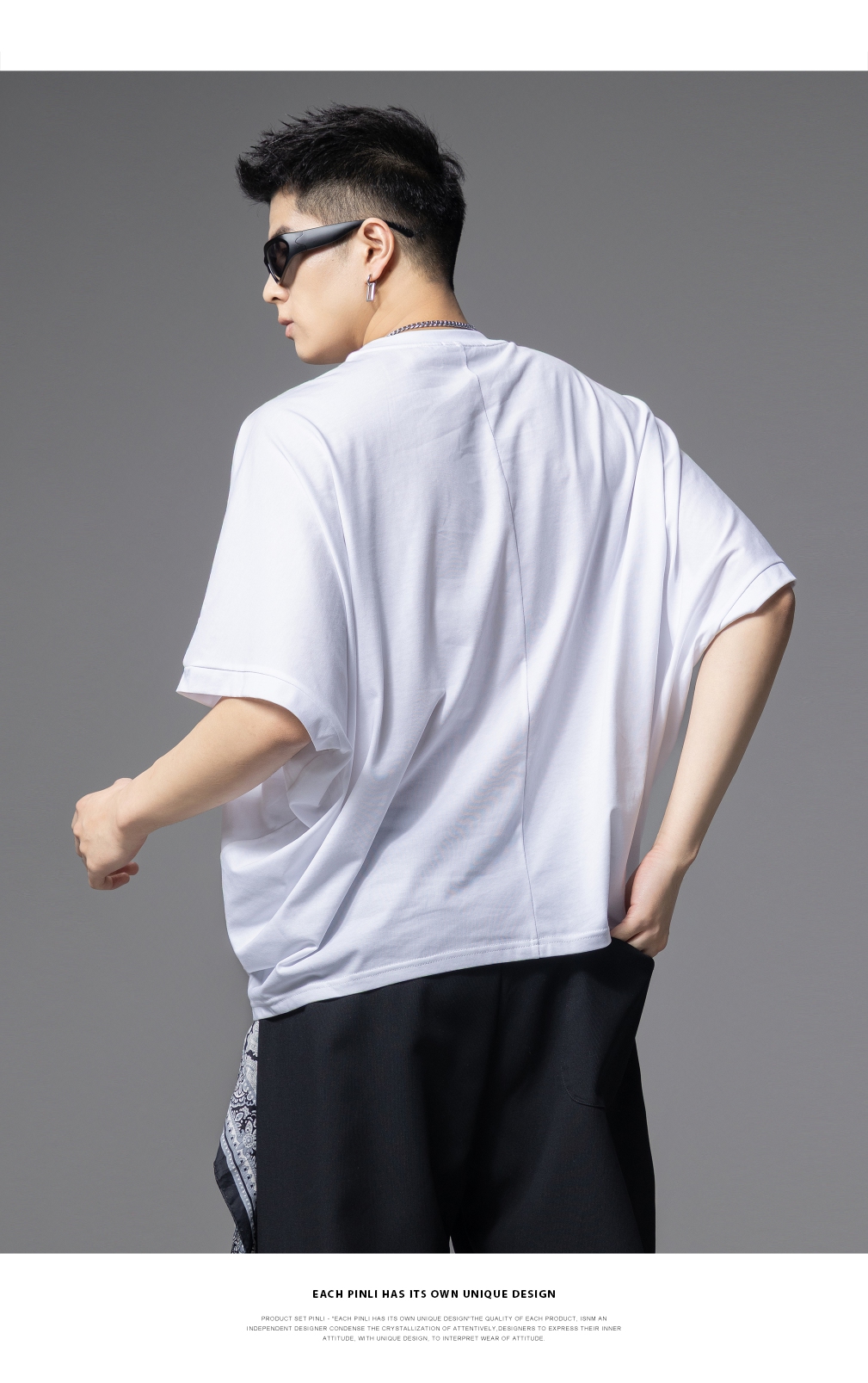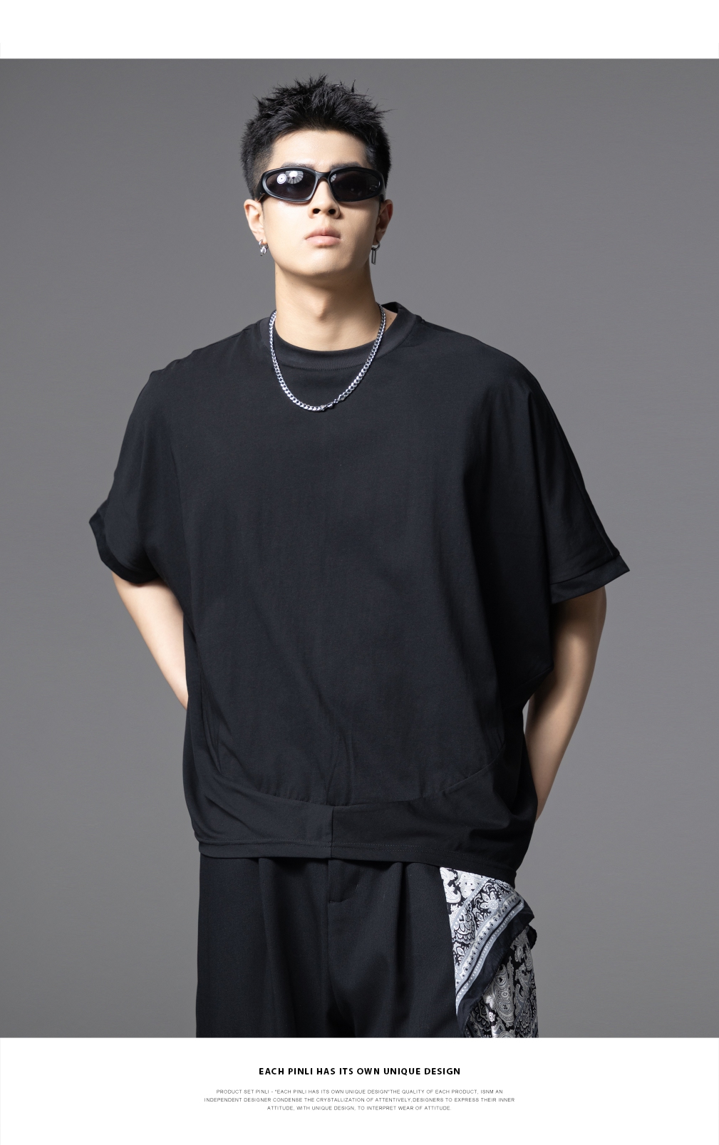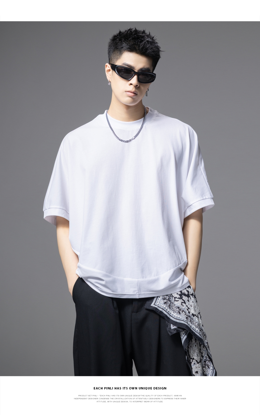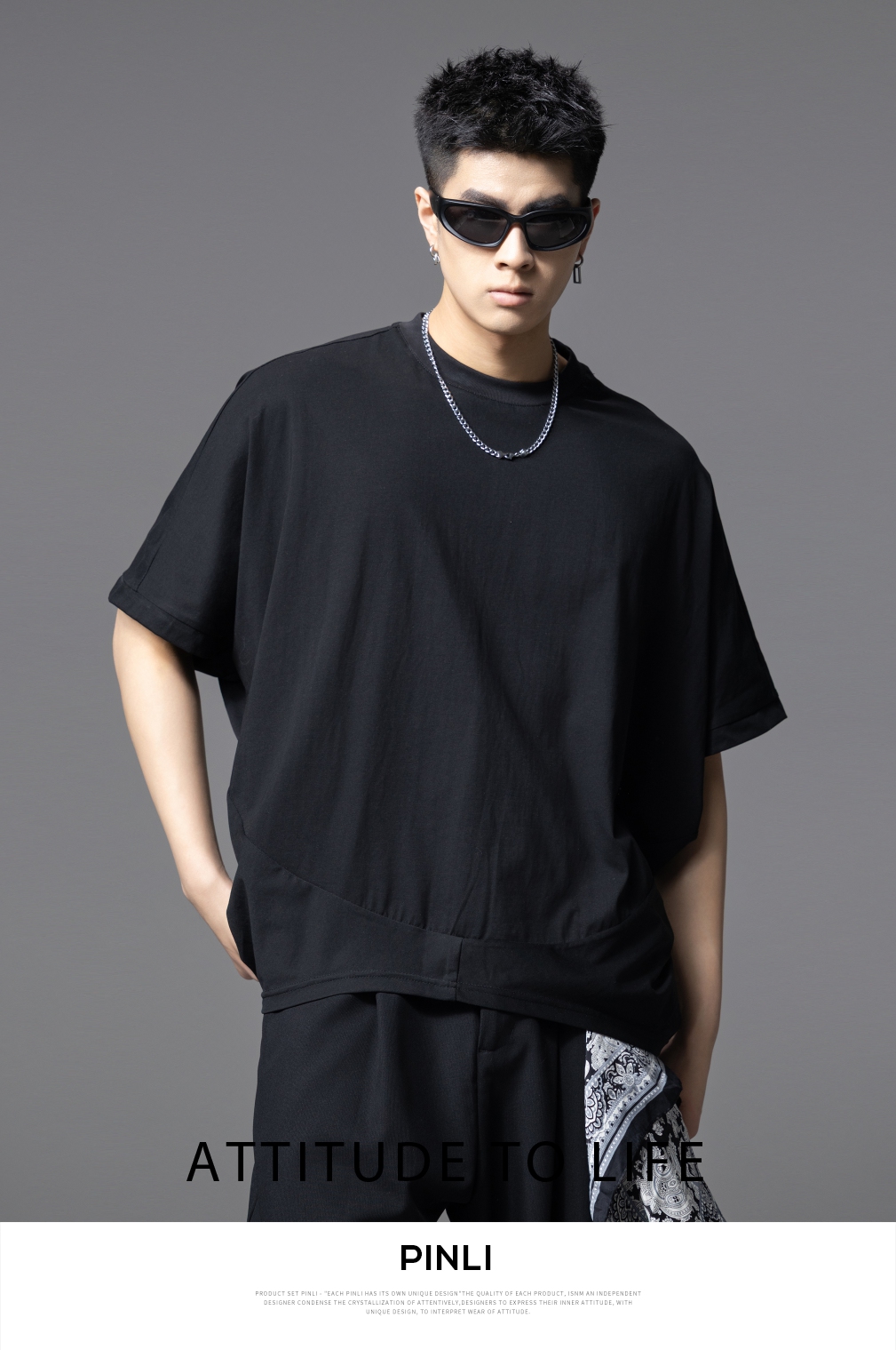 PINLI品立2025夏季新款拼接宽松廓形短袖T恤男士潮流纯色百搭上衣B252111030