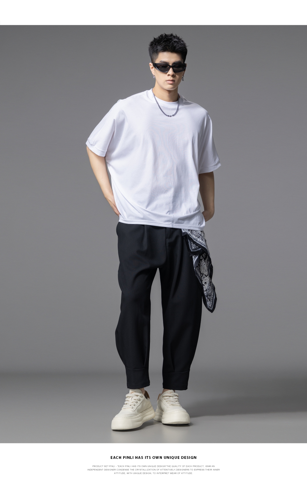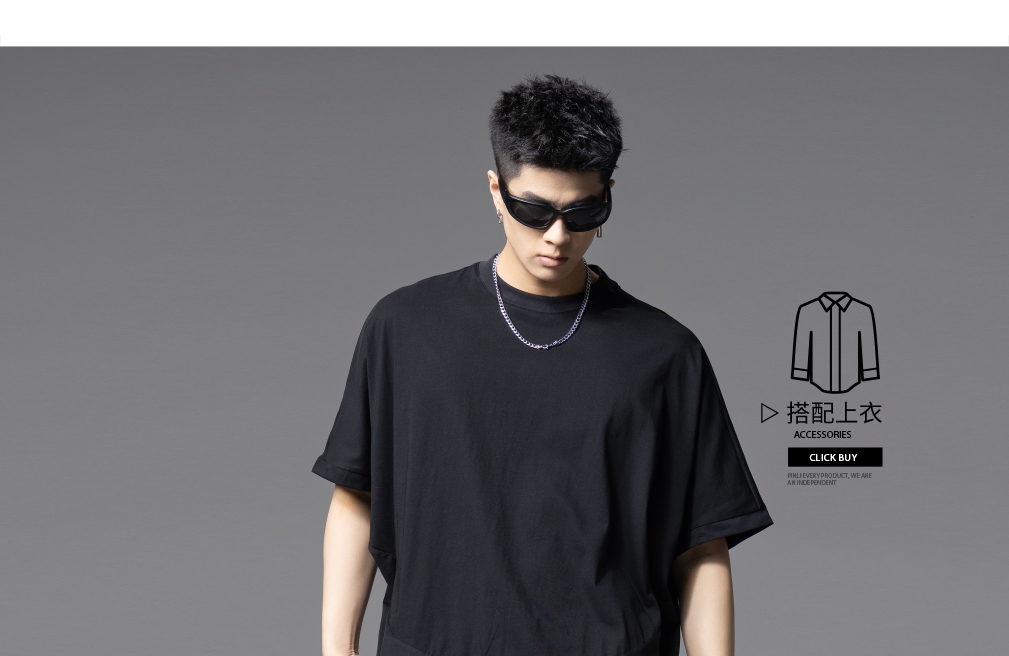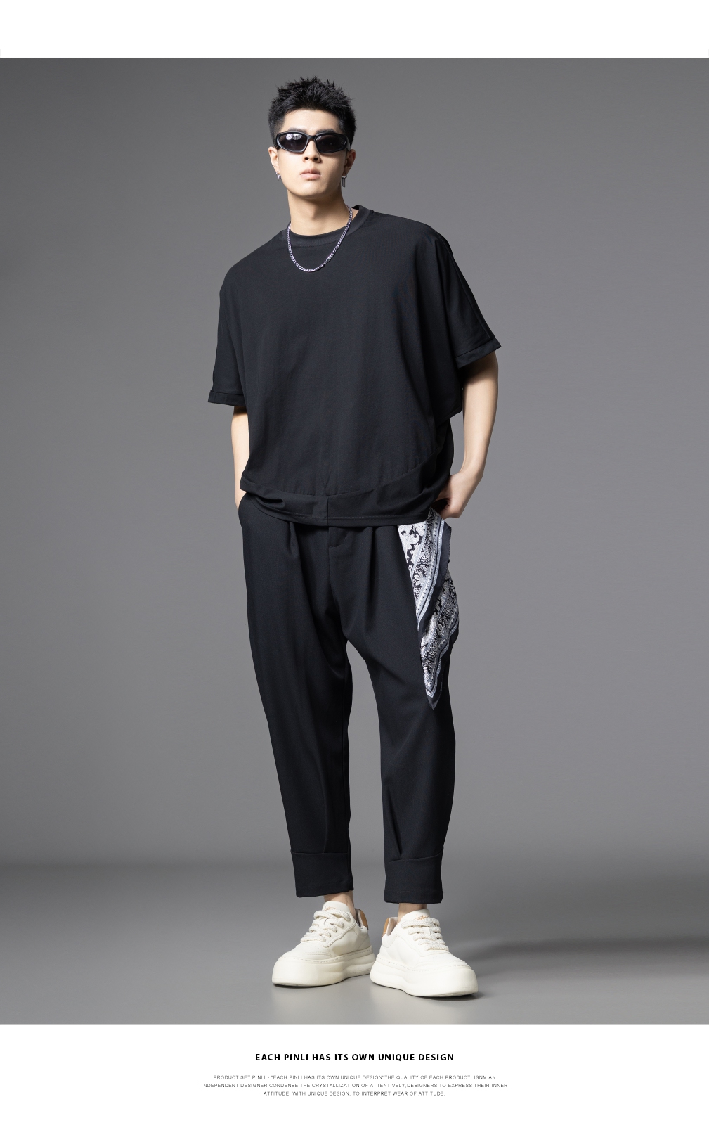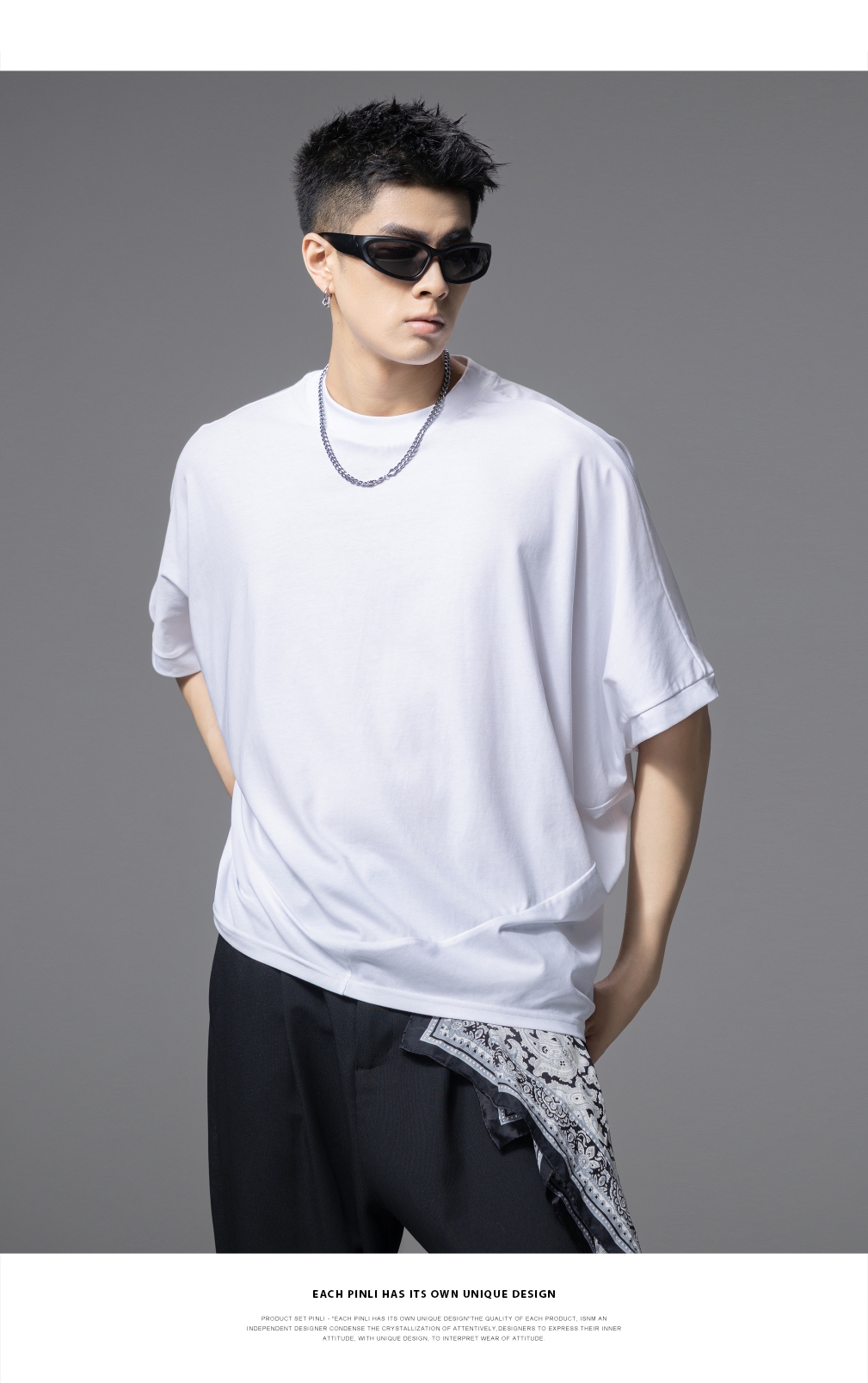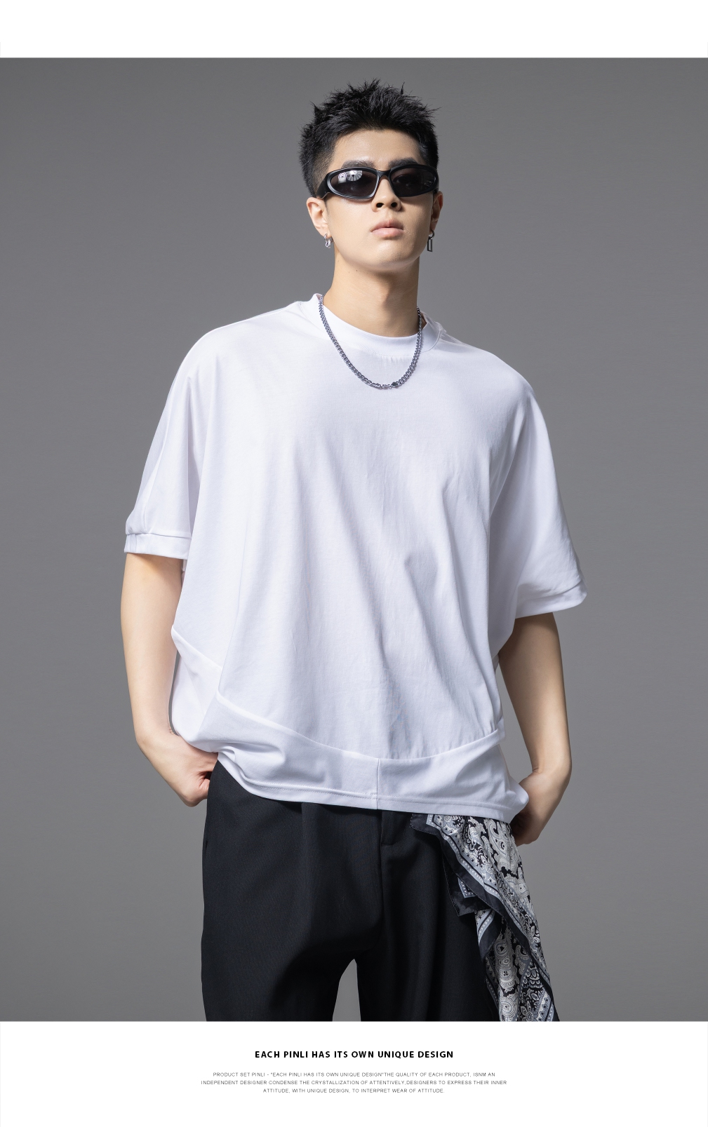 PINLI品立2025夏季新款拼接宽松廓形短袖T恤男士潮流纯色百搭上衣B252111030