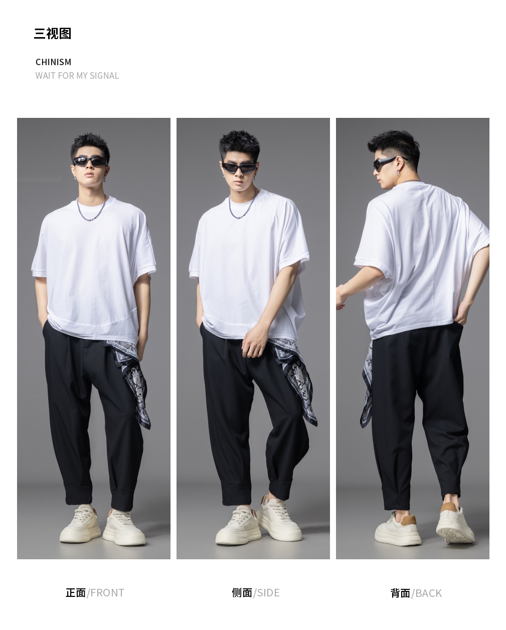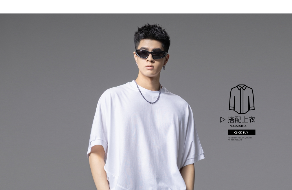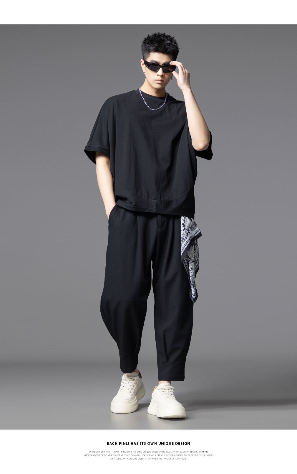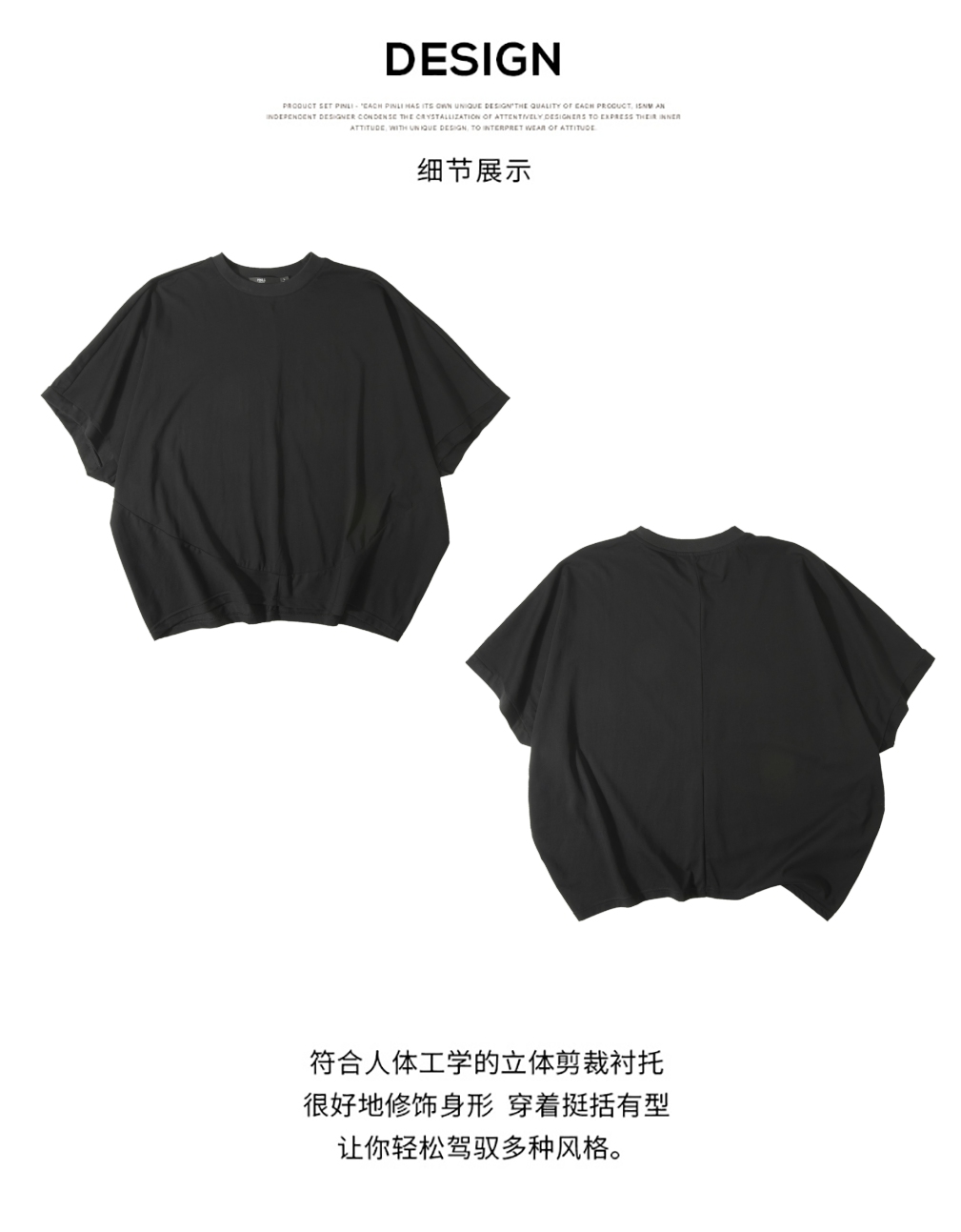 PINLI品立2025夏季新款拼接宽松廓形短袖T恤男士潮流纯色百搭上衣B252111030