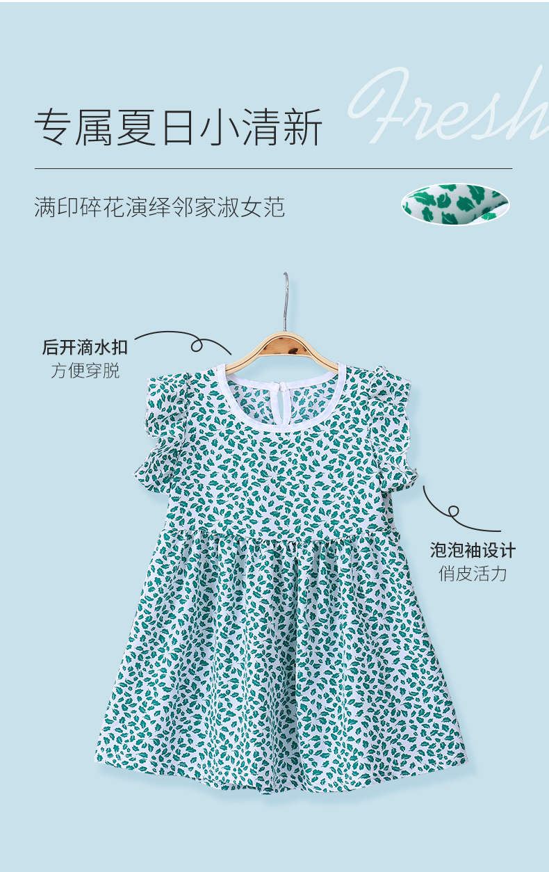 贝贝怡童装女童连衣裙公主裙短袖夏天儿童碎花裙子新款夏装