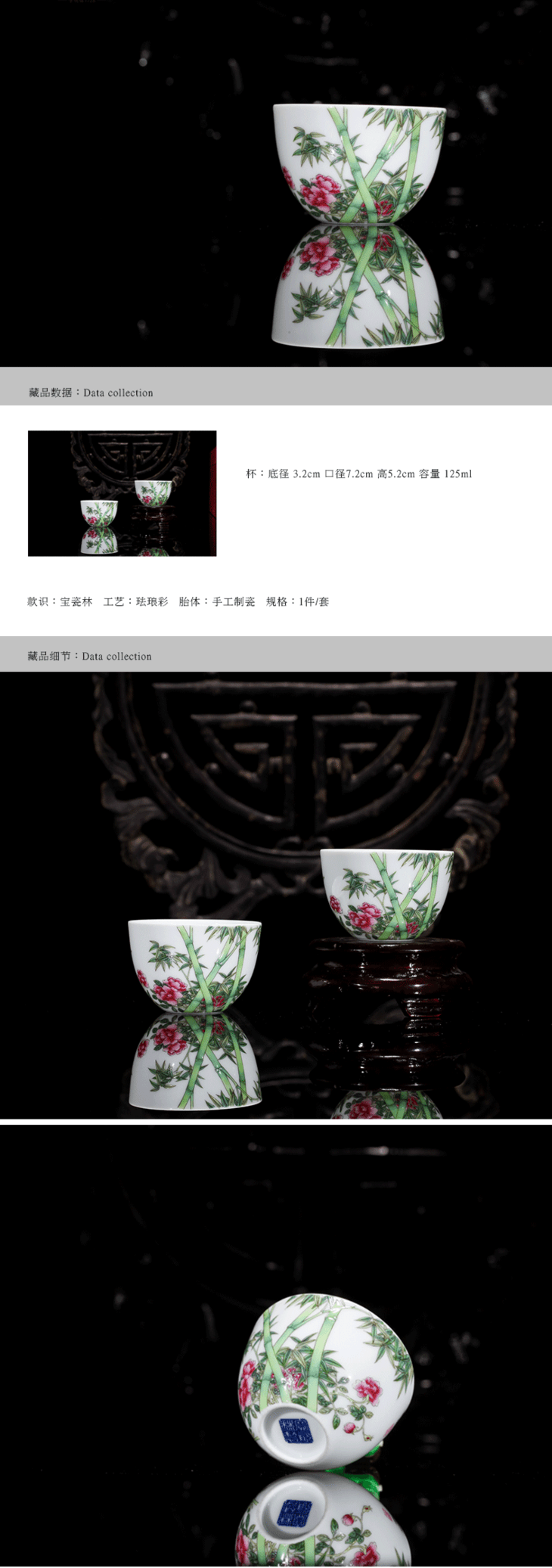 珐琅彩月季绿竹诗意杯