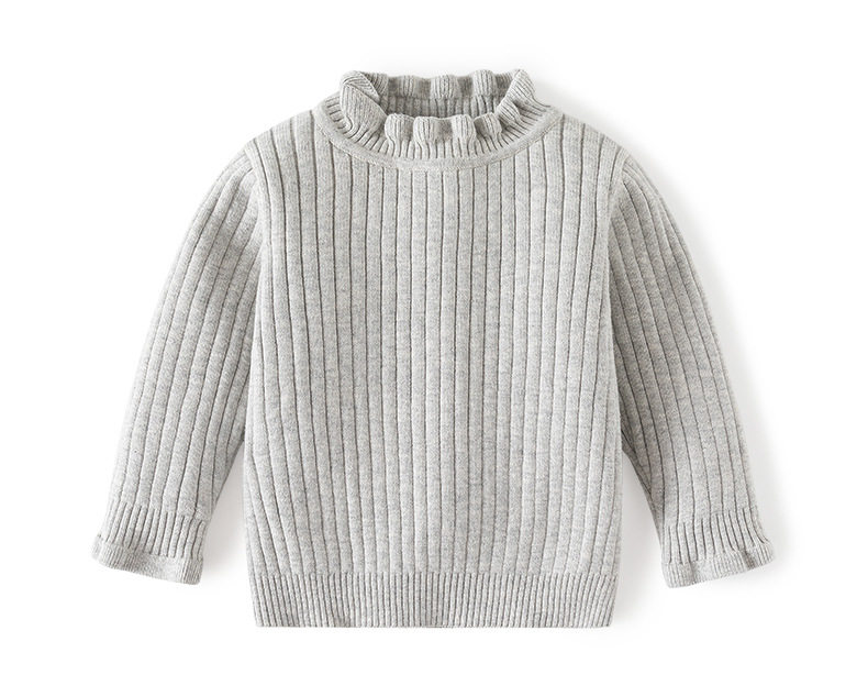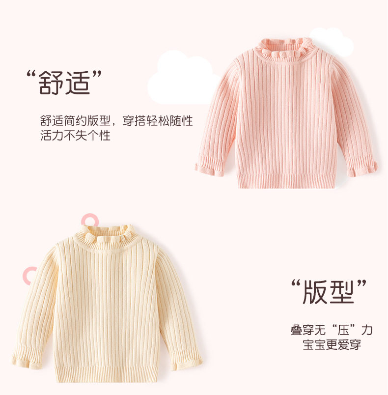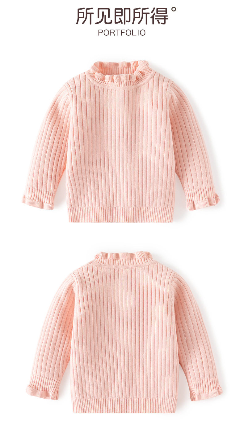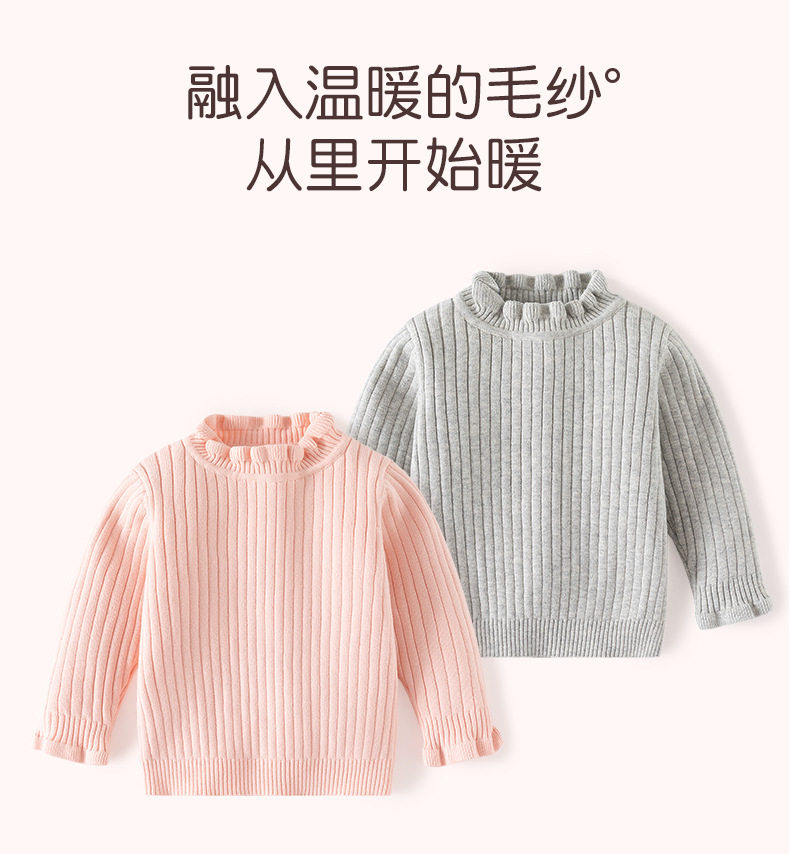 花边领小女孩套头毛衣A类针织高领女童毛衣秋冬柔软女童打底毛衣