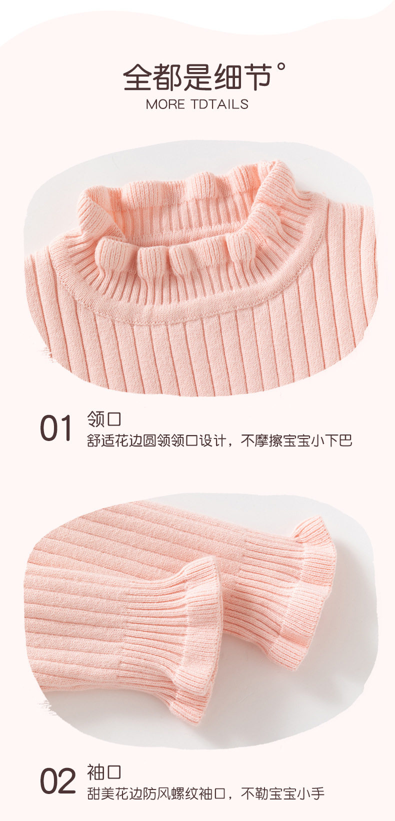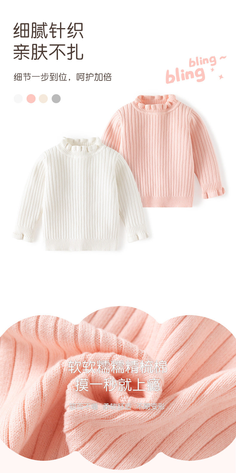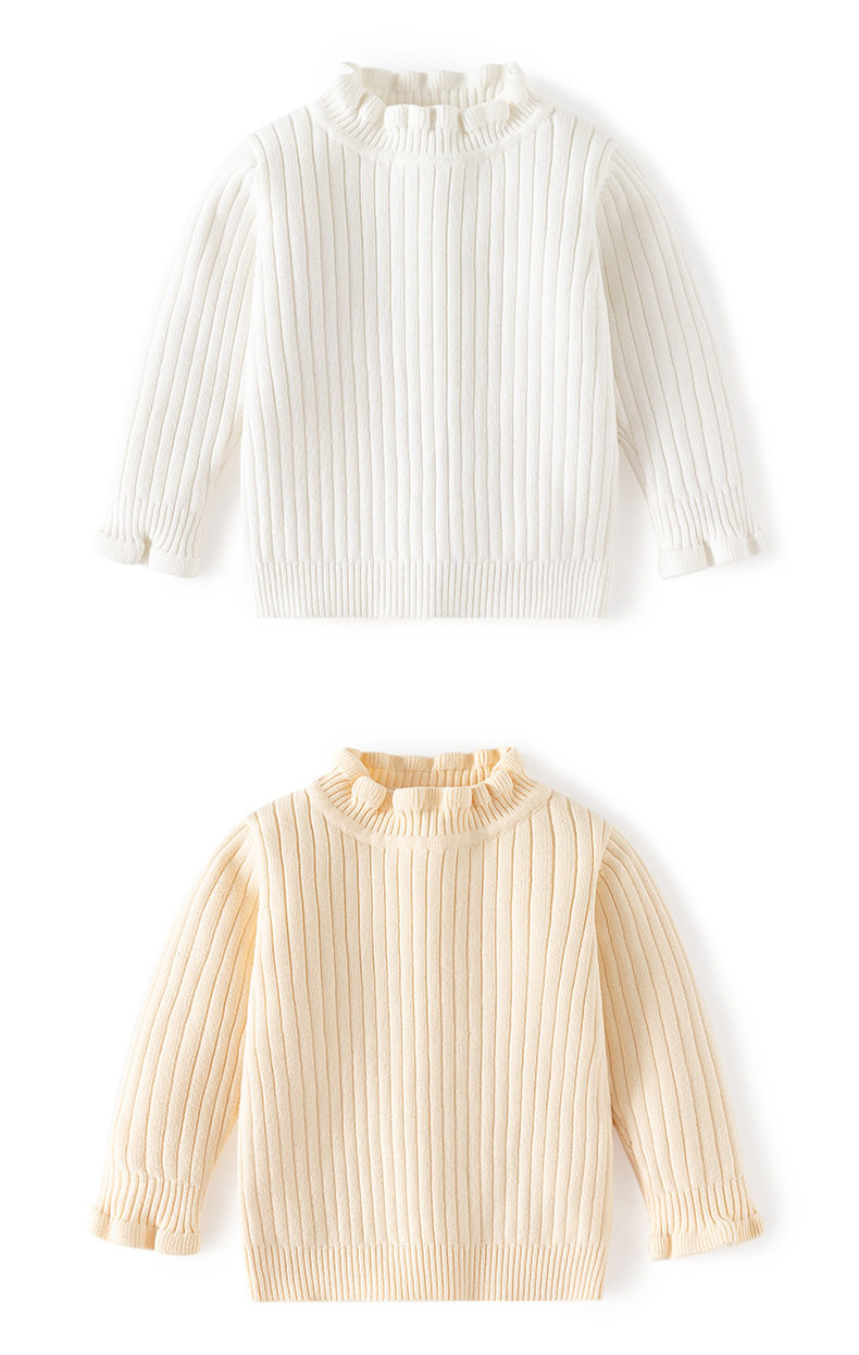 花边领小女孩套头毛衣A类针织高领女童毛衣秋冬柔软女童打底毛衣