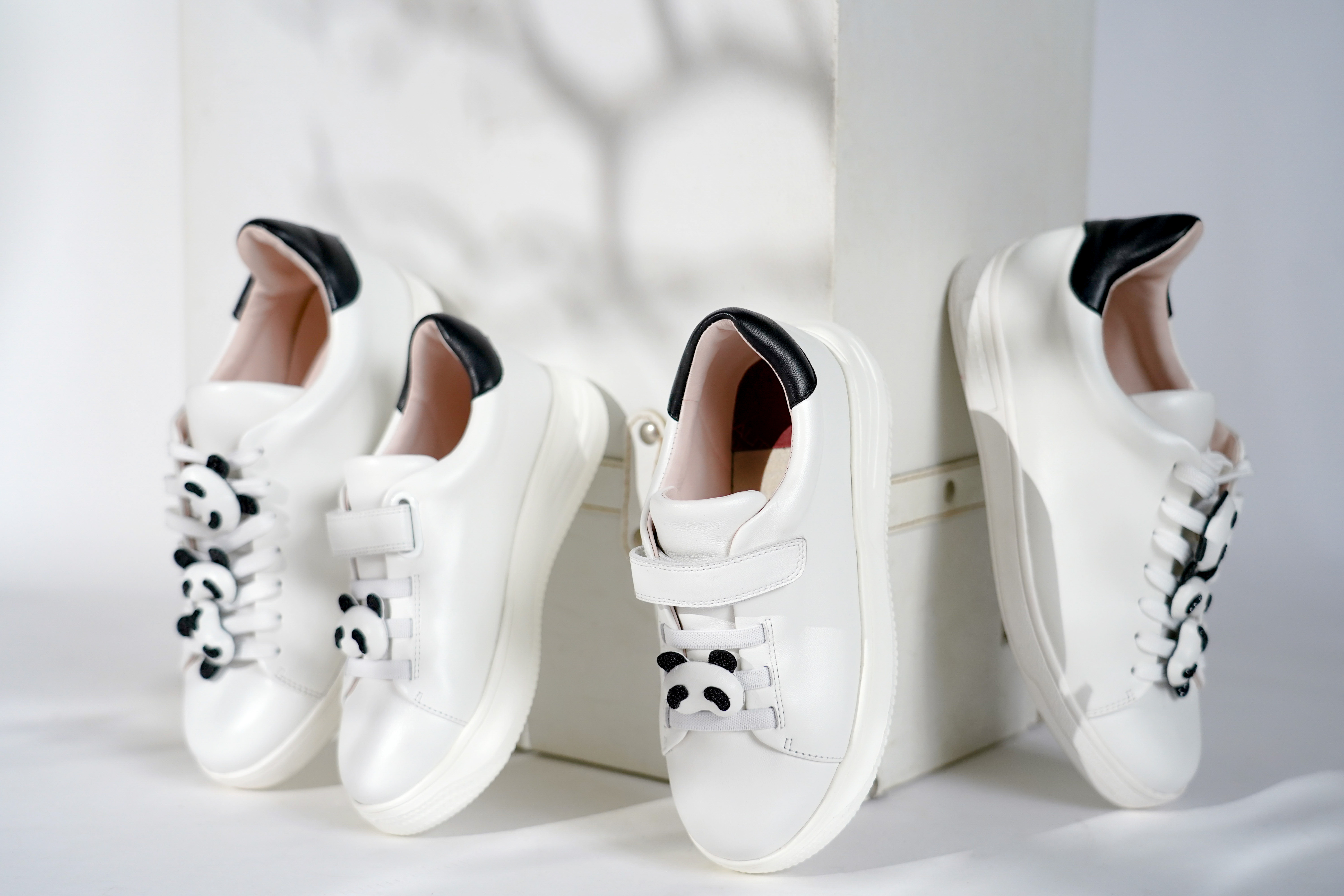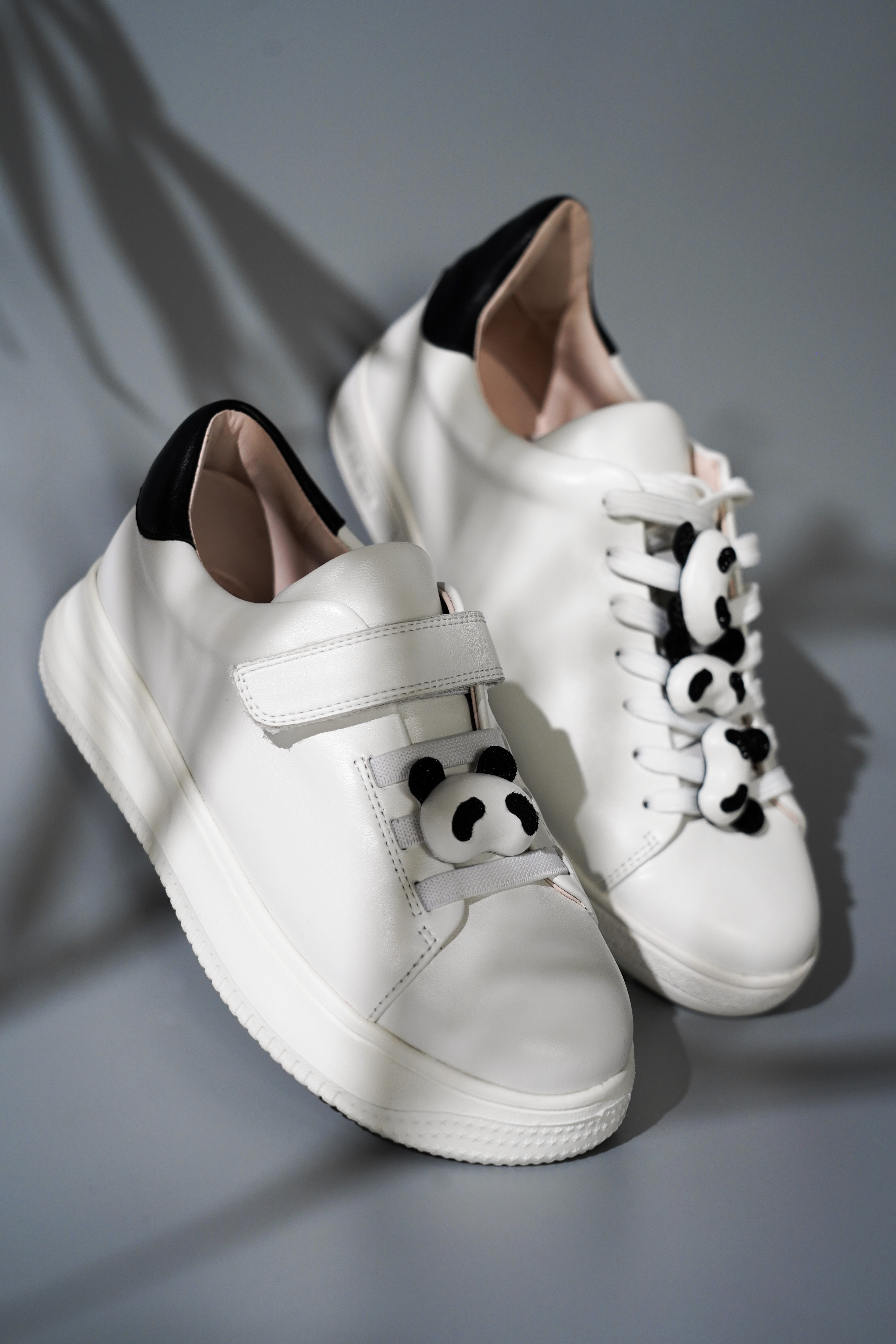 产品介绍:进口舒适的羊纳帕面料,与憨态可掬的熊猫头设计,搭配超轻的白色大底,孩子穿着个性创意又舒适。