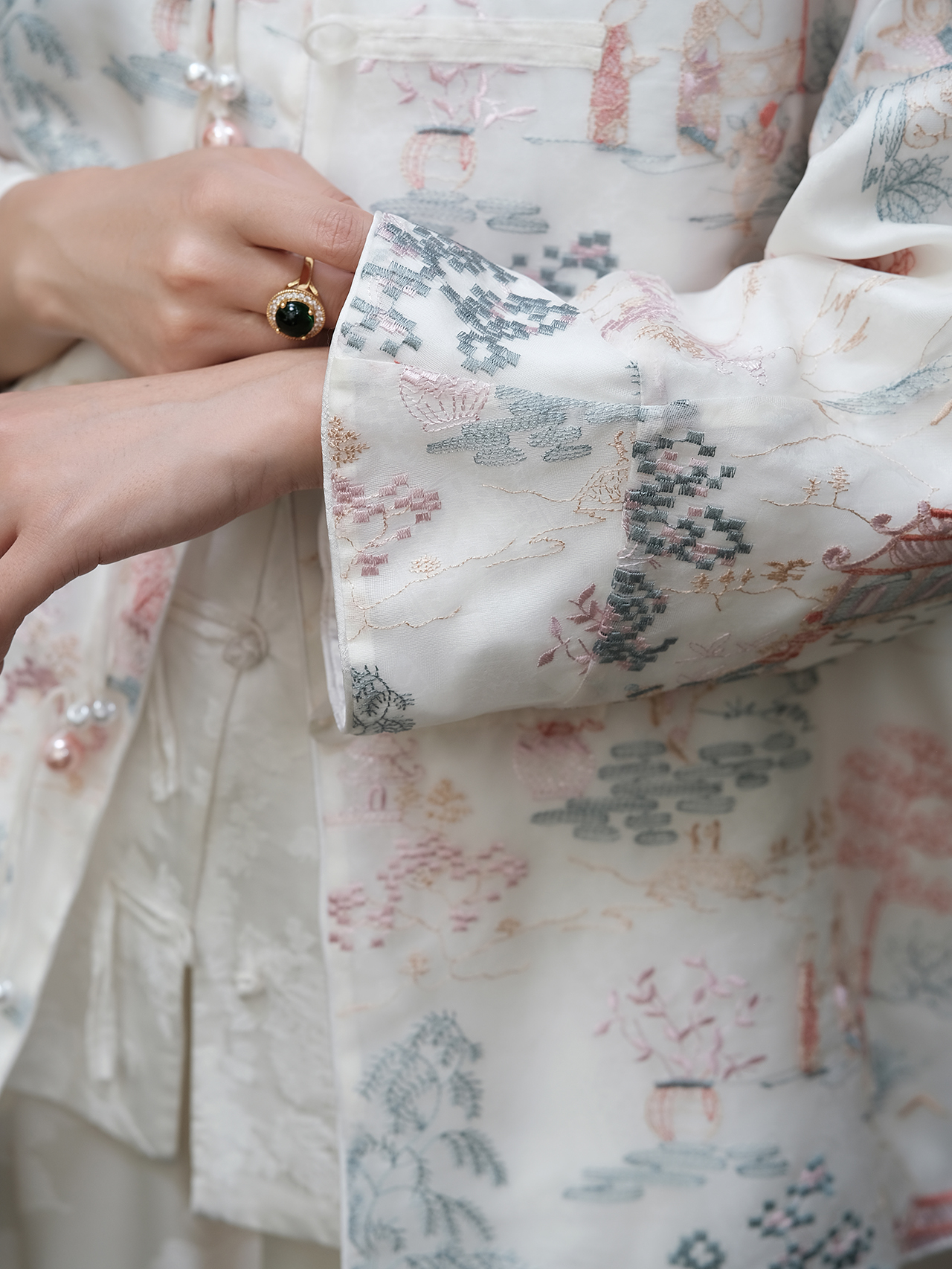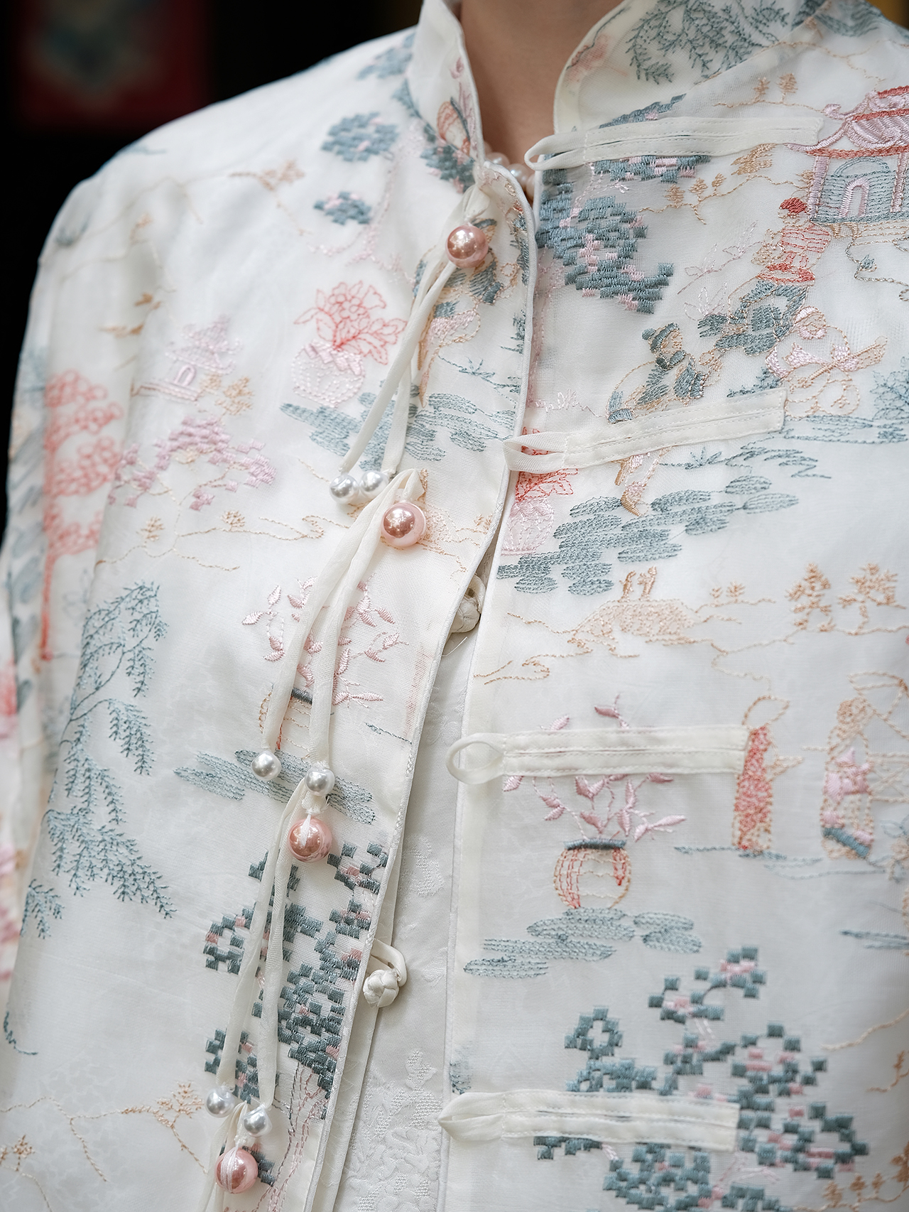 盛唐牡丹 | 时髦玉扣花香引蝶对襟女衬衫