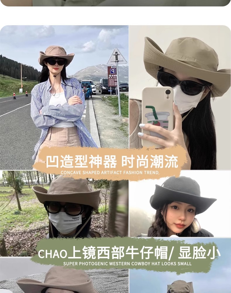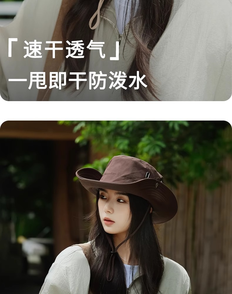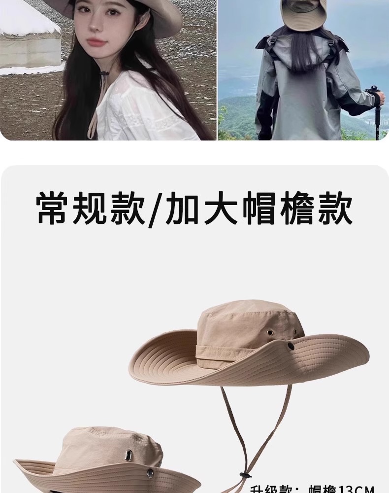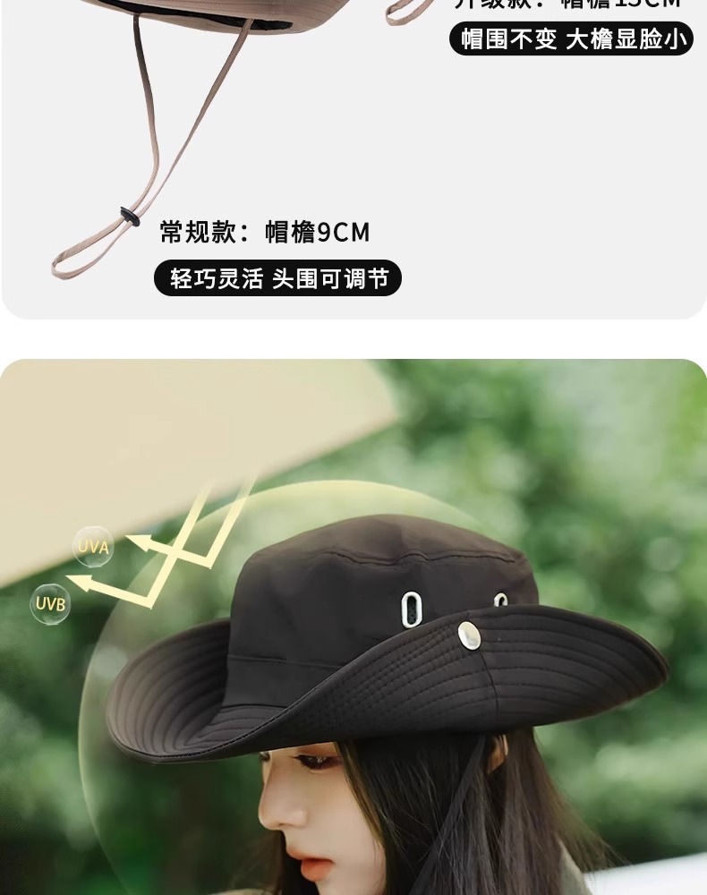 【户外刚需❗️西部牛仔防晒帽】全脸防晒环绕式大帽檐,轻薄透气,舒适不闷头,防晒太阳帽女户外男遮阳大帽檐登山帽子徒步L