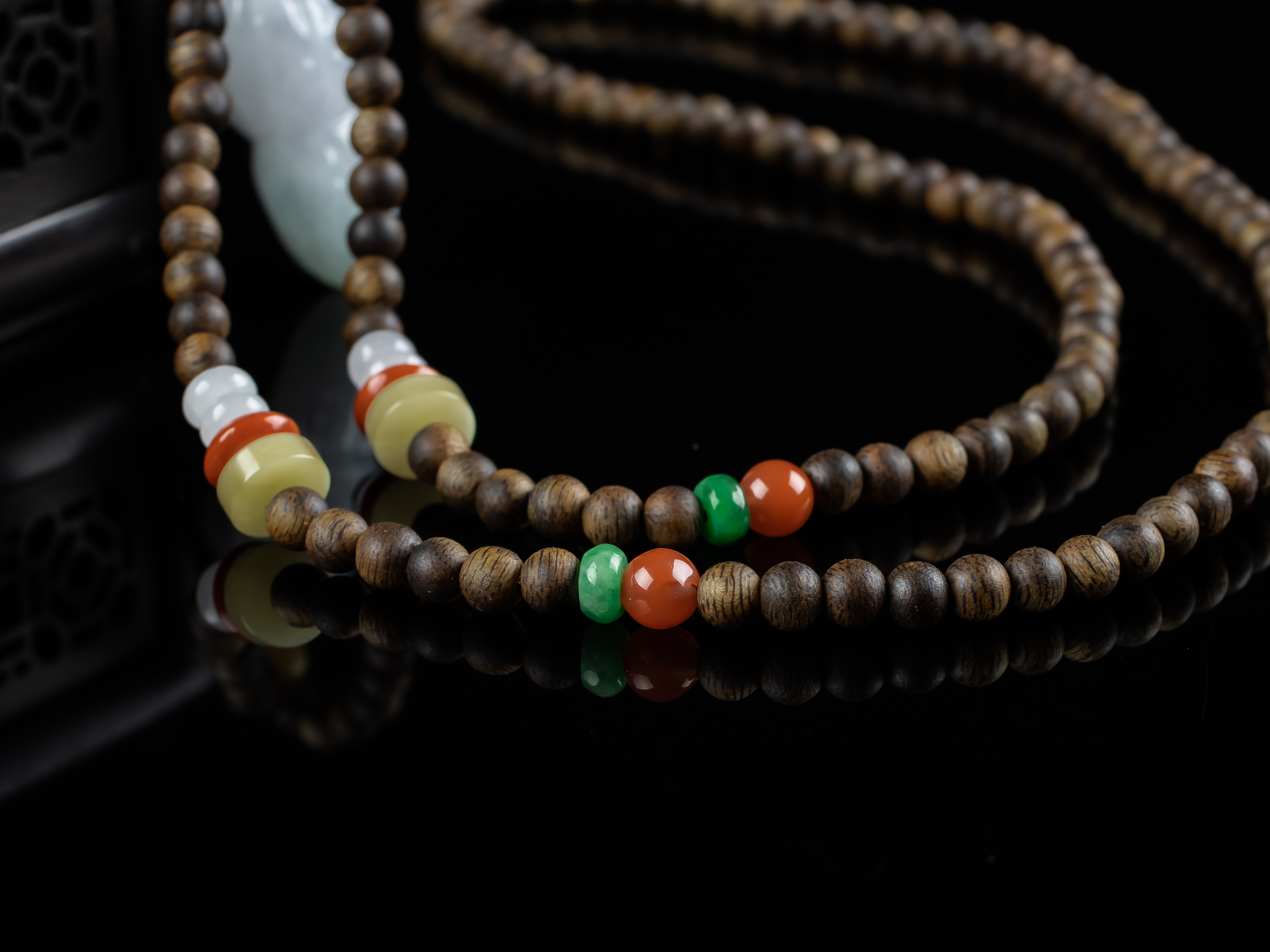 原创沉香+翡翠花生挂件,天然沉香圆珠4.6mm,原色原味,香味清甜自然,配珠:翡翠、南红、蜜蜡。细糯底的翡翠花生,32.2*15.5*13mm,立体雕刻,饱满、润泽,多彩配珠款式搭配,寓意开花结果,好事发(花)生!