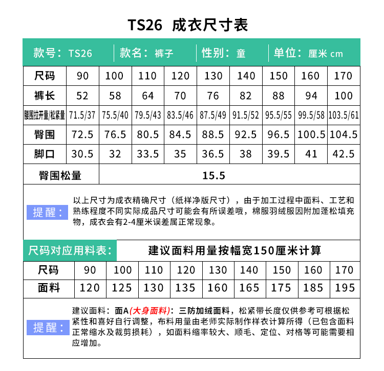 裁缝学苑TS26休闲裤三防直筒裤户外防风童装软壳长裤纸样儿童样板