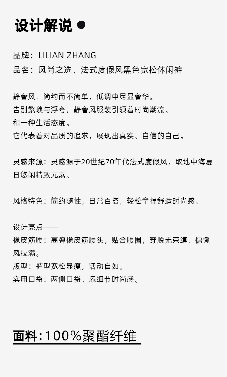 E-“定制”——静奢风、都市摩登——法式度假风黑色宽松直筒裤 2504011