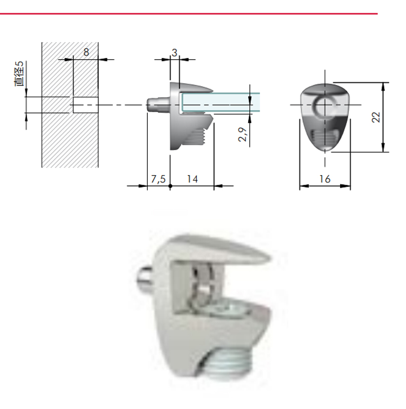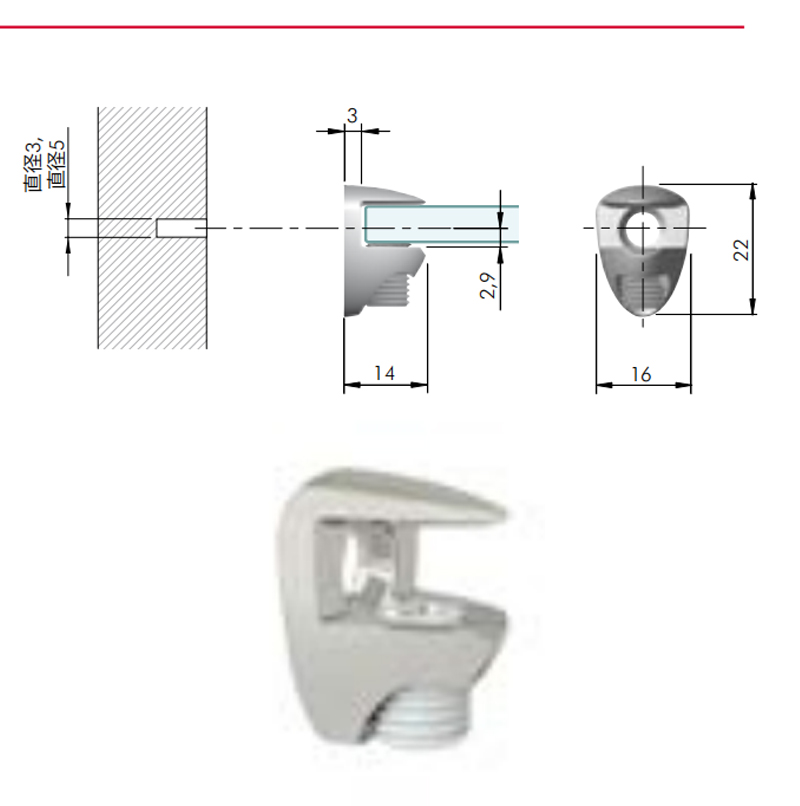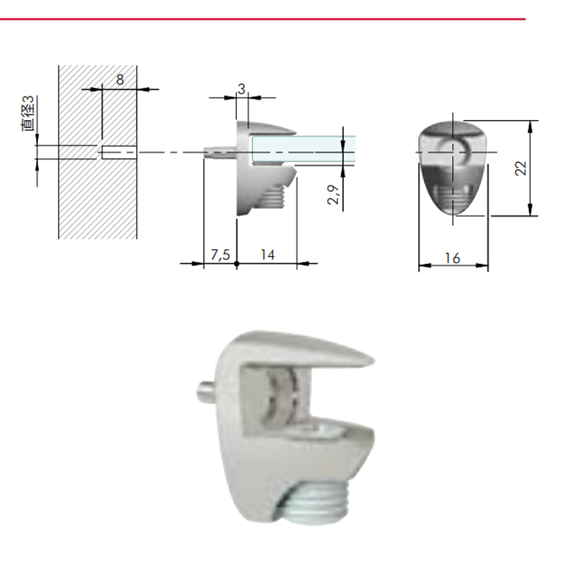 【眼镜蛇】 一体式 固定 玻璃层板托
