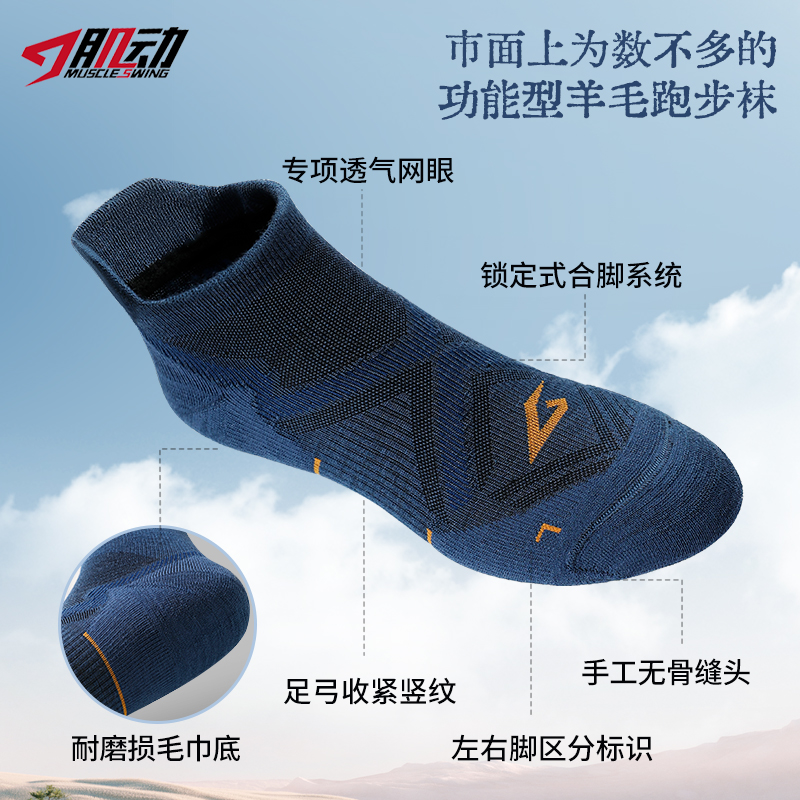 🔥618短筒肌动美利奴羊毛春夏秋越野跑步袜专业薄款马拉松袜毛巾底户外登山徒步羊毛袜