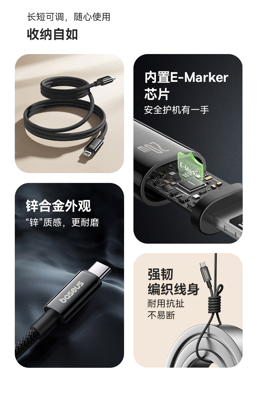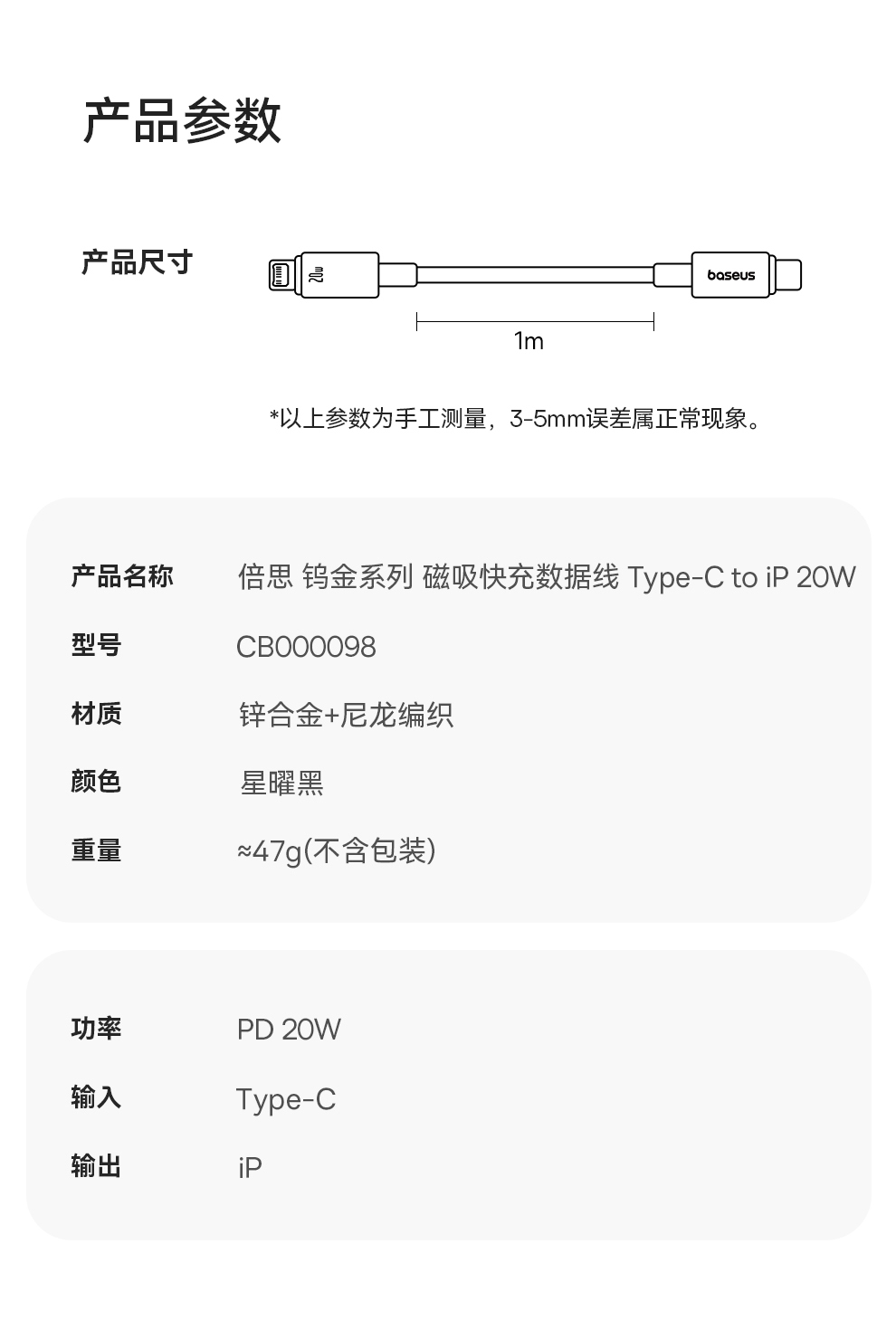 倍思 钨金系列 磁吸快充数据线 Type-C to iP 20W