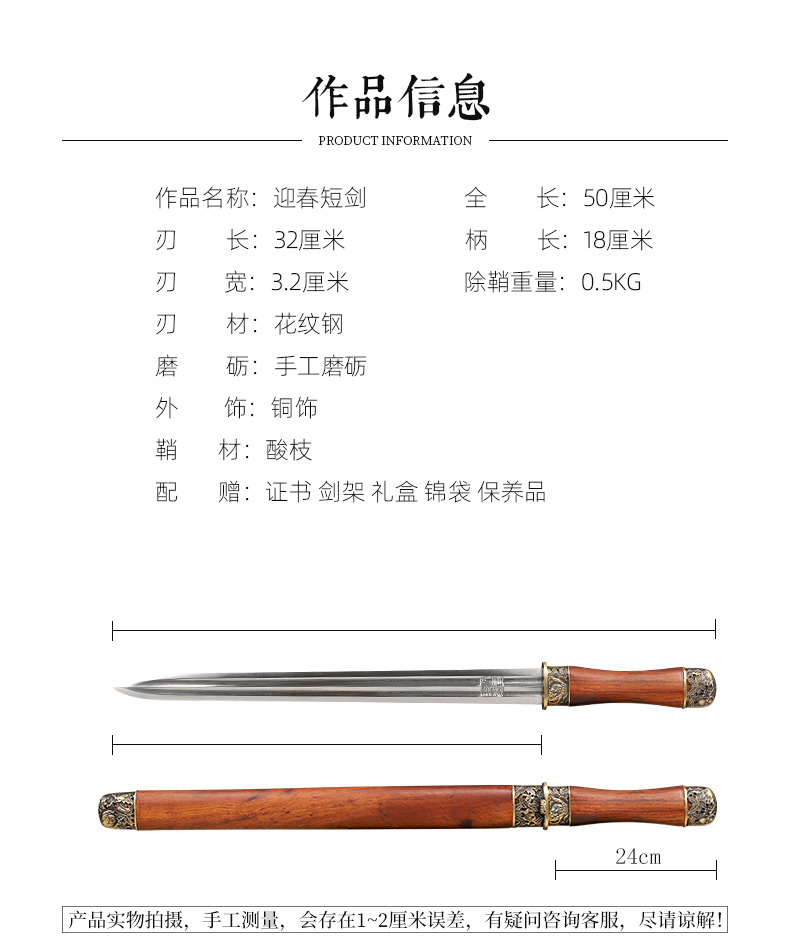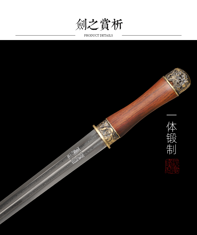 迎春短剑 花纹钢宝剑 硬剑一体剑龙泉沈广隆宝剑 未开刃