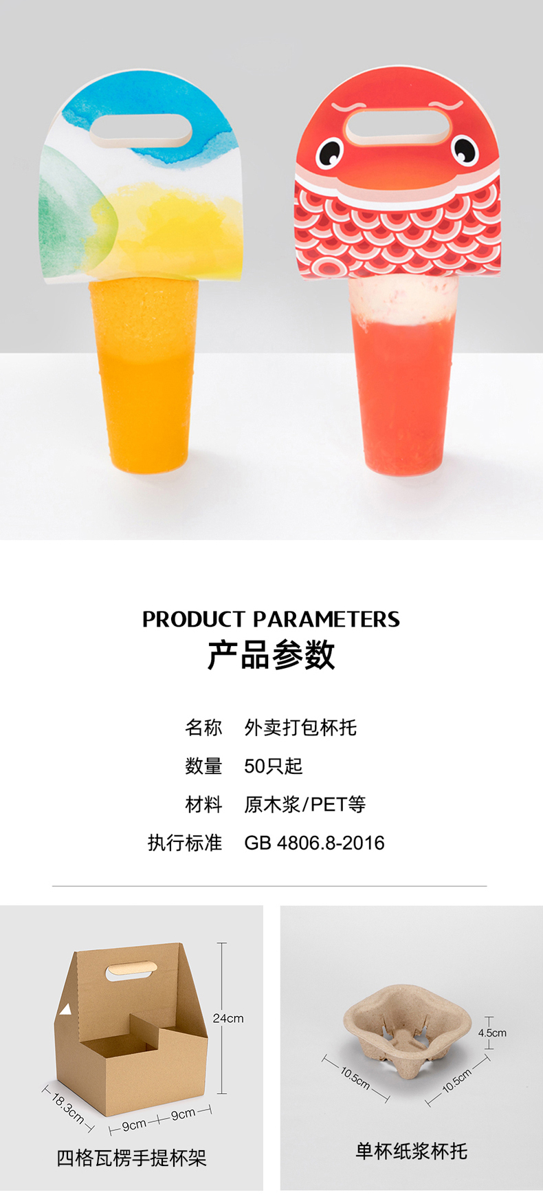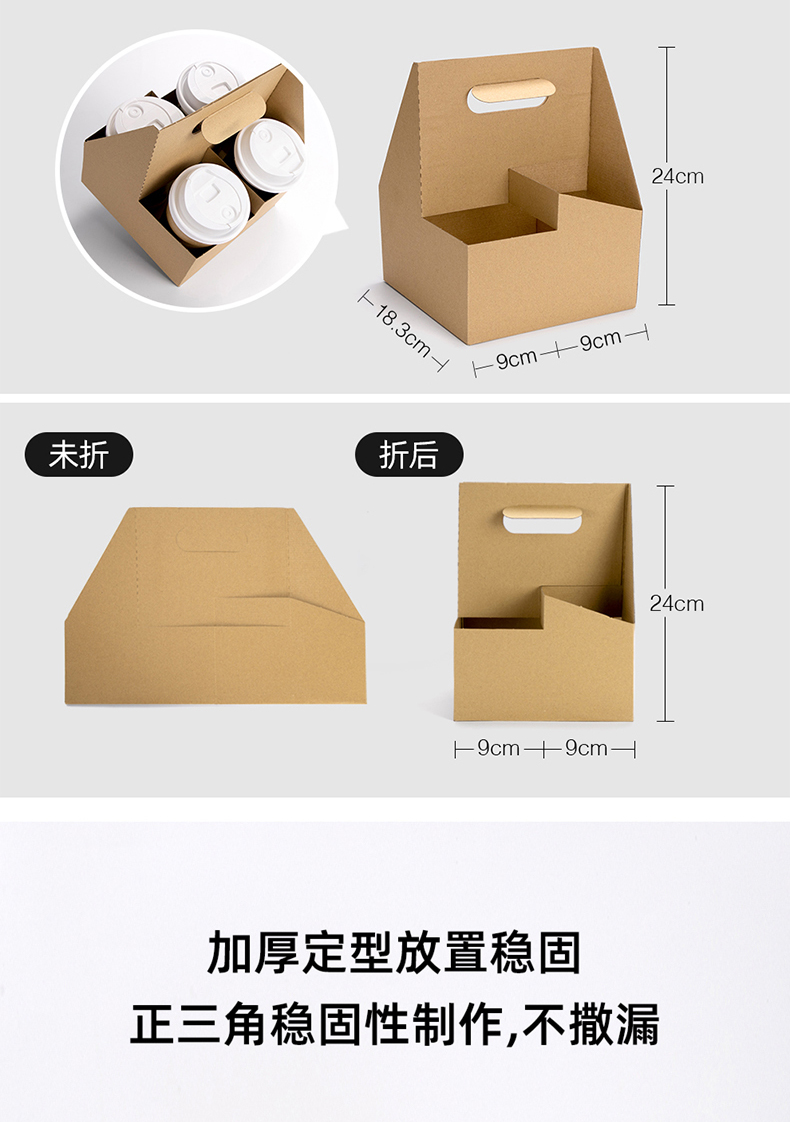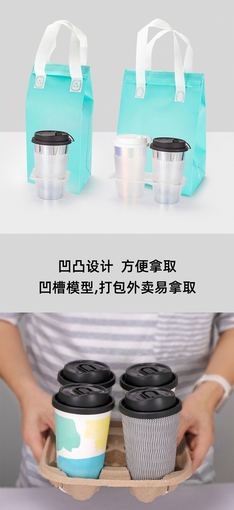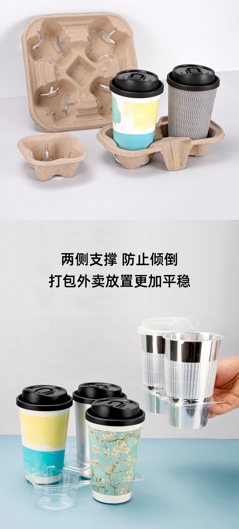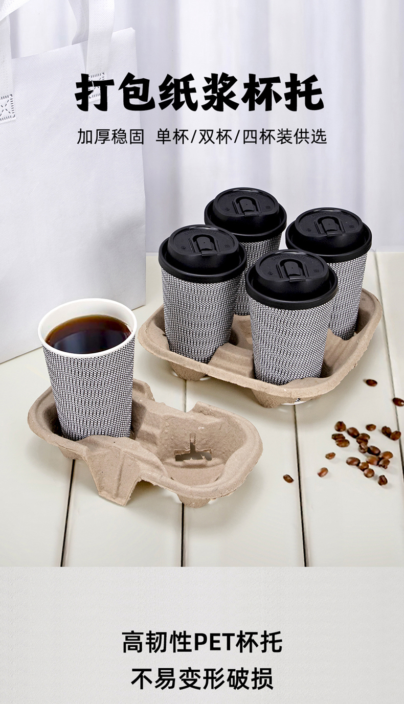 喇叭花一次性本色纸浆4杯托四杯杯架奶茶果咖啡奶茶外卖杯汁打包托盘