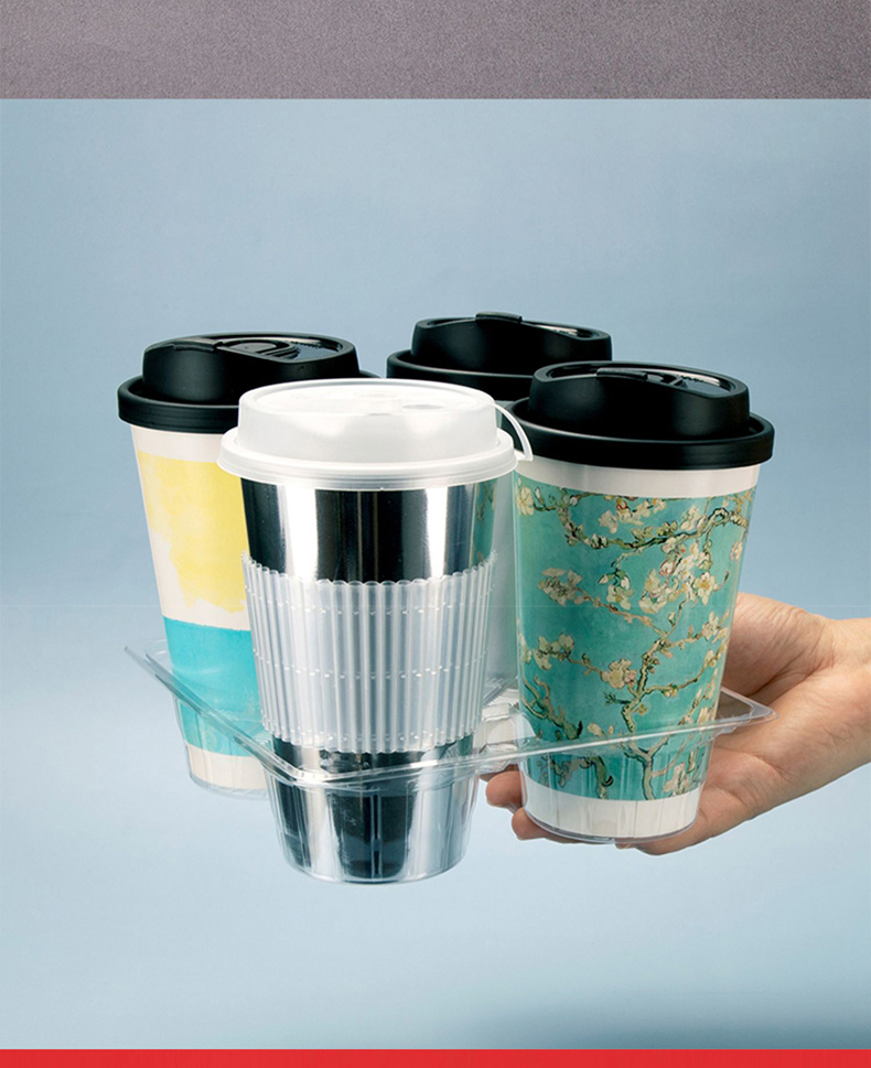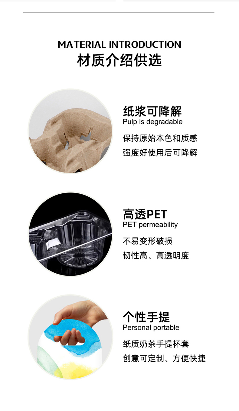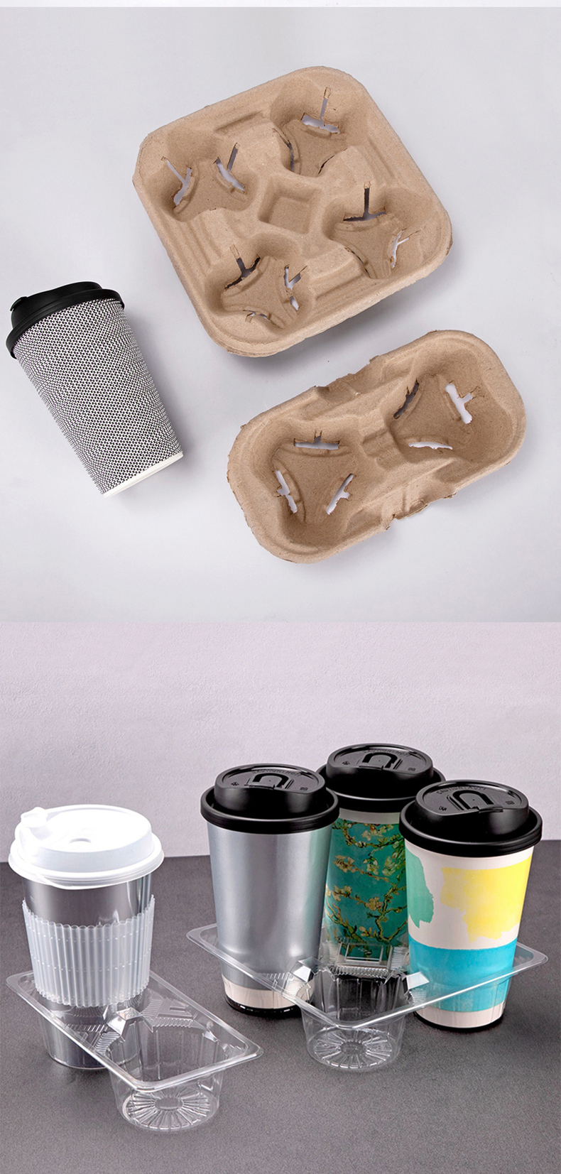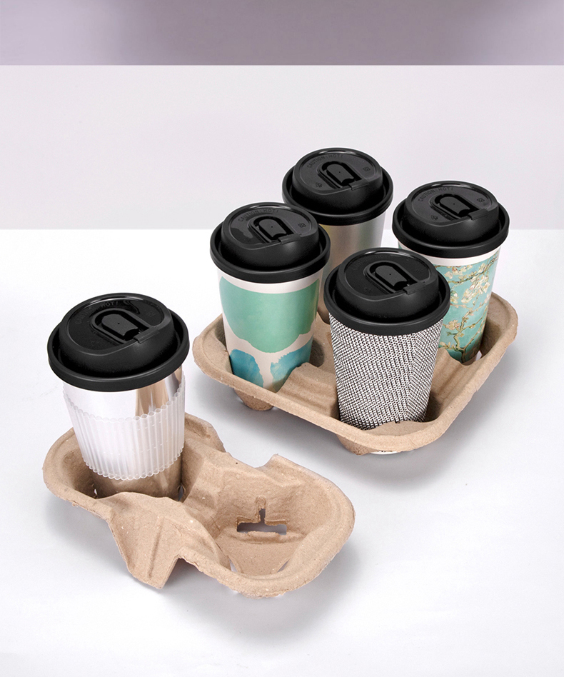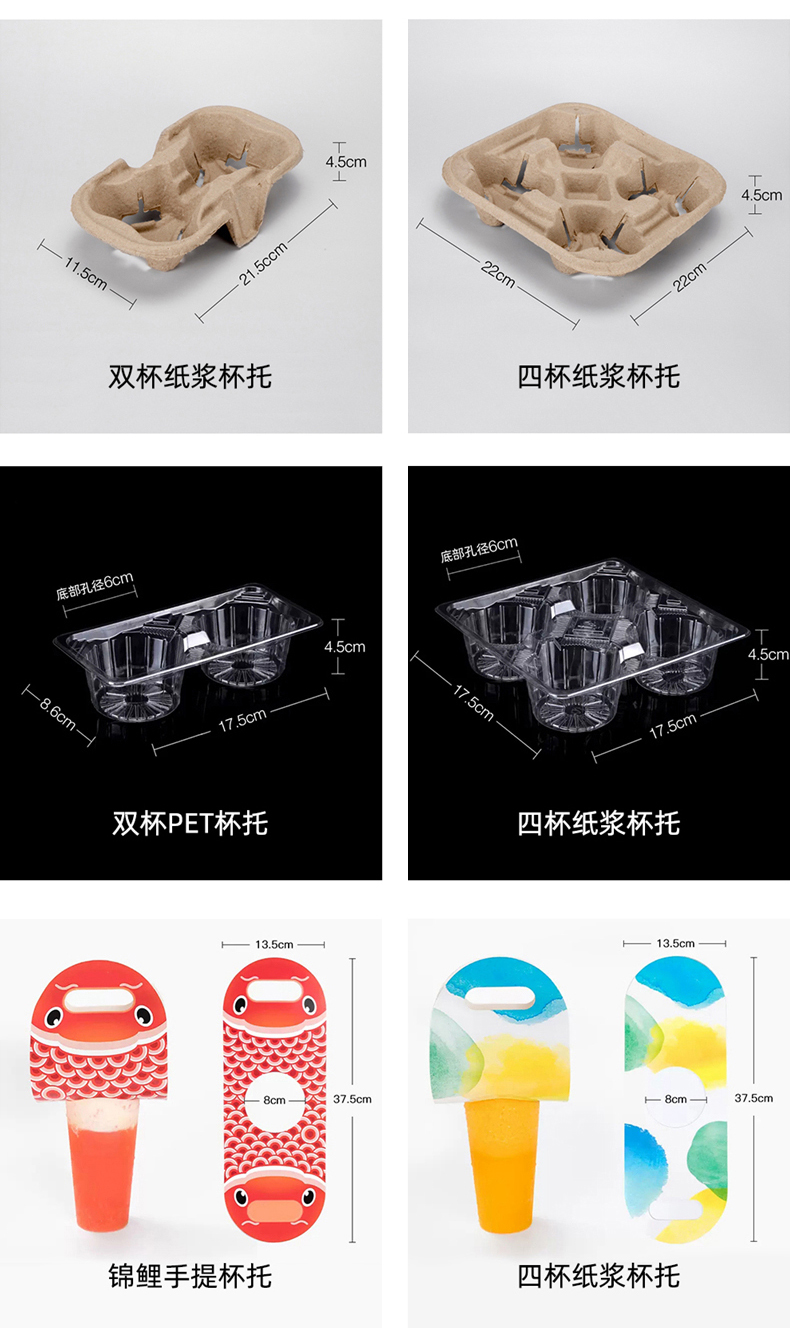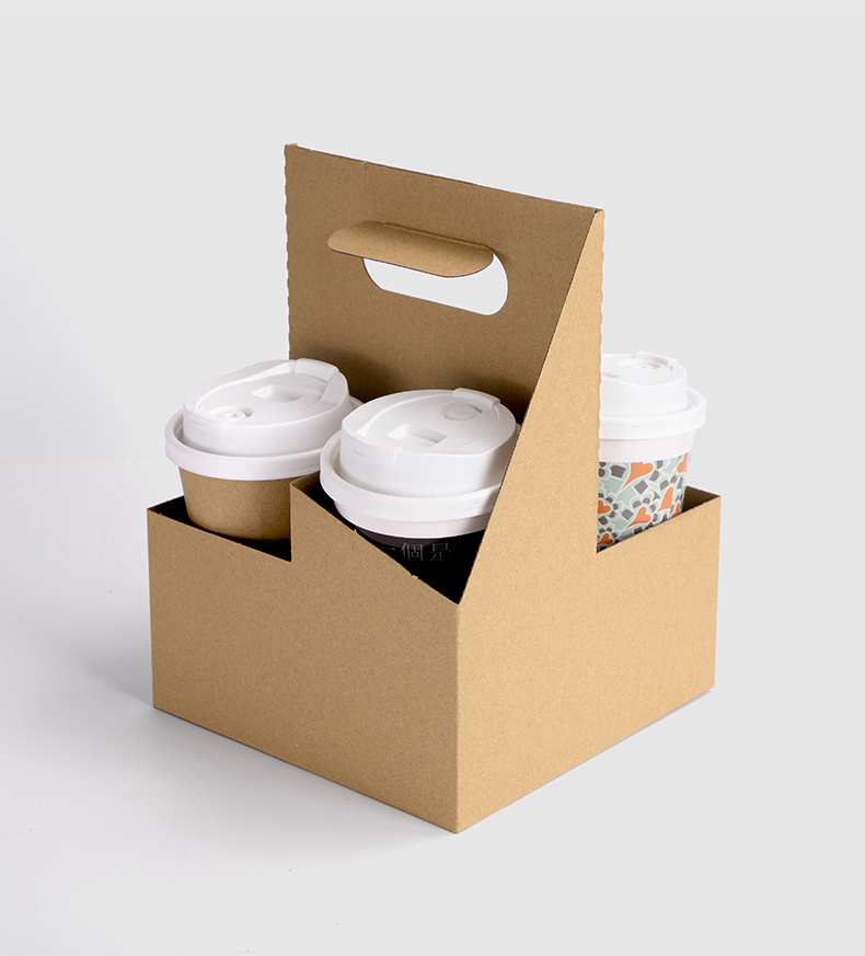 喇叭花一次性本色纸浆4杯托四杯杯架奶茶果咖啡奶茶外卖杯汁打包托盘