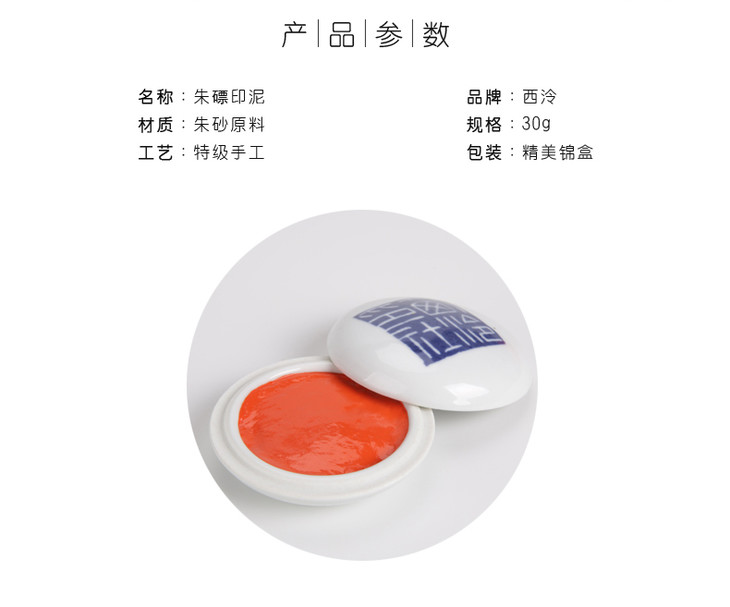 西泠印泥 传统仿古色朱磦印泥30g
